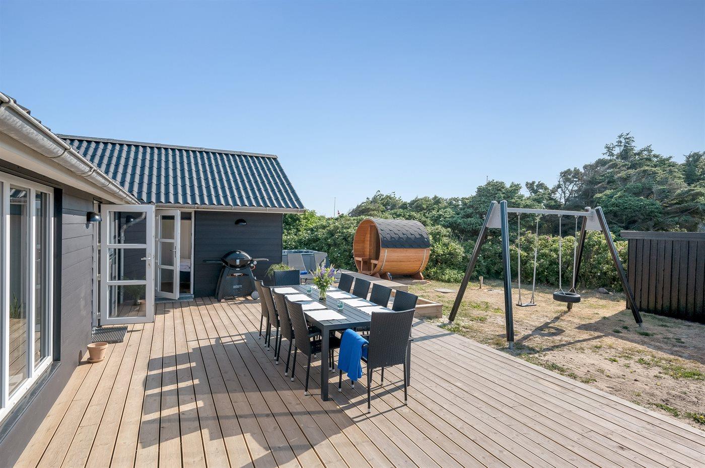 De vakantiewoning is gelegen op een 1200 m² groot natuural grond. Afstand tot de zee 200 m. Dichtstbijzijnde winkel 900 m. Bij de vakantiewoning hoort terras. Daarnaast is er een overdekt terras. Schommel. Zandbak. Buitensauna. Parkeerplaats bij het huis.