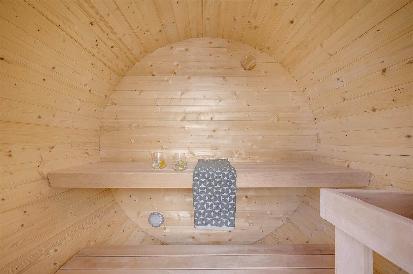 Het binnenbubbelbad (vulwater) biedt ontspanning aan 2 personen.Het buitenbubbelbad (standwater) biedt ontspanning aan 6 personen.