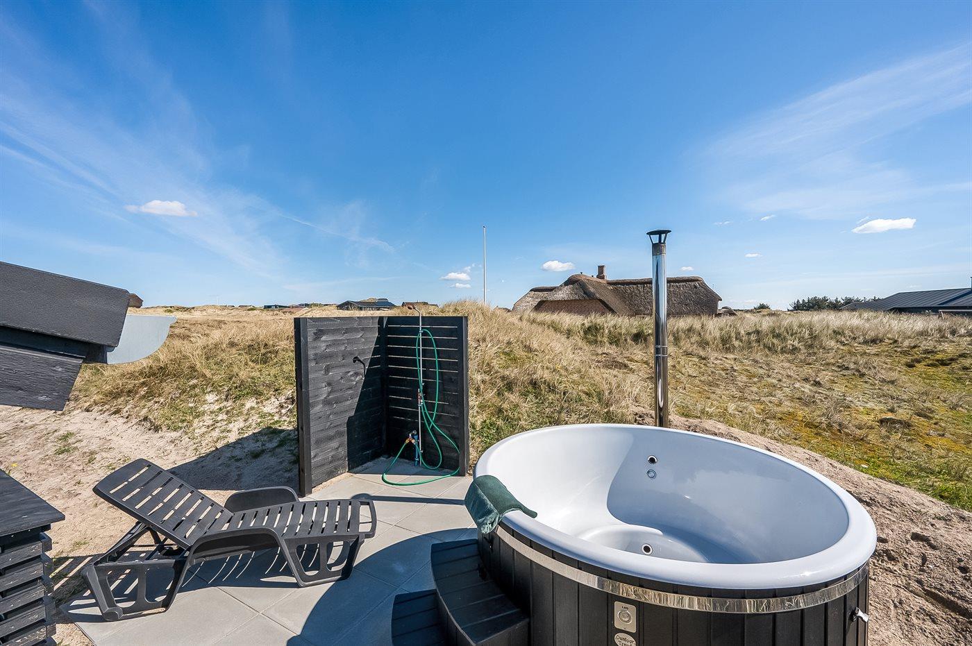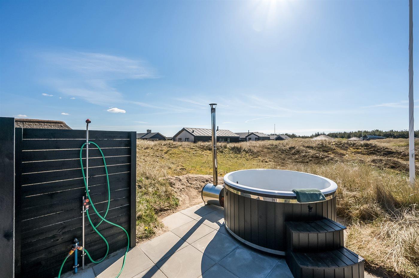 Het buiten hot tub biedt ontspanning aan 6 personen.