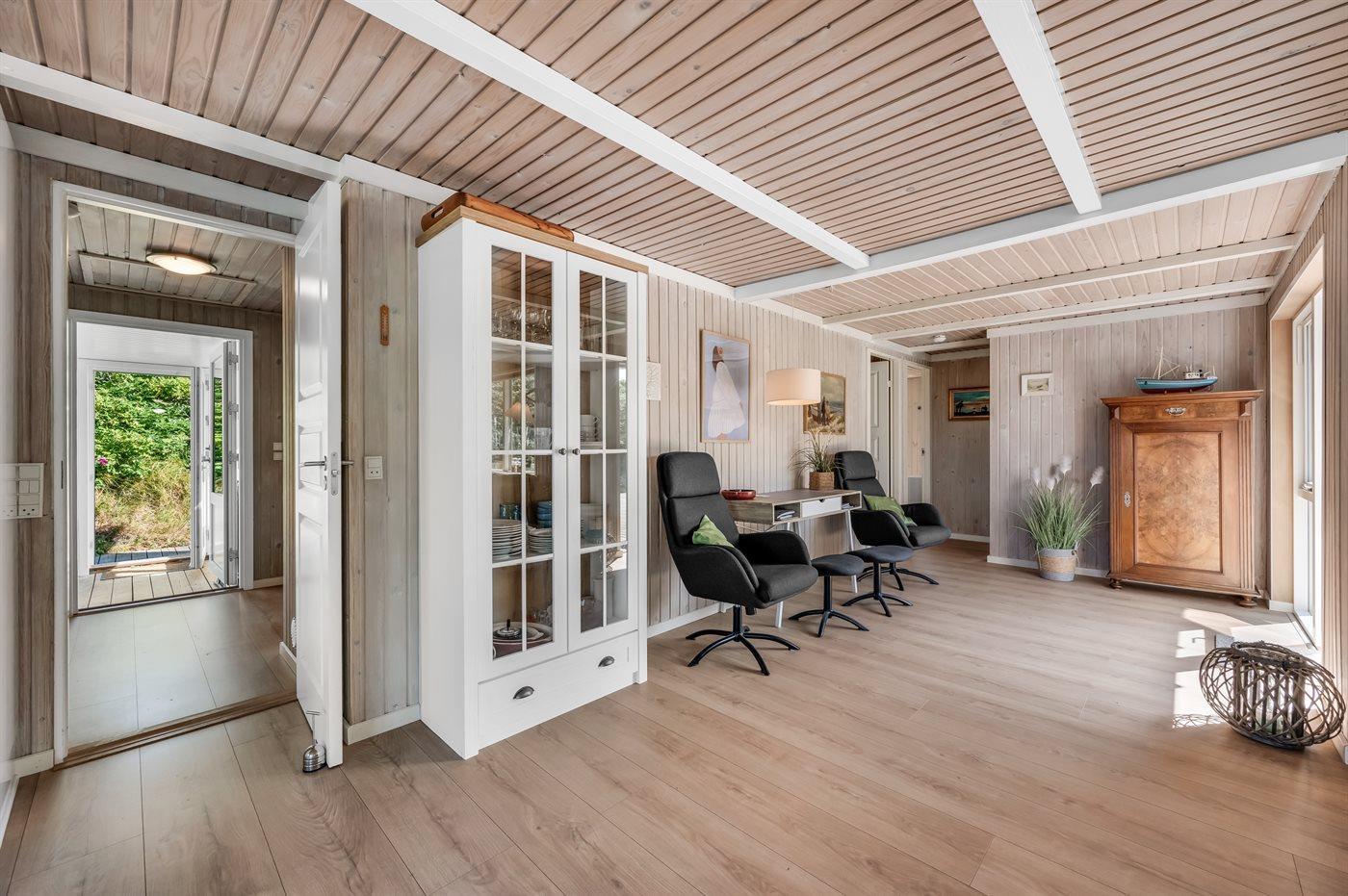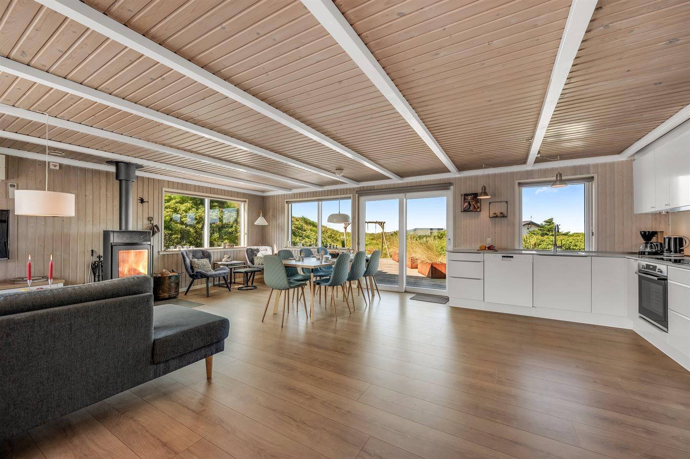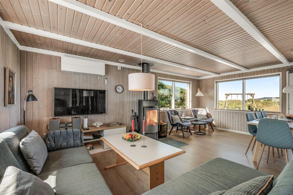 De vakantiewoning is gelegen op een 1400 m² groot natuural grond. Afstand tot de zee 450 m. Afstand tot de fjord 1500 m. Dichtstbijzijnde winkel 1300 m. Bij de vakantiewoning hoort 25 m² terras. Schommel. Zandbak. Parkeerplaats bij het huis.