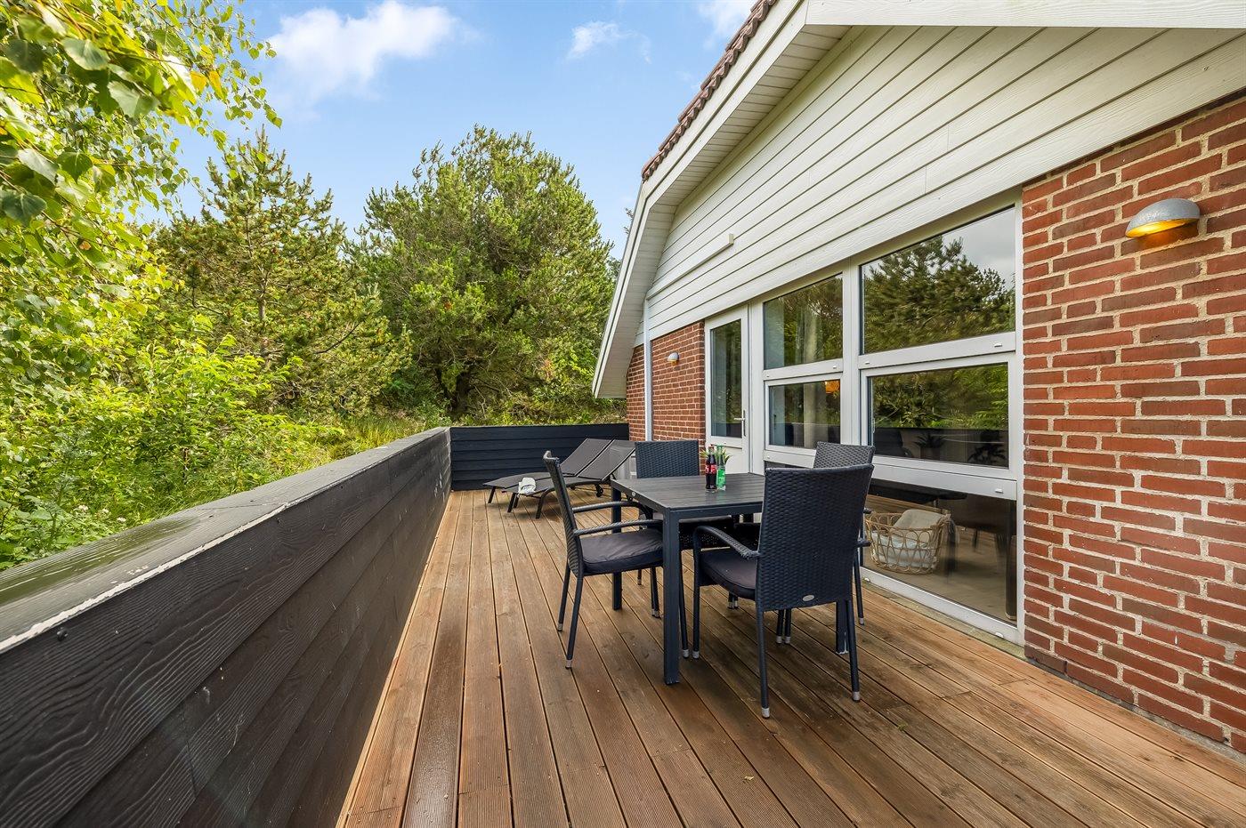 De vakantiewoning is gelegen op een 2260 m² groot natuural grond. Afstand tot de zee 1700 m. Dichtstbijzijnde winkel 2200 m. Bij de vakantiewoning hoort 50 m² terras. Daarnaast is er een 20 m² groot overdekt terras. Waarvan in totaal 30 m² beschut terras. Gereedschapsruimte. Schommel. Zandbak. Voetbaldoel. Parkeerplaats bij het huis.