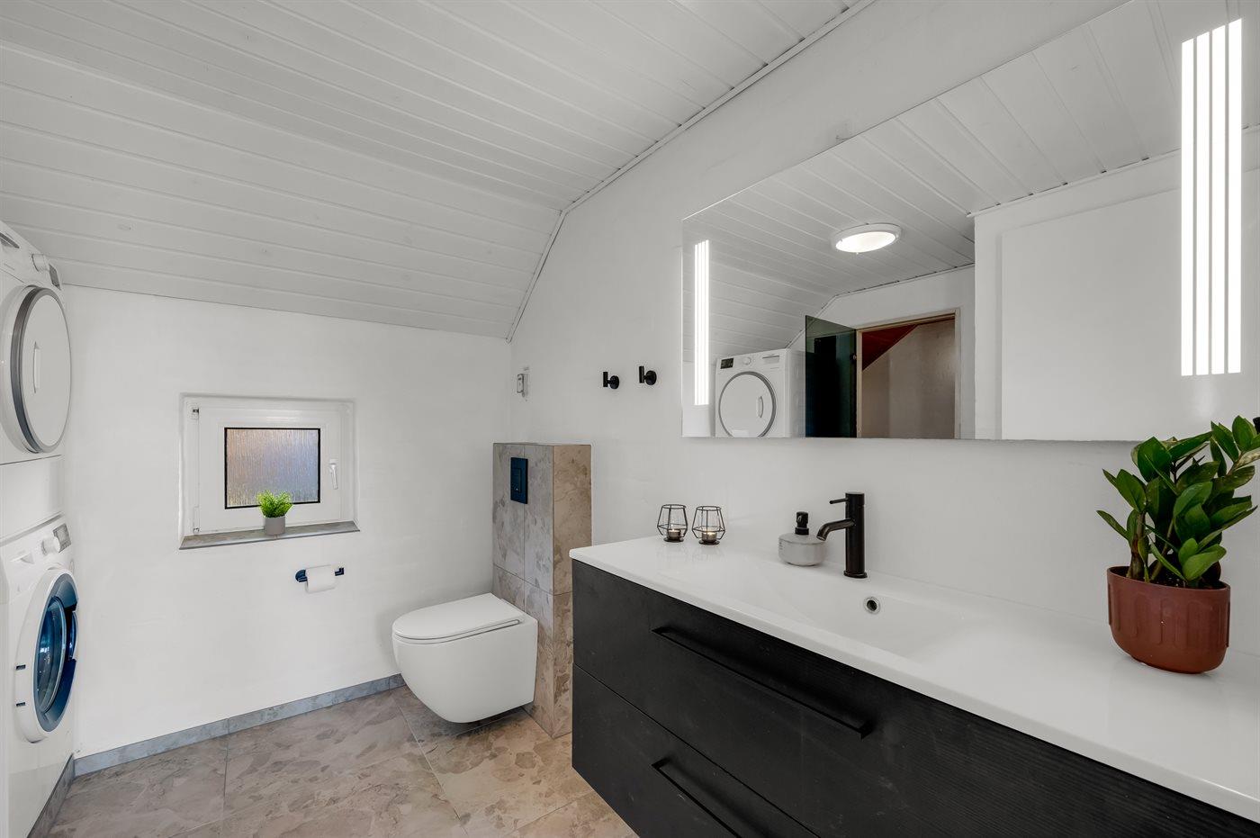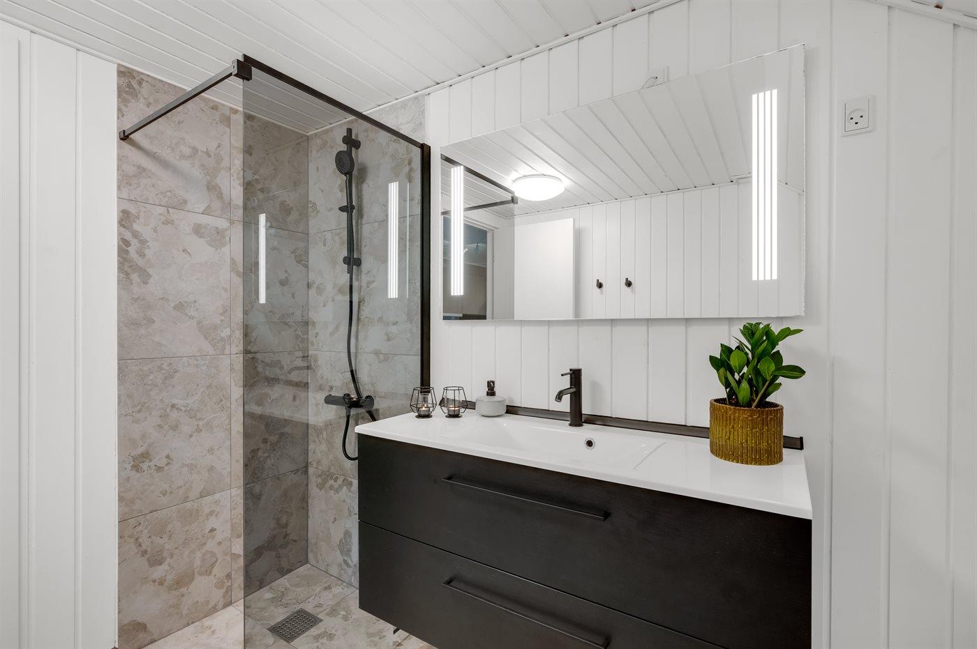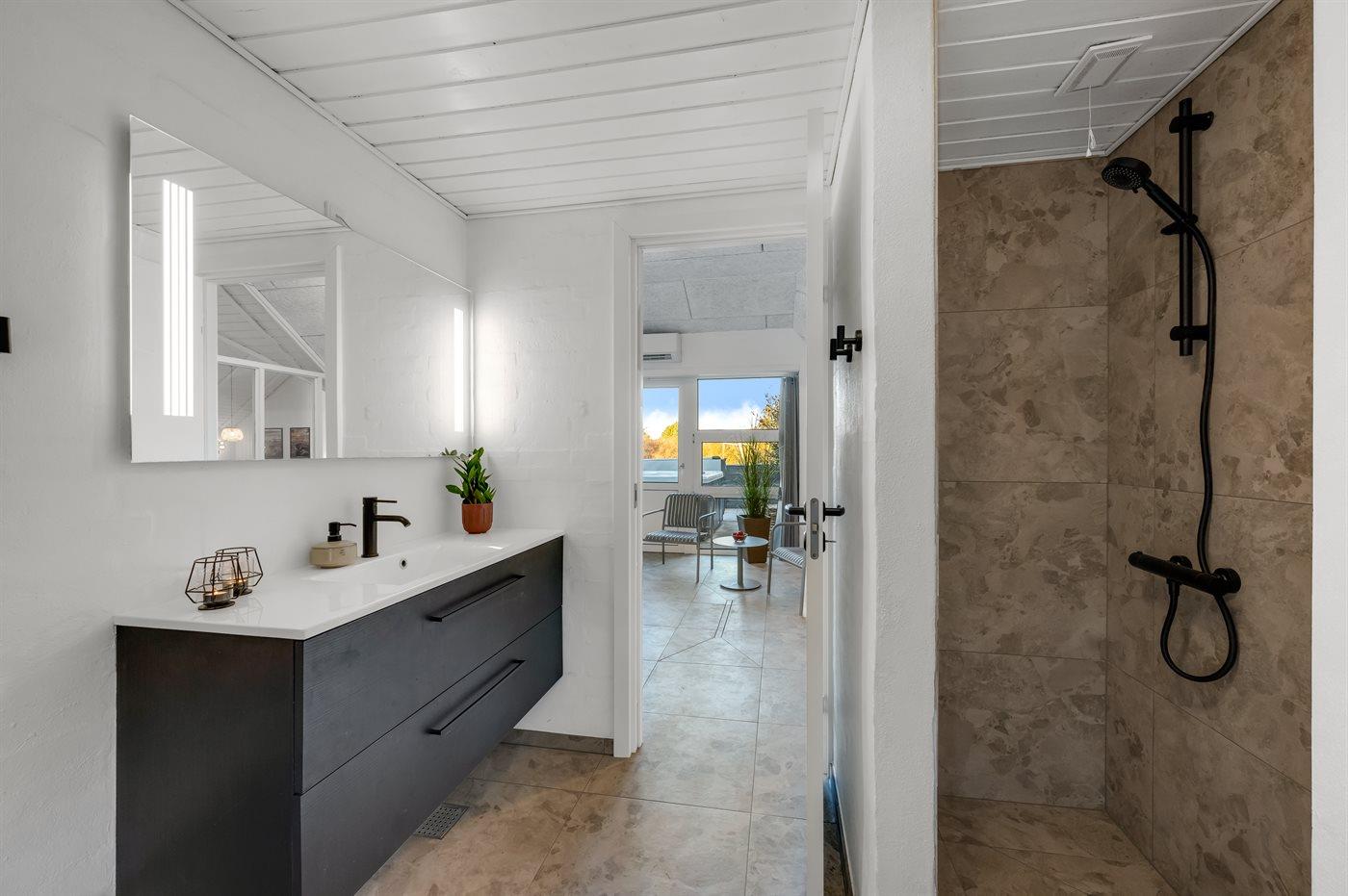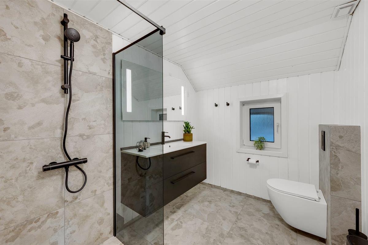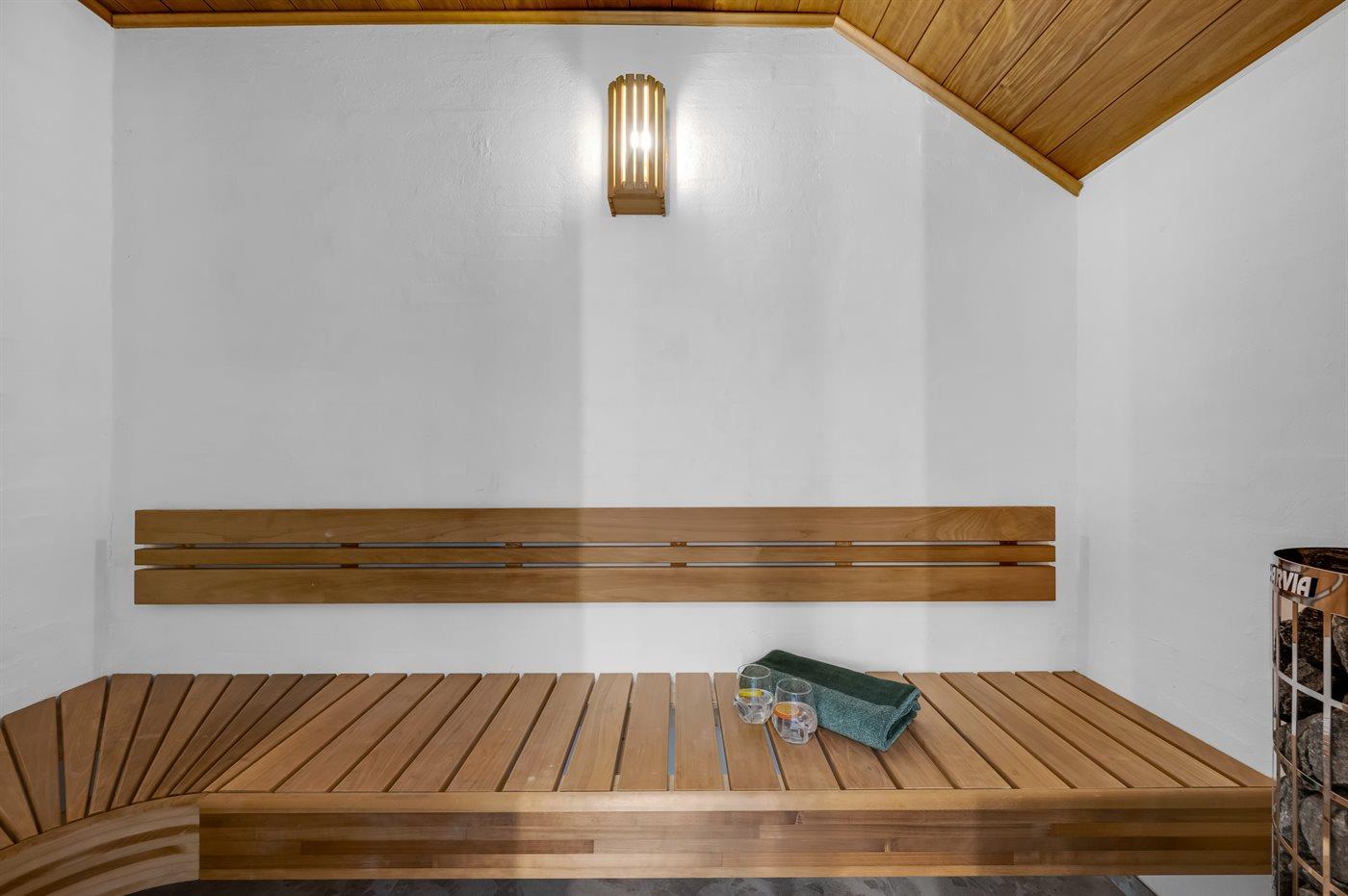 Er is 2 badkamers met douchehok en 2 toiletten. Er is vloerverwarming in 2 van de badkamers. De sauna biedt de gelegenheid tot ontspanning.