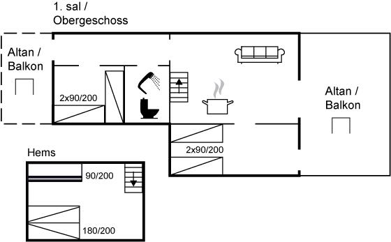Er zijn in totaal 2 slaapkamers. De slaapplaatsen zijn als volgt verdeeld: 2 slaapplaatsen in tweepersoonsbed. 4 slaapplaatsen in eenpersoonsbedden. 2 slaapplaatsen in stapelbed. 4 van deze slaapplaatsen bevinden zich in de open slaapzolder.