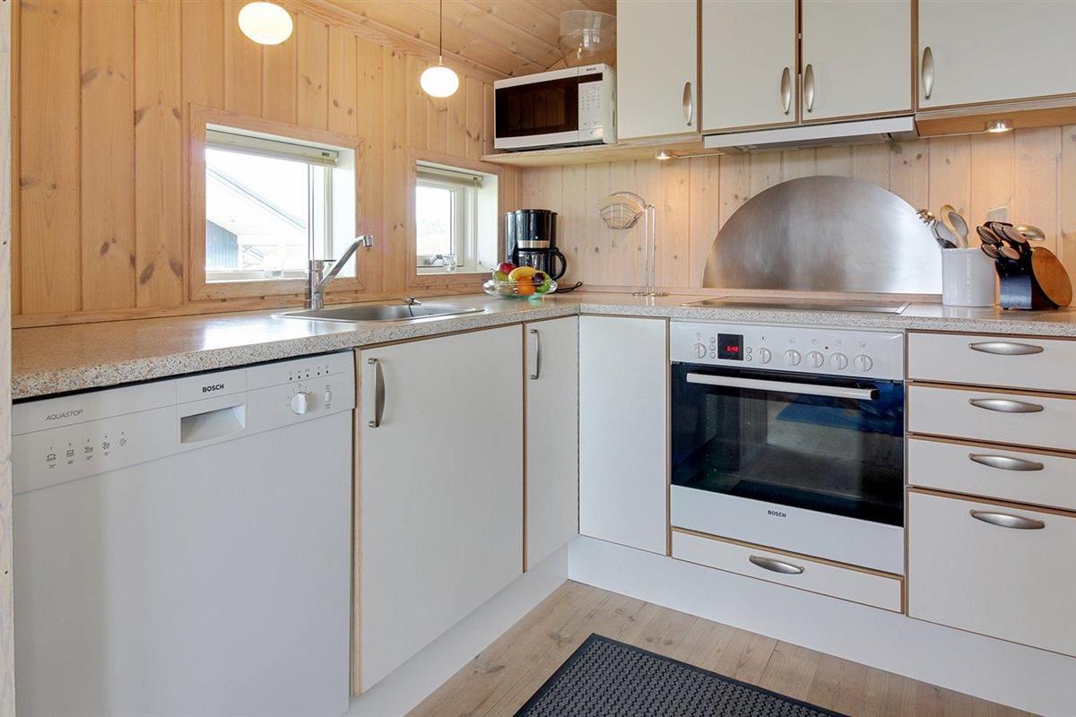 De keuken is uitgerust met koelkast Er zijn 4 keramische kookplaten, heteluchtoven, magnetron en vaatwasser.