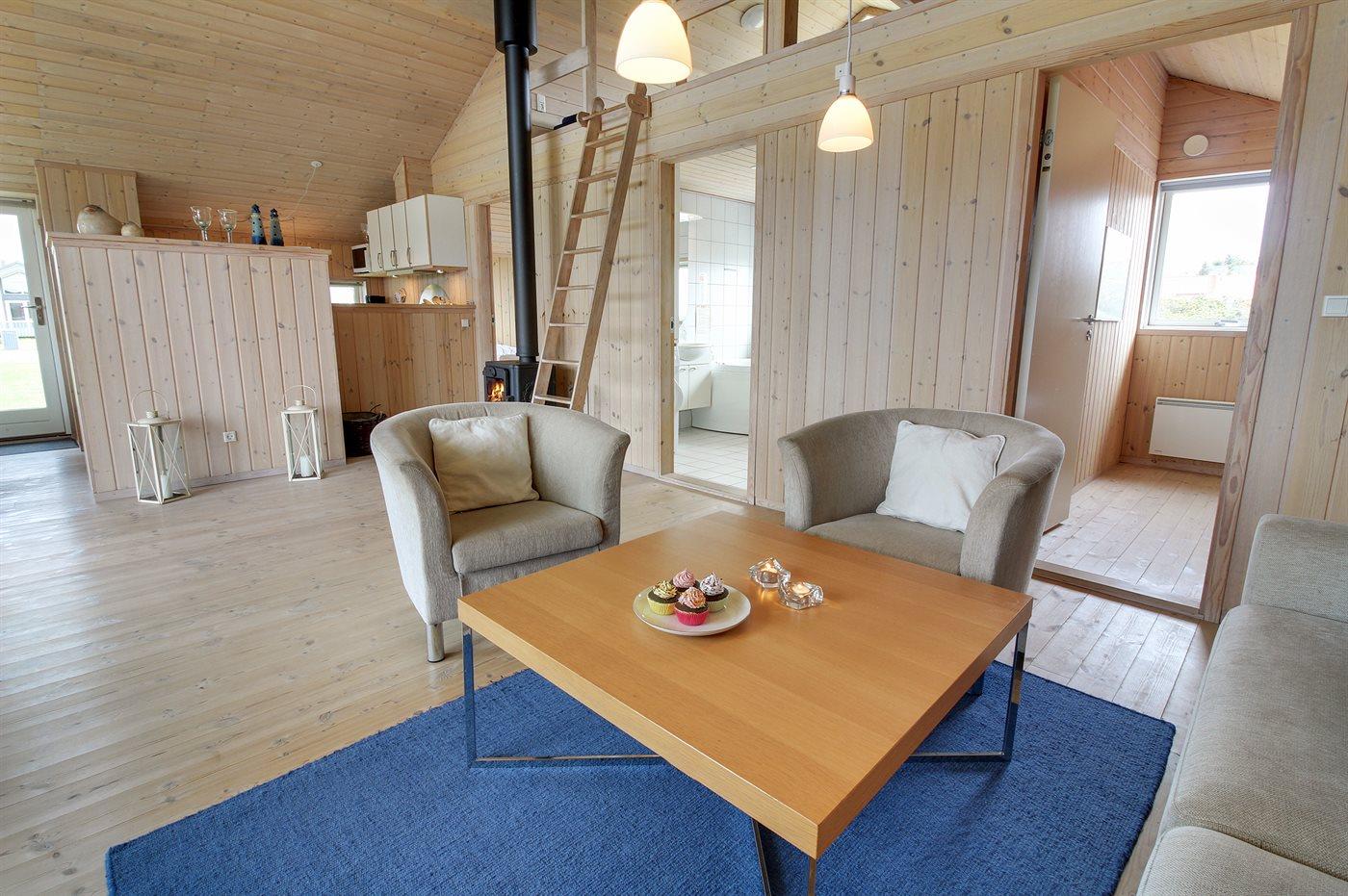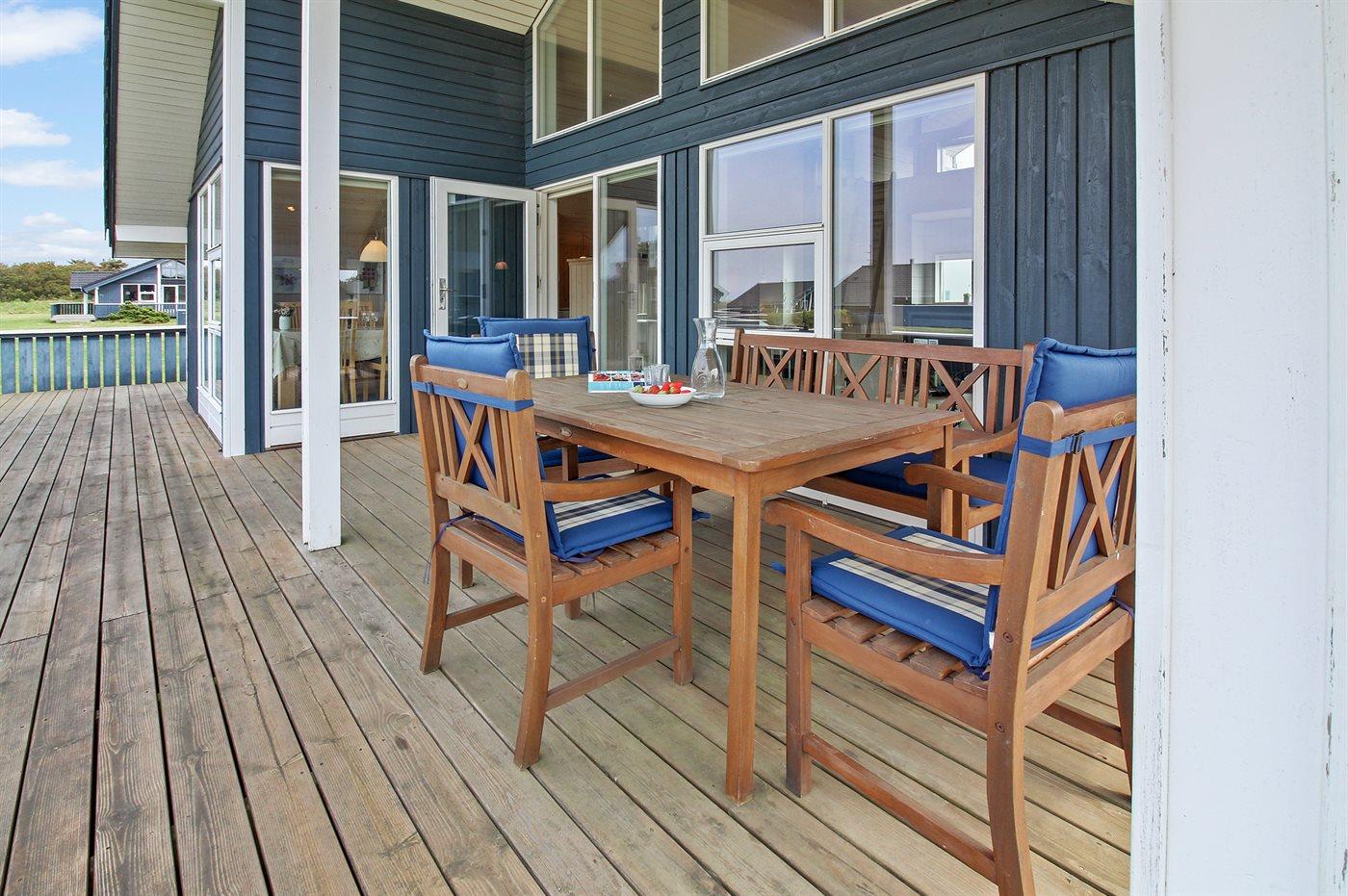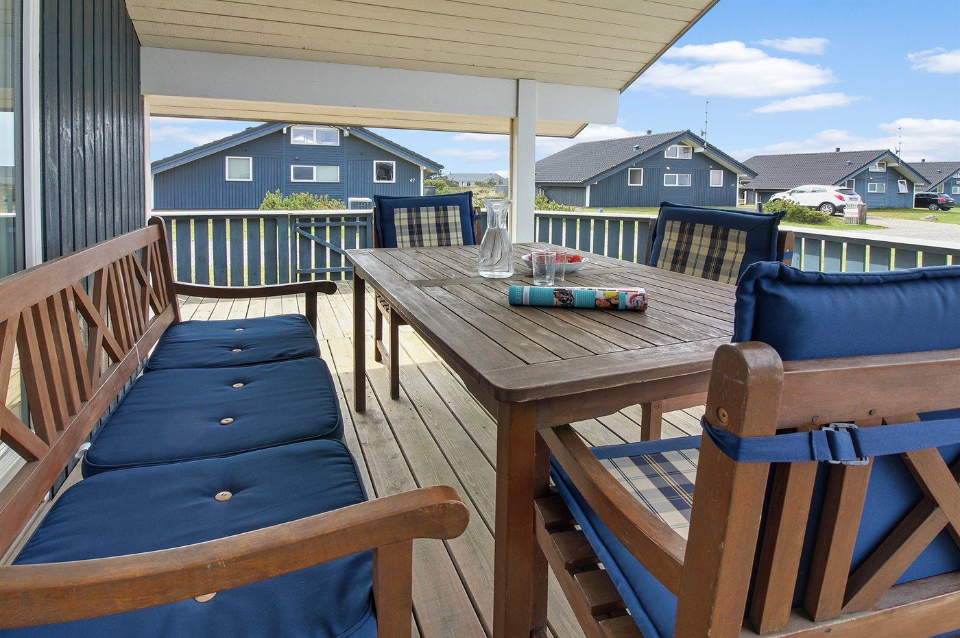 De vakantiewoning is gelegen op een 740 m² groot natuural grond. Afstand tot de zee 1200 m. Afstand tot de fjord 1500 m. Dichtstbijzijnde winkel 2000 m. Bij de vakantiewoning hoort 50 m² terras. Daarnaast is er een 15 m² groot overdekt terras. Gereedschapsruimte. Barbecue. Parkeerplaats bij het huis.