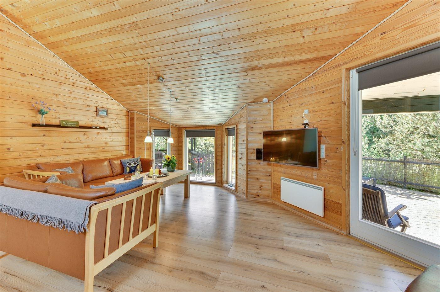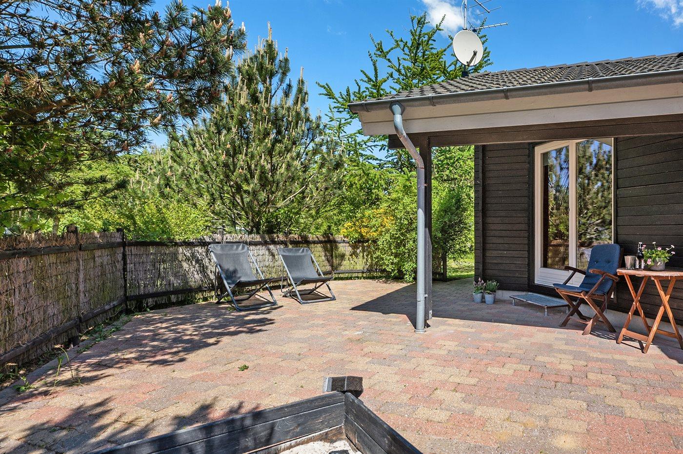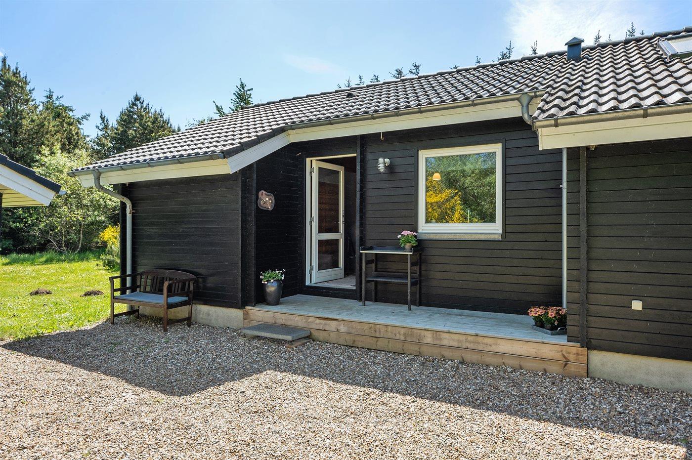 De vakantiewoning is gelegen op een 2524 m² groot natuural grond. Afstand tot de zee 1900 m. Afstand tot de fjord 700 m. Dichtstbijzijnde winkel 2000 m. Er is een golfbaan op een afstand van 800 m. Bij de vakantiewoning hoort 75 m² terras. Daarnaast is er een 18 m² groot overdekt terras. Waarvan in totaal 75 m² beschut terras. Zandbak. Parkeerplaats bij het huis.