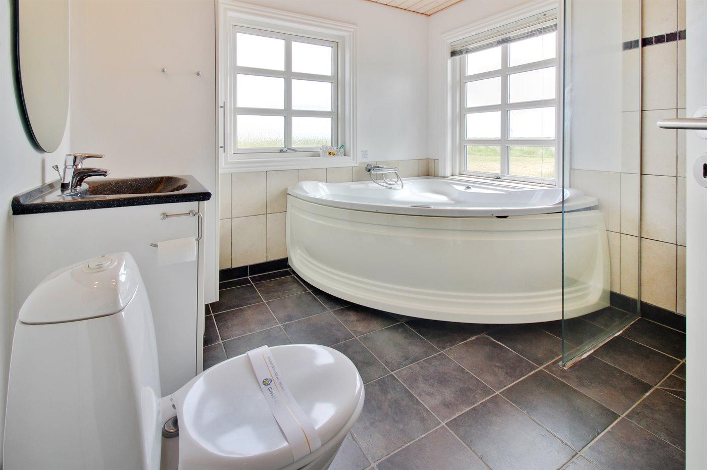 Er is 2 badkamers met douchehok en 2 toiletten. Er is vloerverwarming in 1 badkamer. De sauna biedt de gelegenheid tot ontspanning.