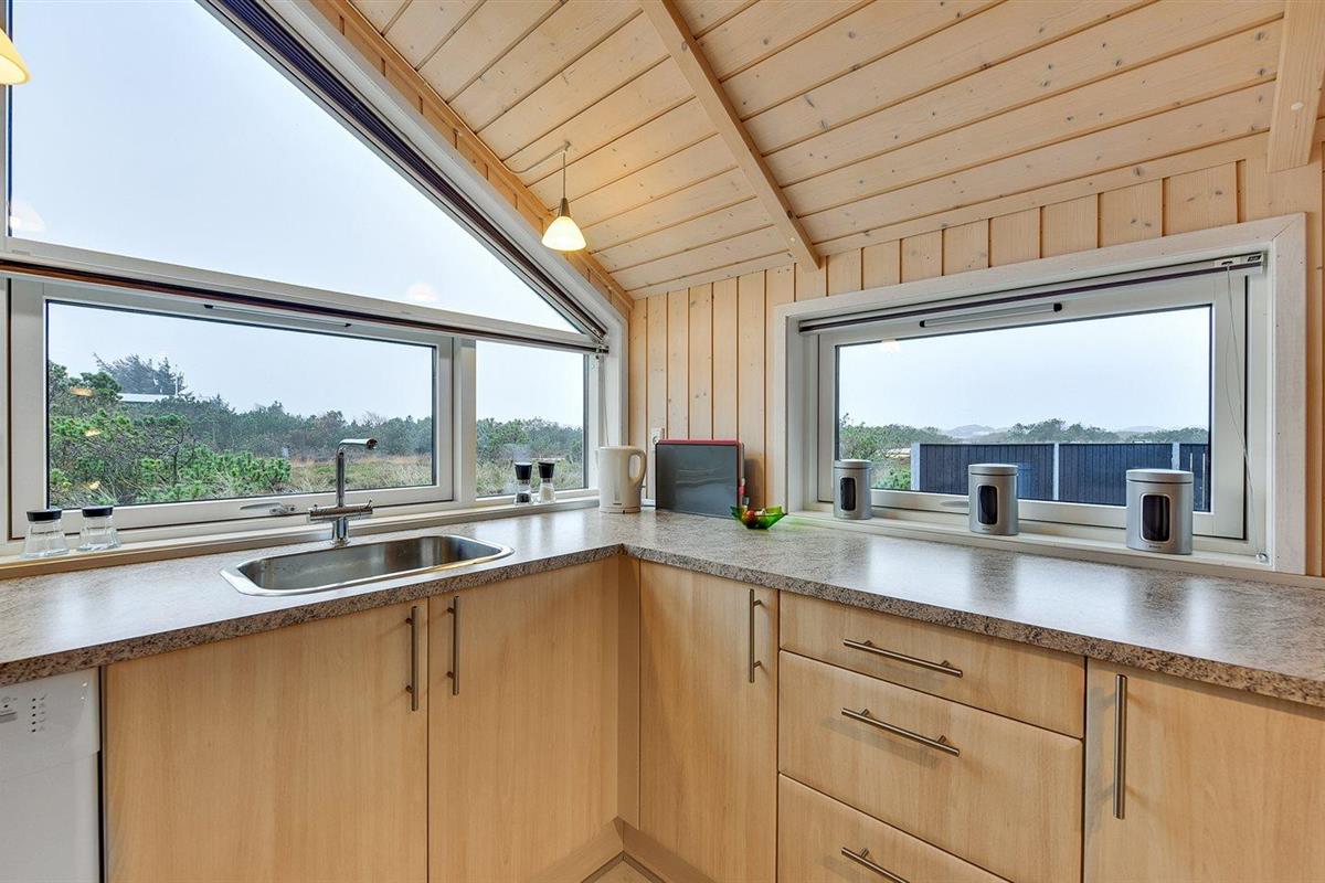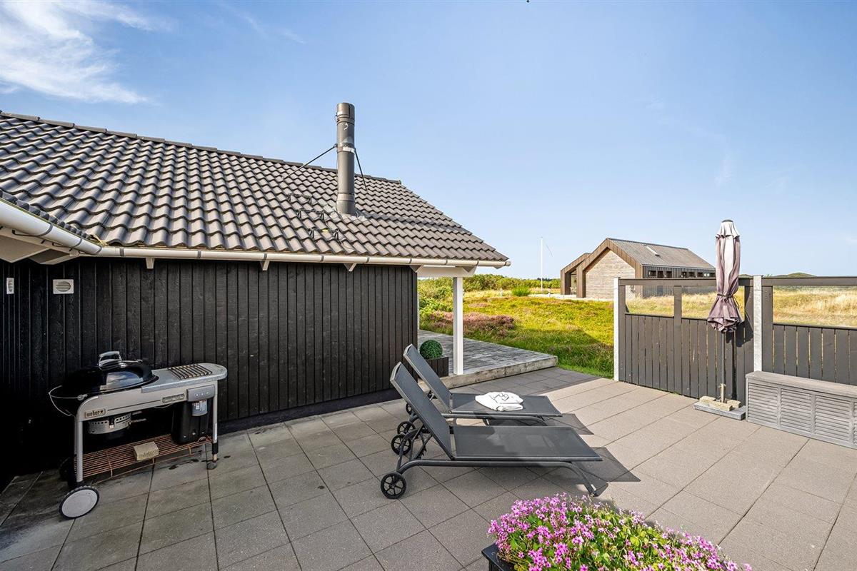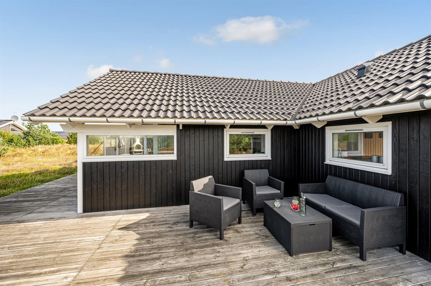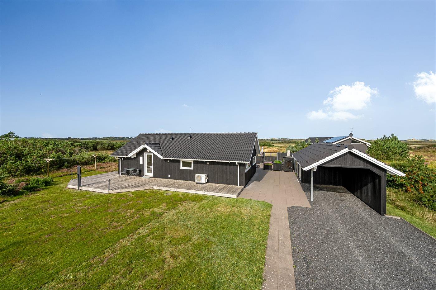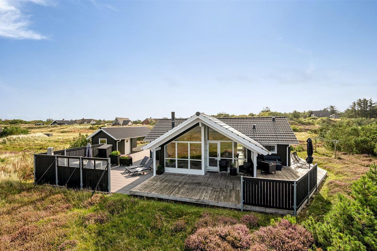Modern vakantiehuis in Søndervig met bubbelbad, vloerverwarming en ruime tuin op 1200m van zee en fjord.