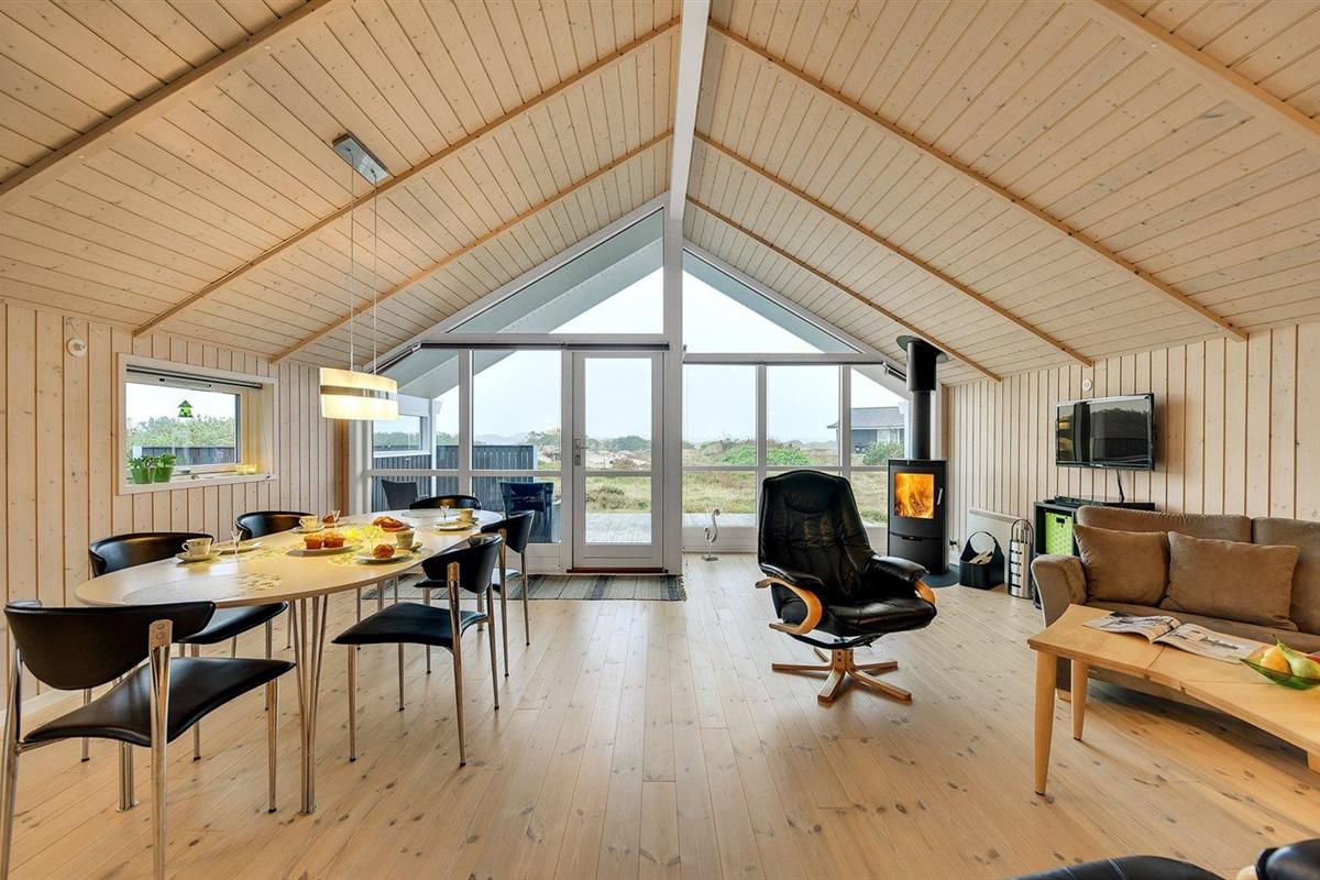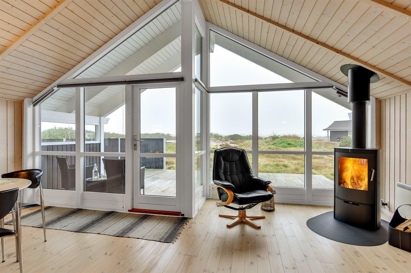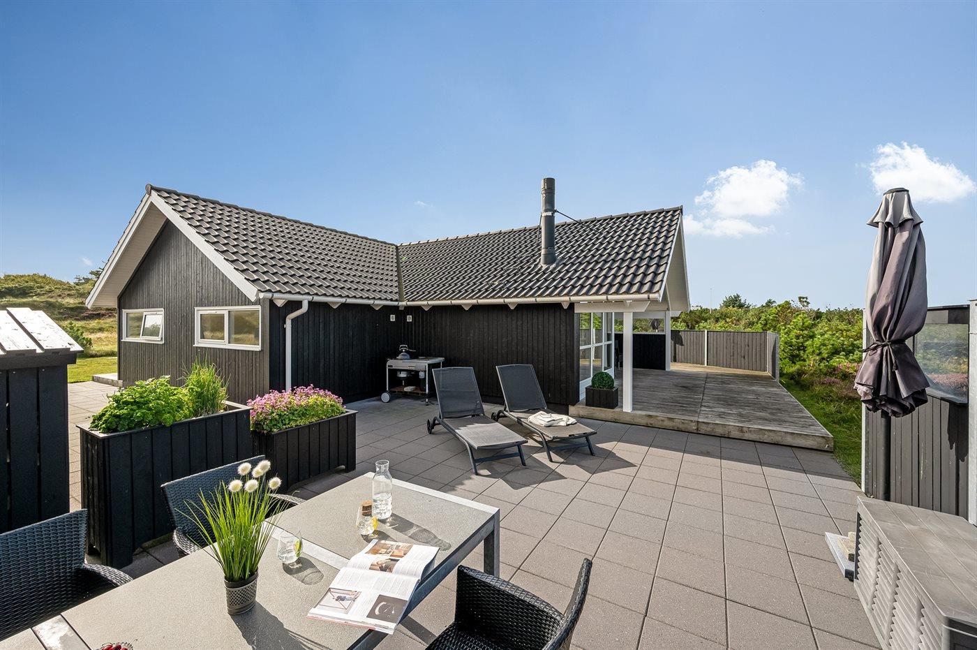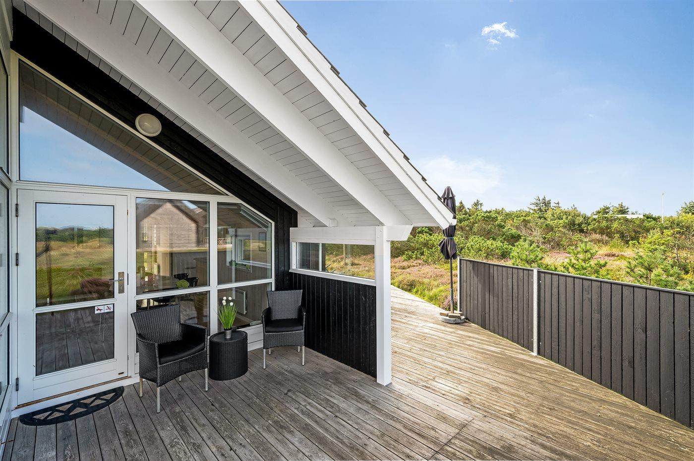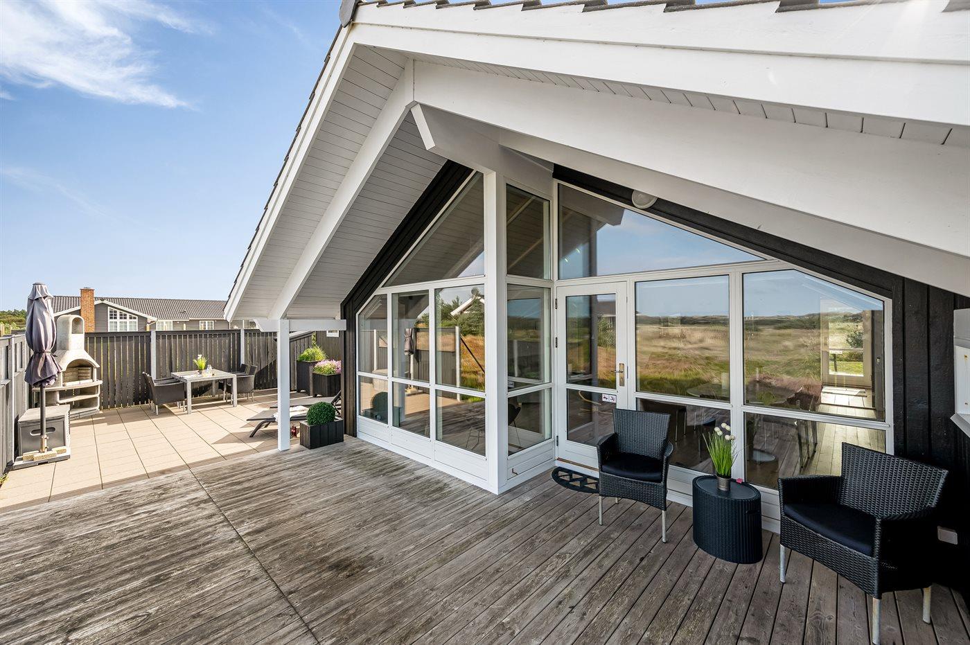 De vakantiewoning is gelegen op een 2000 m² groot natuural grond. Afstand tot de zee 1200 m. Afstand tot de fjord 1200 m. Dichtstbijzijnde winkel 1200 m. Er is een golfbaan op een afstand van 1500 m. Bij de vakantiewoning hoort 90 m² terras. Carport ter beschikking. Parkeerplaats bij het huis.