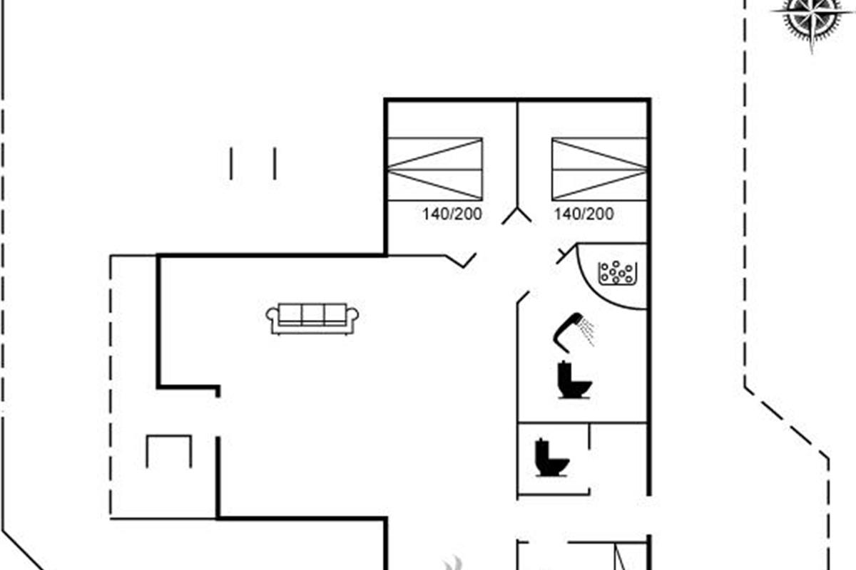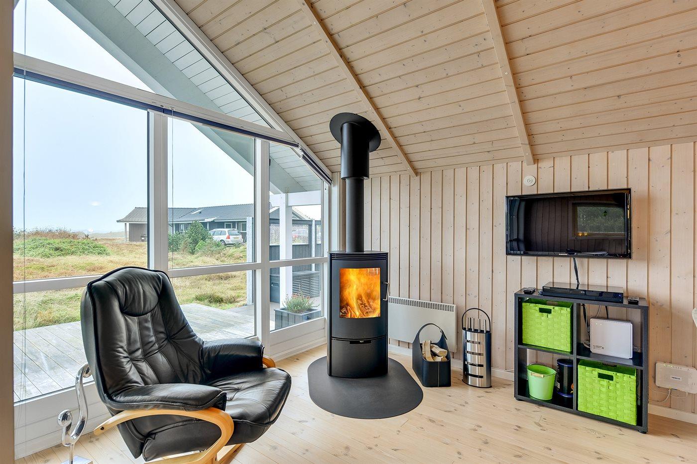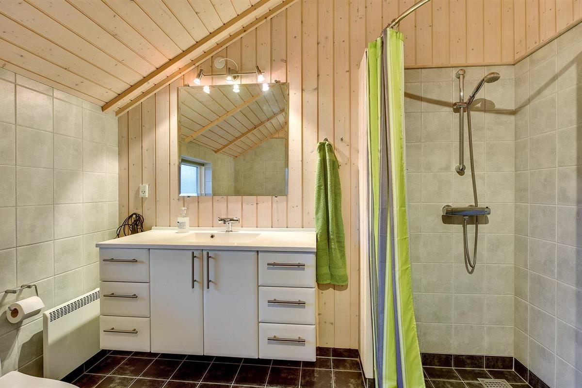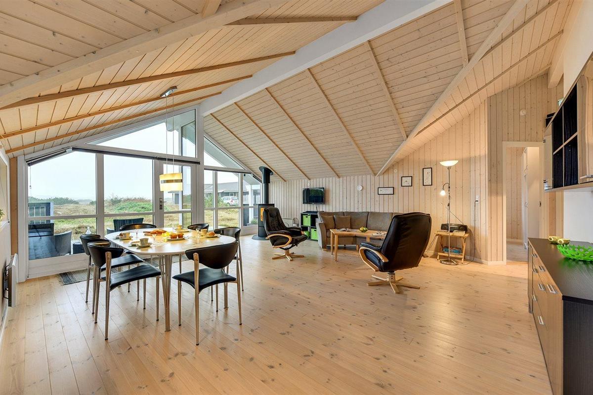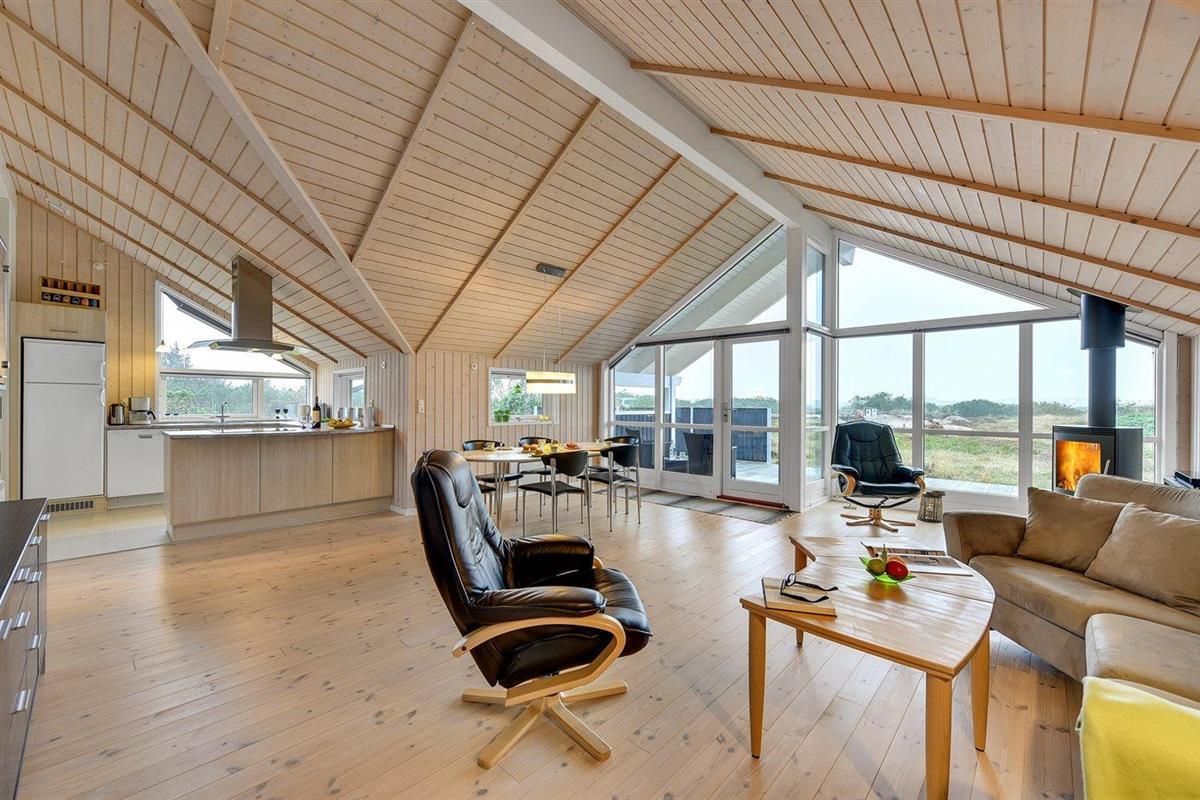 De vakantiewoning is gelegen op een 2000 m² groot natuural grond. Afstand tot de zee 1200 m. Afstand tot de fjord 1200 m. Dichtstbijzijnde winkel 1200 m. Er is een golfbaan op een afstand van 1500 m. Bij de vakantiewoning hoort 90 m² terras. Carport ter beschikking. Parkeerplaats bij het huis.