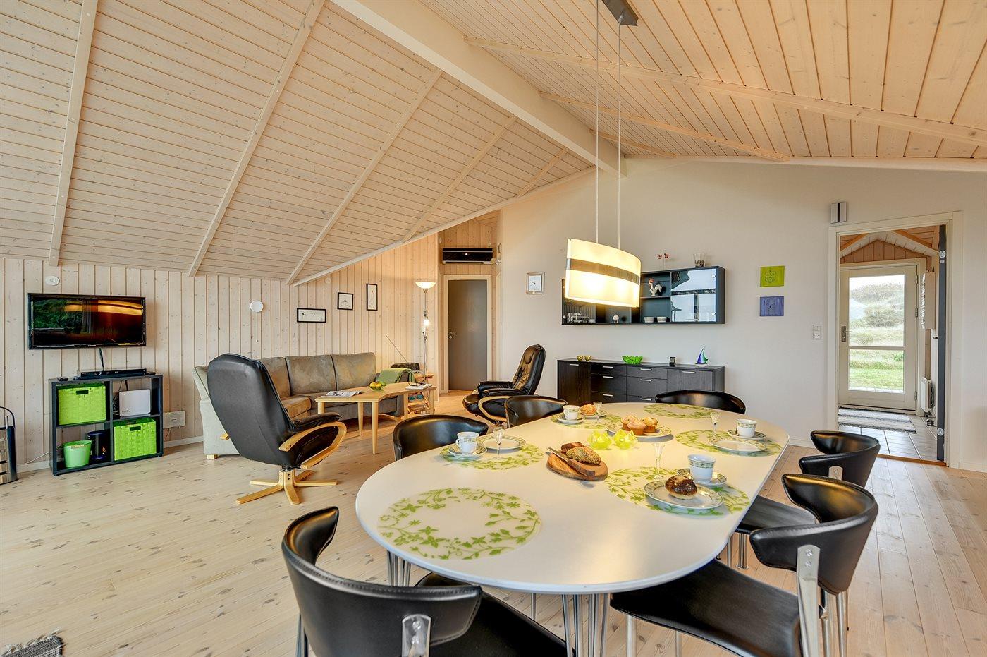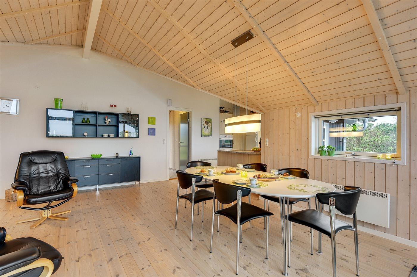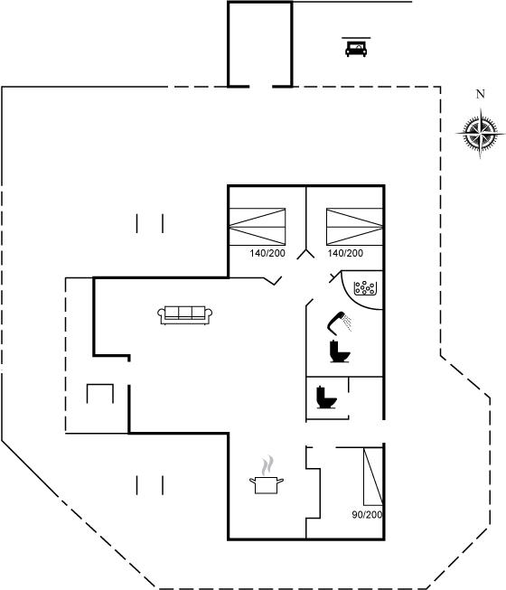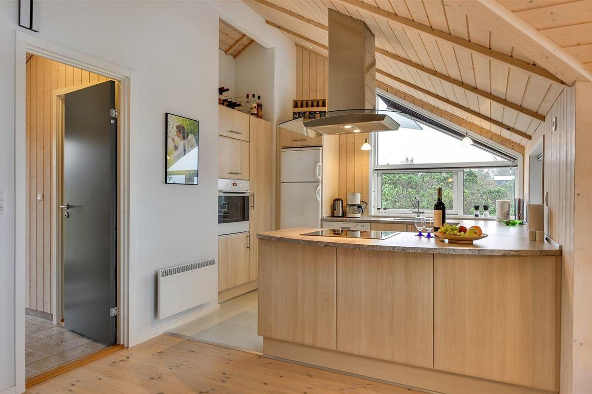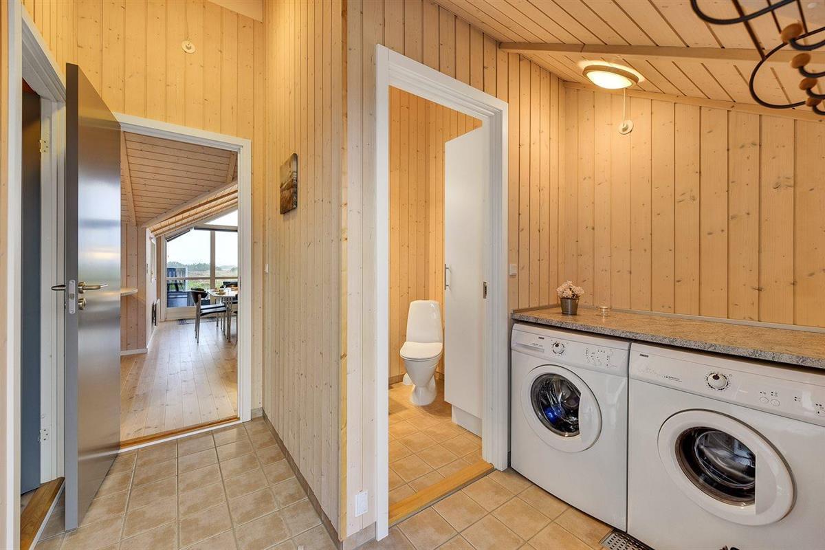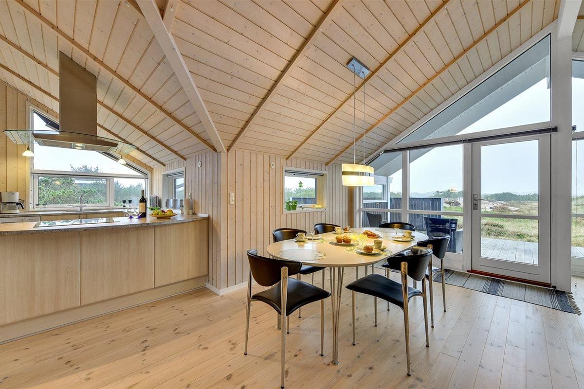 De vakantiewoning is gelegen op een 2000 m² groot natuural grond. Afstand tot de zee 1200 m. Afstand tot de fjord 1200 m. Dichtstbijzijnde winkel 1200 m. Er is een golfbaan op een afstand van 1500 m. Bij de vakantiewoning hoort 90 m² terras. Carport ter beschikking. Parkeerplaats bij het huis.