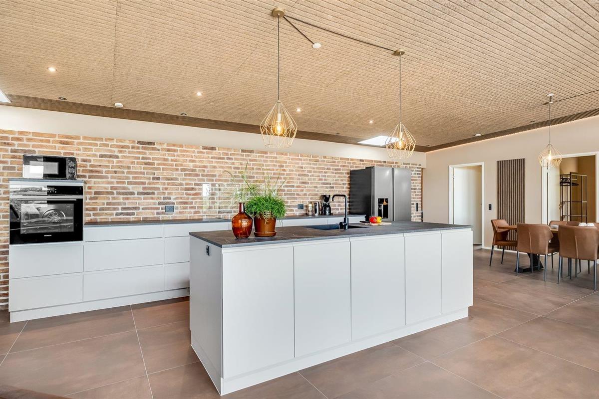 De keuken is uitgerust met amerikaanse koelkast Er is 4 inductiekookplaten, heteluchtoven, magnetron en vaatwasser.