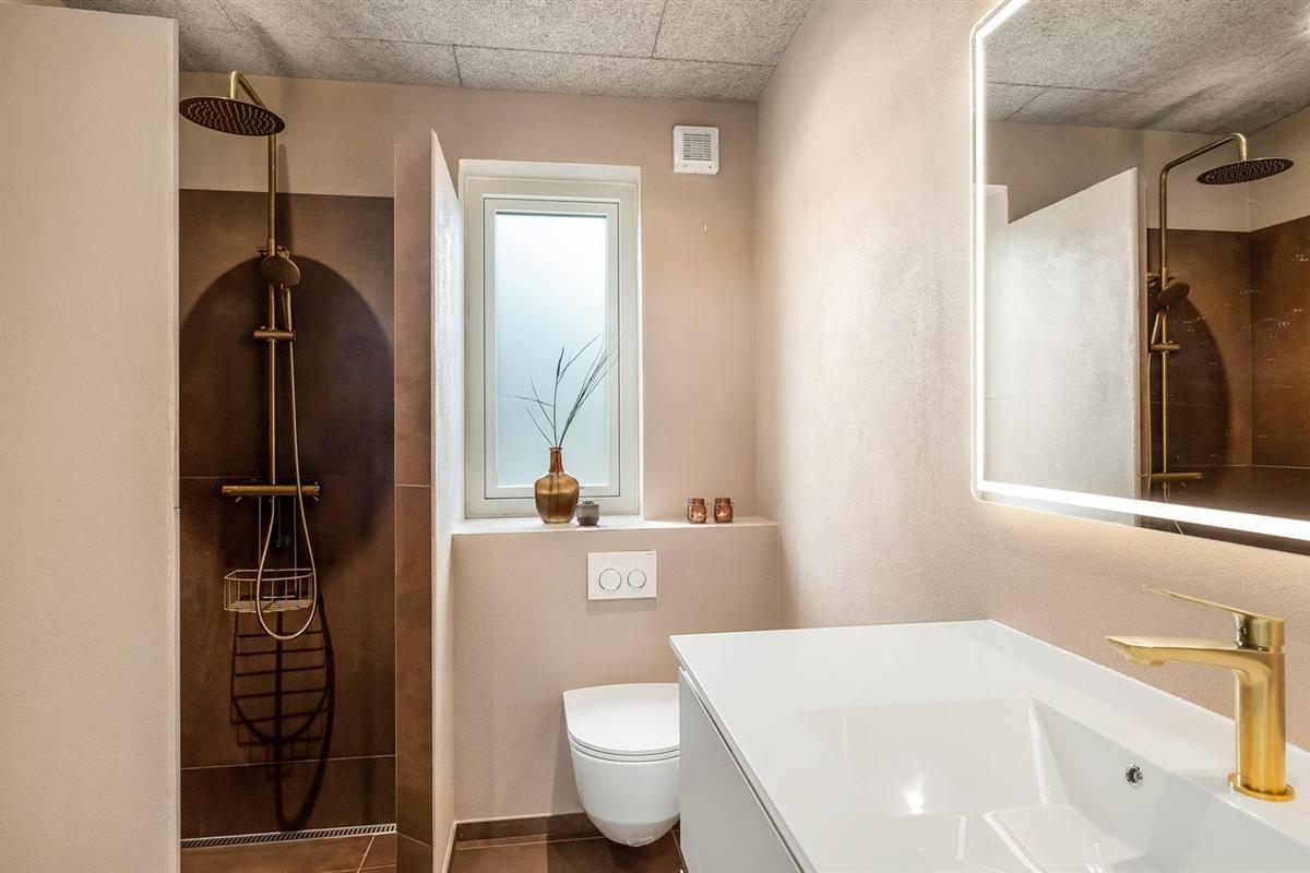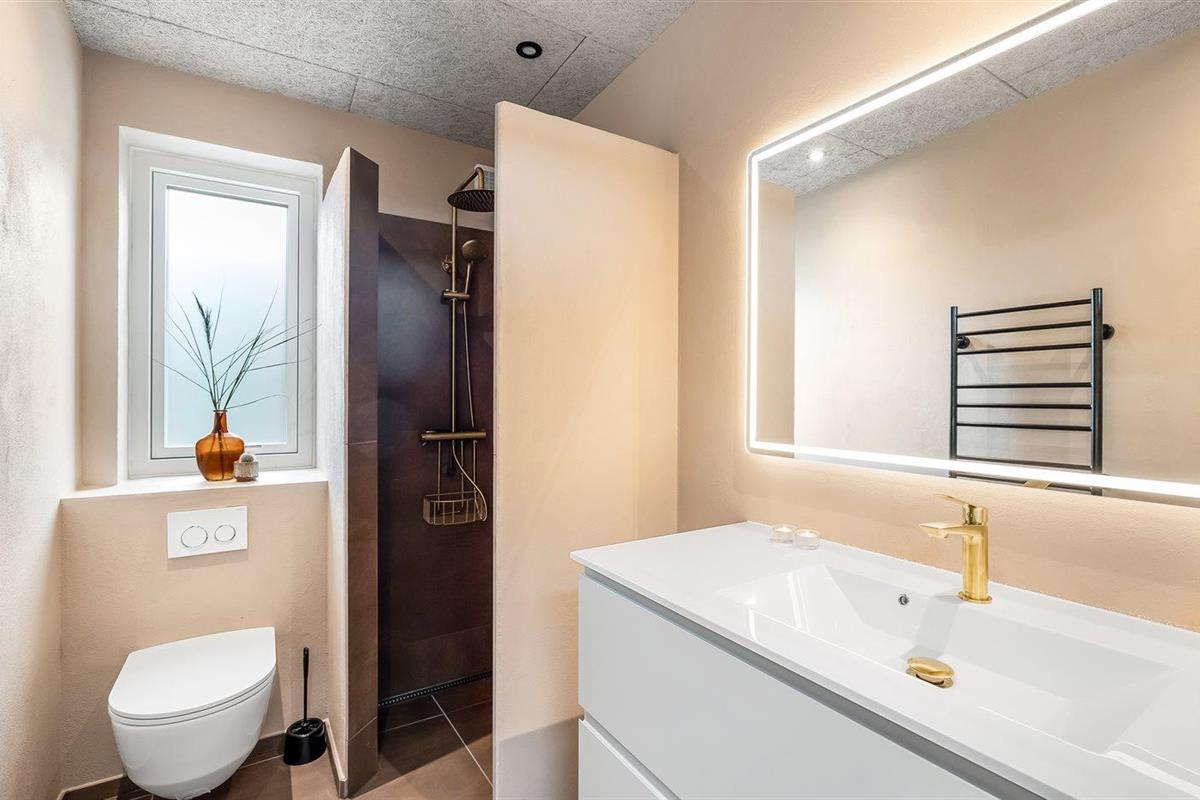 Er is 2 badkamers met douchehok en 2 toiletten. Er is vloerverwarming in 2 van de badkamers.