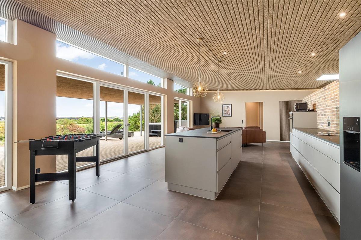 Ruim en modern vakantiehuis in Søndervig met bubbelbad, activiteitenruimte en vloerverwarming, ideaal voor 10 personen.