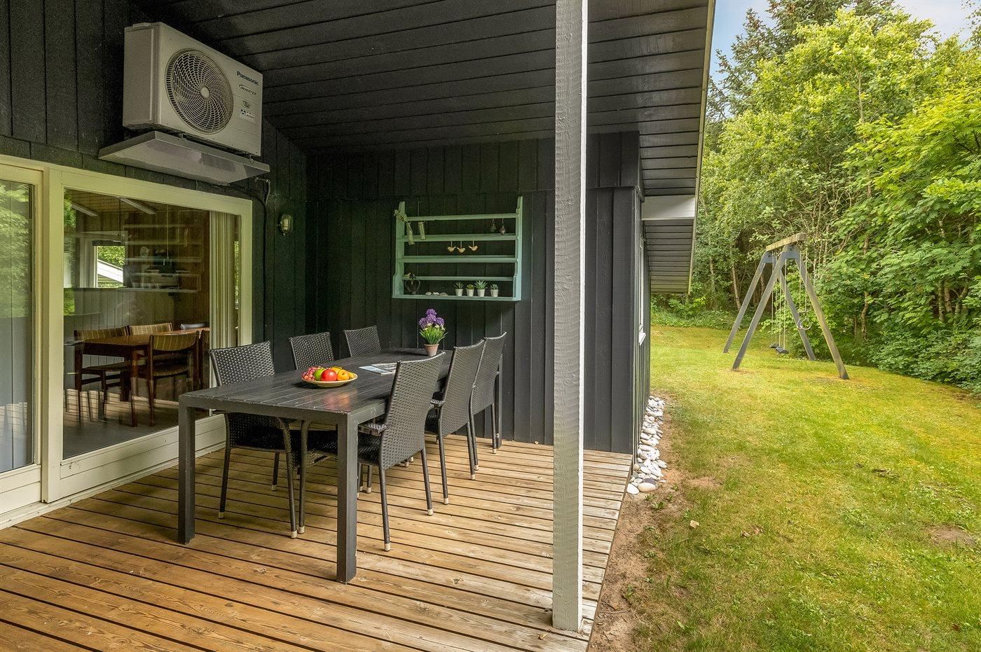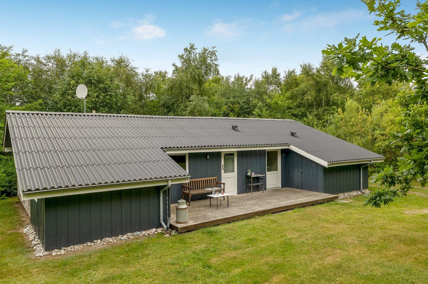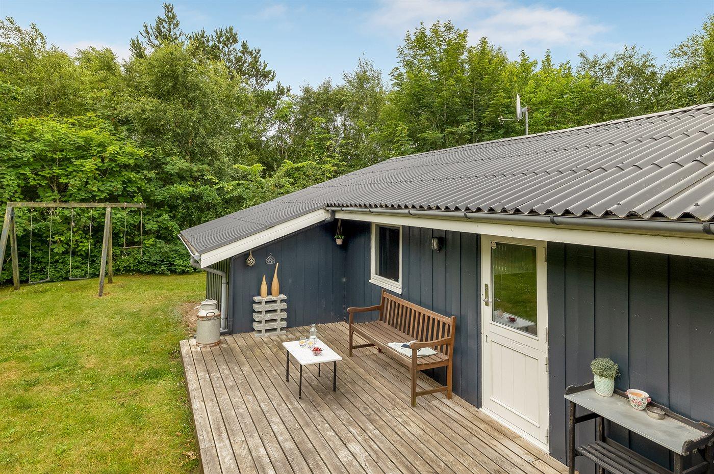 De vakantiewoning is gelegen op een 2200 m² groot natuural grond. Afstand tot de zee 1800 m. Dichtstbijzijnde winkel 2200 m. Bij de vakantiewoning hoort 20 m² terras. Daarnaast is er een 16 m² groot overdekt terras. Gereedschapsruimte. Schommel. Zandbak. Parkeerplaats bij het huis.