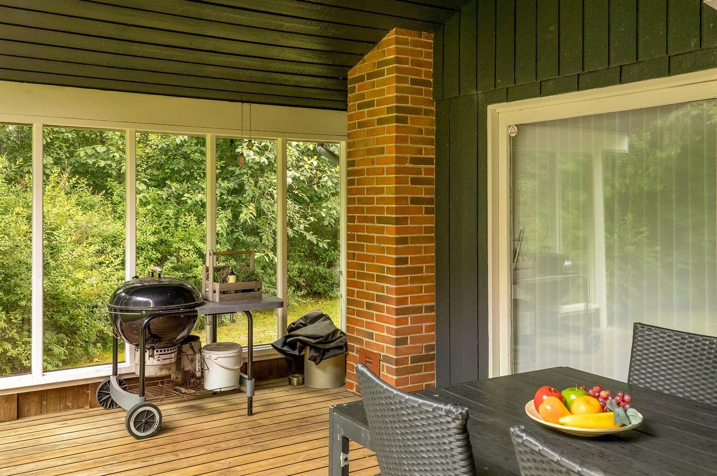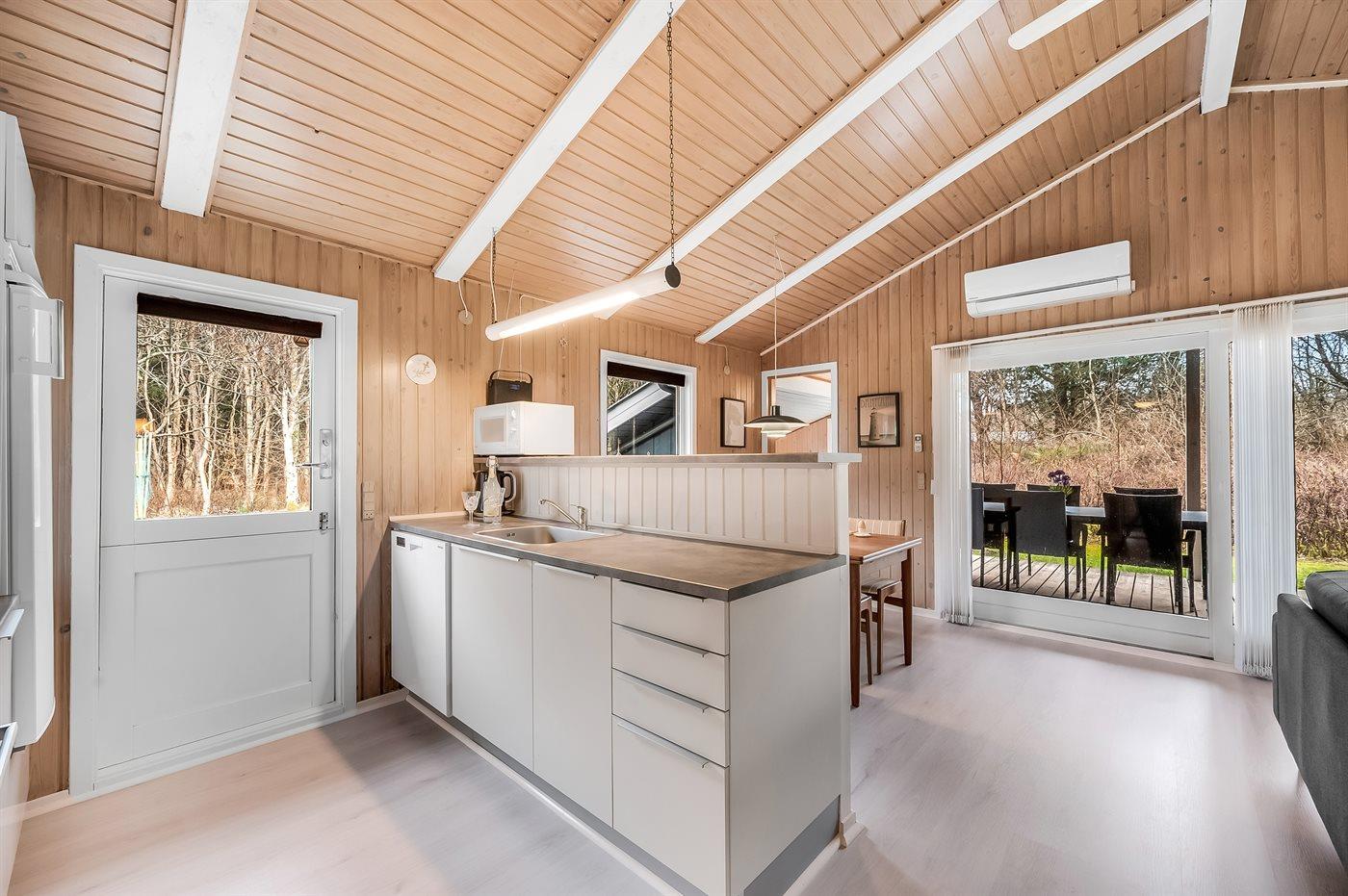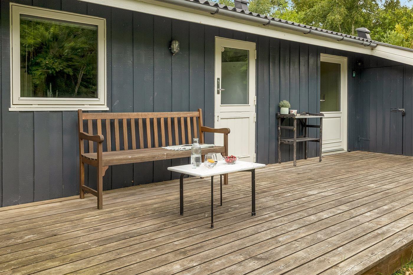 De vakantiewoning is gelegen op een 2200 m² groot natuural grond. Afstand tot de zee 1800 m. Dichtstbijzijnde winkel 2200 m. Bij de vakantiewoning hoort 20 m² terras. Daarnaast is er een 16 m² groot overdekt terras. Gereedschapsruimte. Schommel. Zandbak. Parkeerplaats bij het huis.