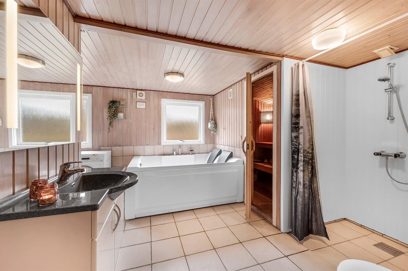 Er is 1 badkamer met douchehok en 1 toilet.. Er is vloerverwarming in 1 badkamer. De sauna biedt de gelegenheid tot ontspanning.