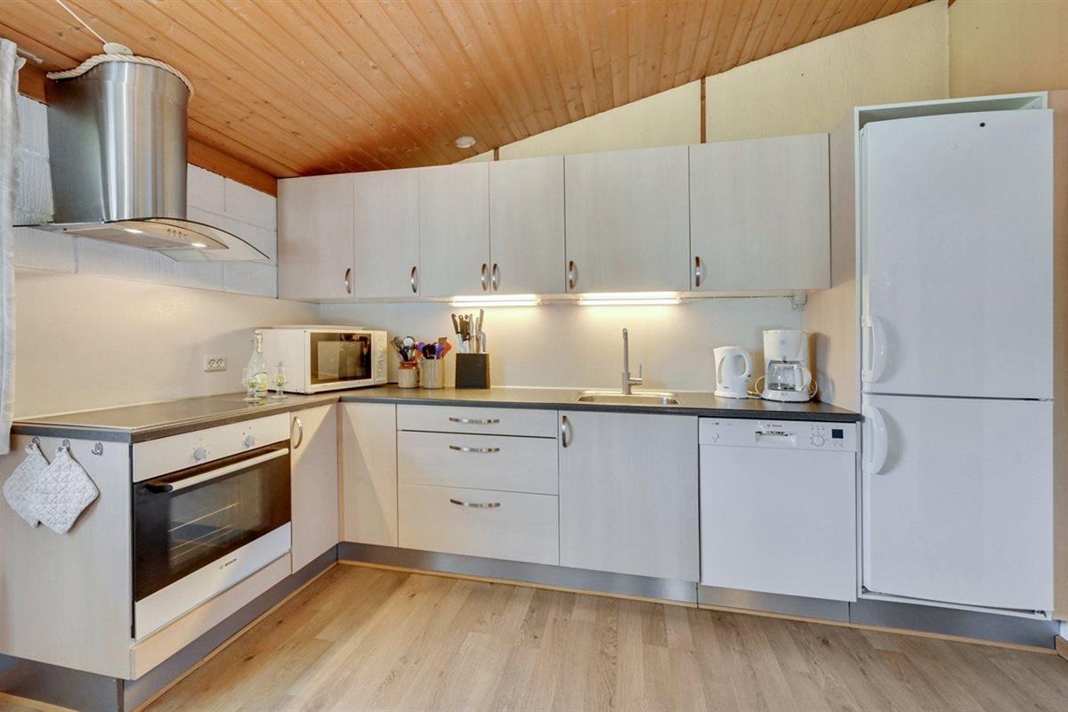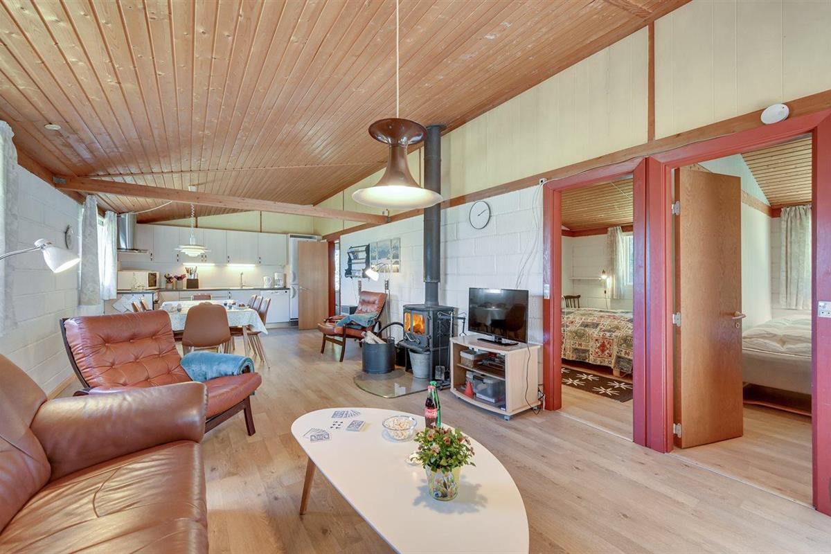 De vakantiewoning is gelegen op een 2000 m² groot natuural grond. Afstand tot de zee 1800 m. Afstand tot de fjord 700 m. Dichtstbijzijnde winkel 2500 m. Bij de vakantiewoning hoort 4 m² terras. Daarnaast is er een 22 m² groot overdekt terras. Gereedschapsruimte. Schommel. Zandbak. Parkeerplaats bij het huis.