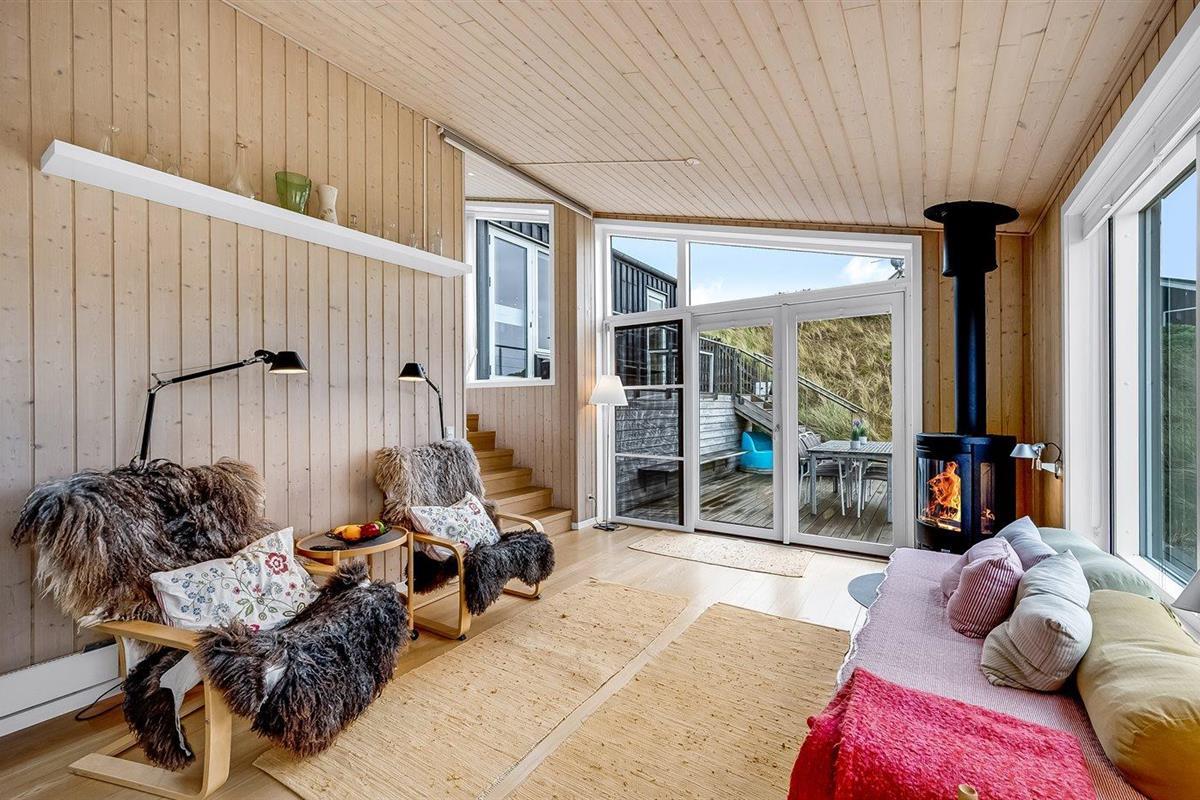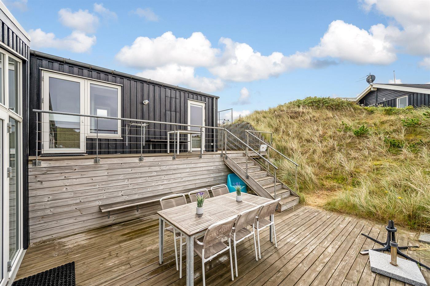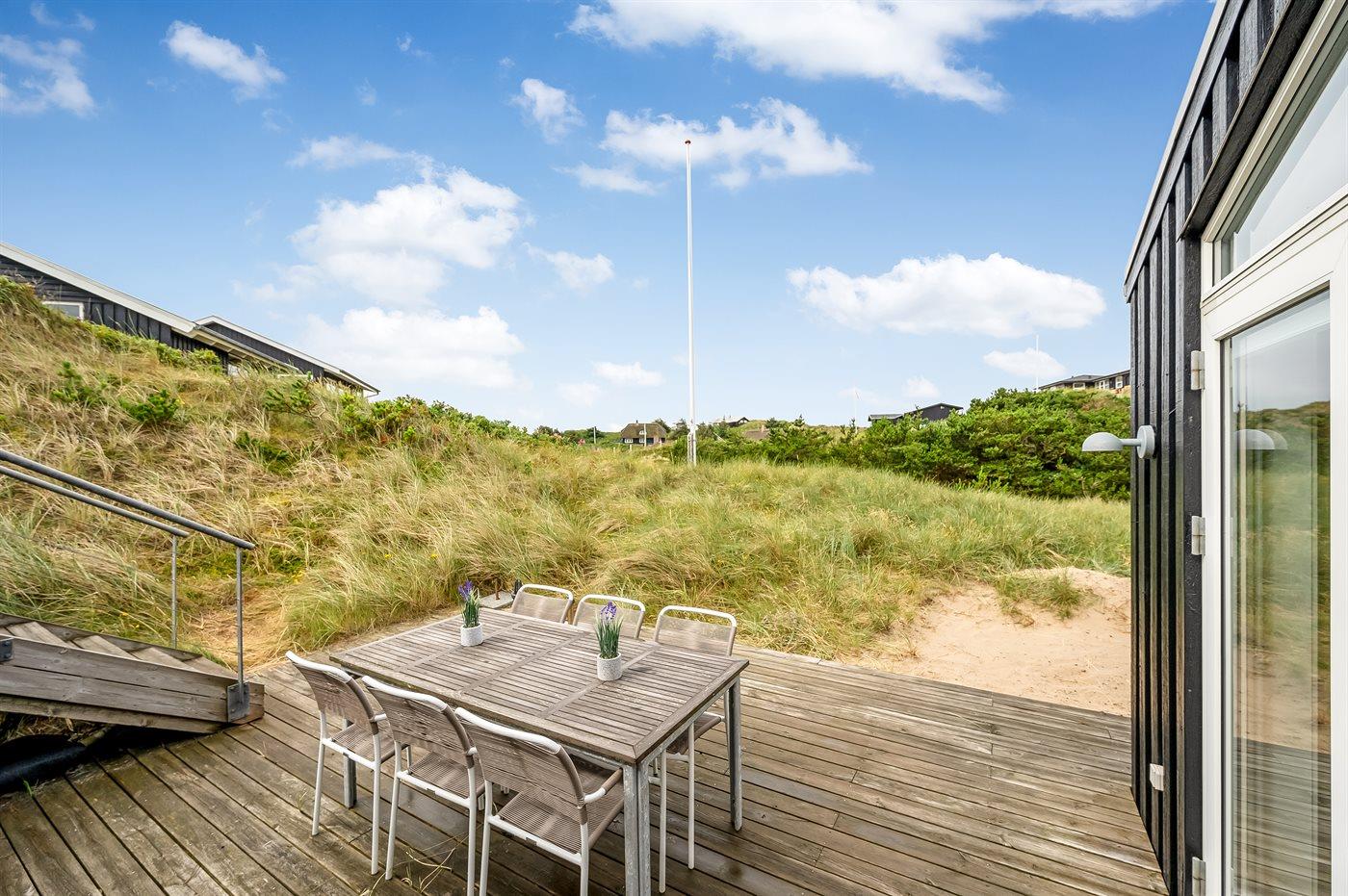 De vakantiewoning is gelegen op een 1216 m² groot natuural grond. Afstand tot de zee 350 m. Afstand tot de fjord 1000 m. Dichtstbijzijnde winkel 600 m. Er is een golfbaan op een afstand van 2000 m. Bij de vakantiewoning hoort terras. Zandbak. Buitendouche. Barbecue. Het huis heeft een stopcontact voor het opladen van een elektrische auto. Oplaadstekker type 2. Met 11 kW-laadvermogen. Parkeerplaats bij het huis.