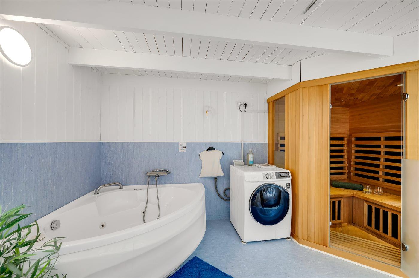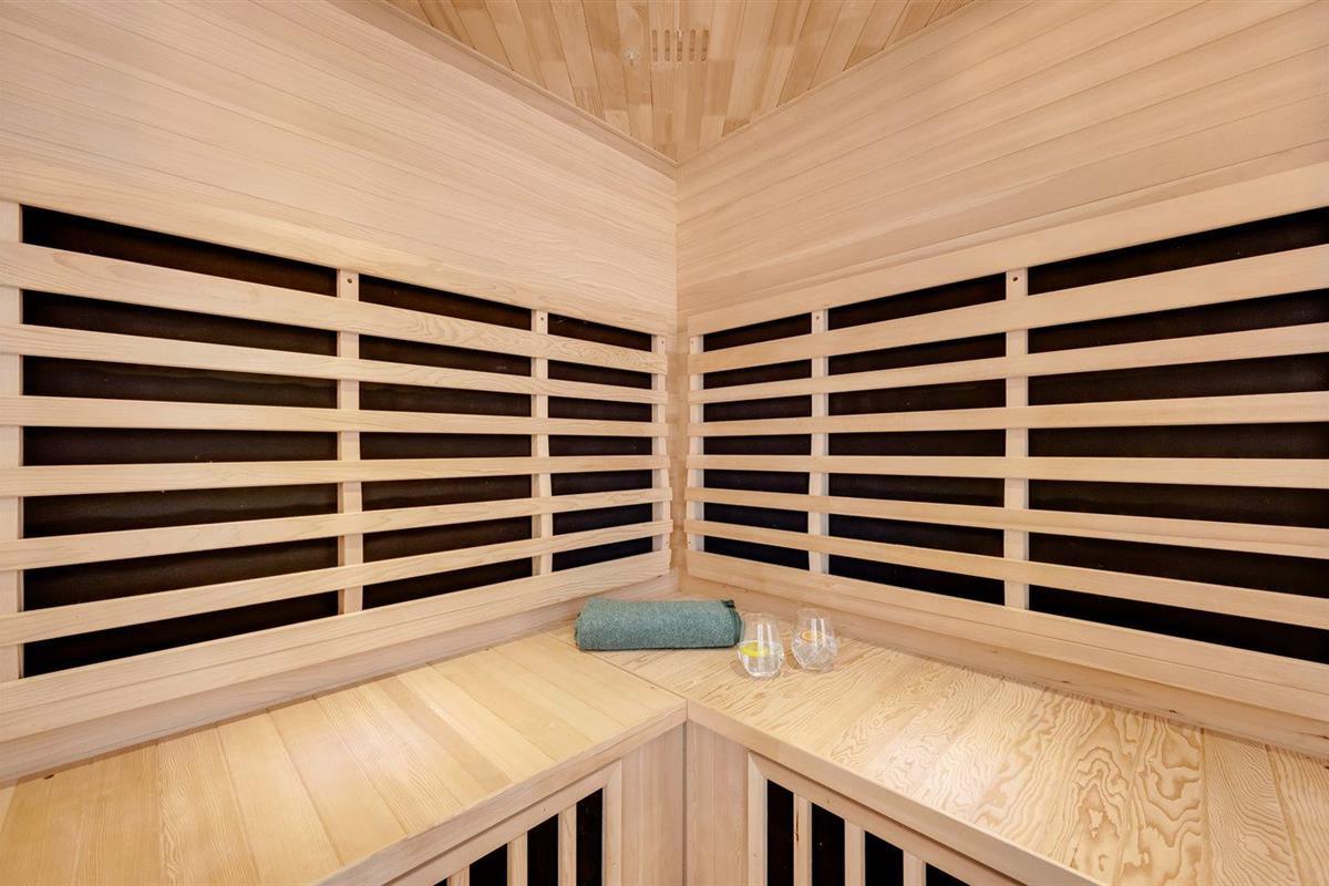 Er is 1 badkamer met douchehok en 1 toilet. De sauna biedt de gelegenheid tot ontspanning.