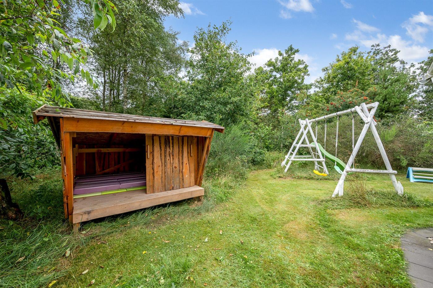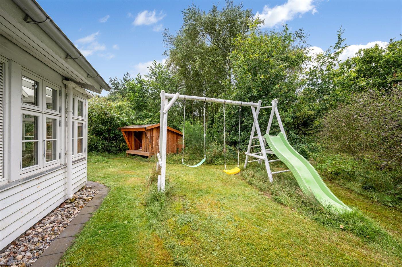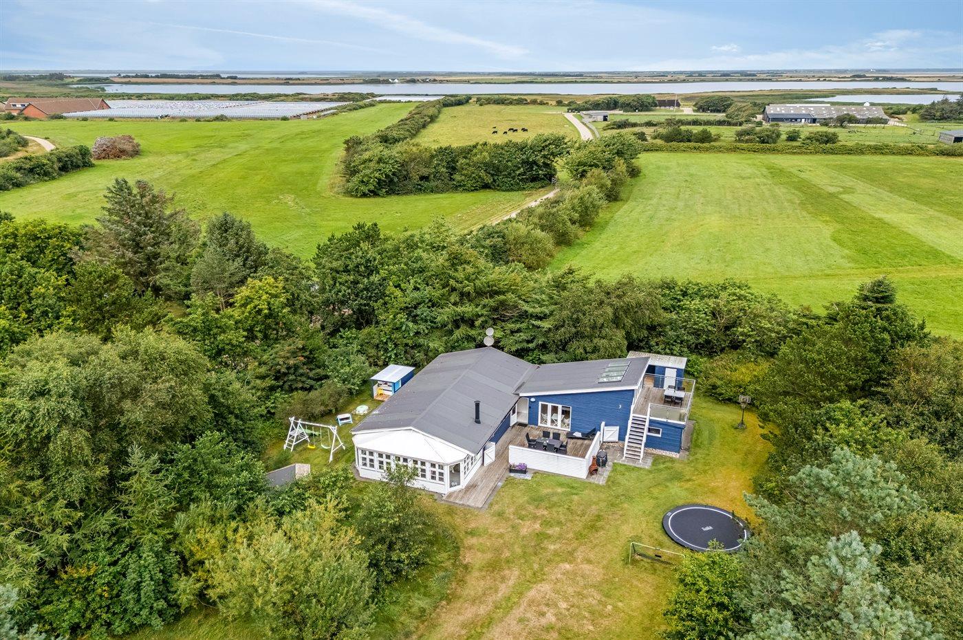 De vakantiewoning is gelegen op een 2009 m² groot natuural grond. Afstand tot de zee 2500 m. Afstand tot de fjord 600 m. Dichtstbijzijnde winkel 3000 m. Er is een golfbaan op een afstand van 2000 m. Bij de vakantiewoning hoort beschut terras. Balkon. Tevens heeft u de beschikking over een serre. Schommel. Zandbak. Speelhuisje. Trampoline. Glijbaan. Voetbaldoel. Afstand tot speelplaats 500 m. Shelter. Parkeerplaats bij het huis.