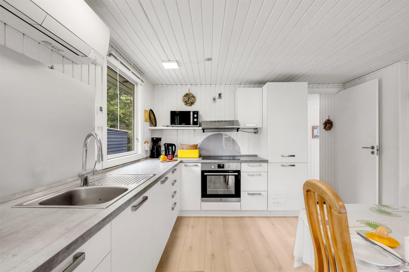 De keuken is uitgerust met koelkast Er zijn 4 keramische kookplaten, heteluchtoven, magnetron en vaatwasser.