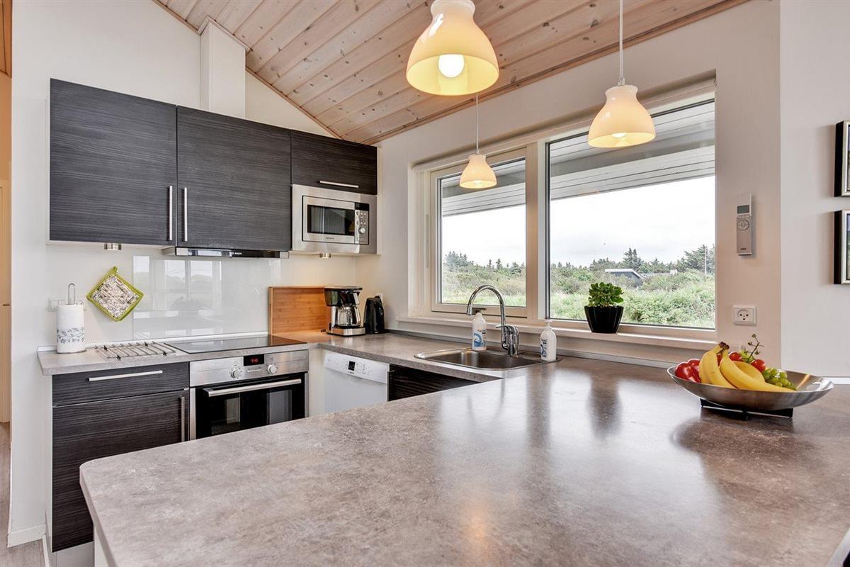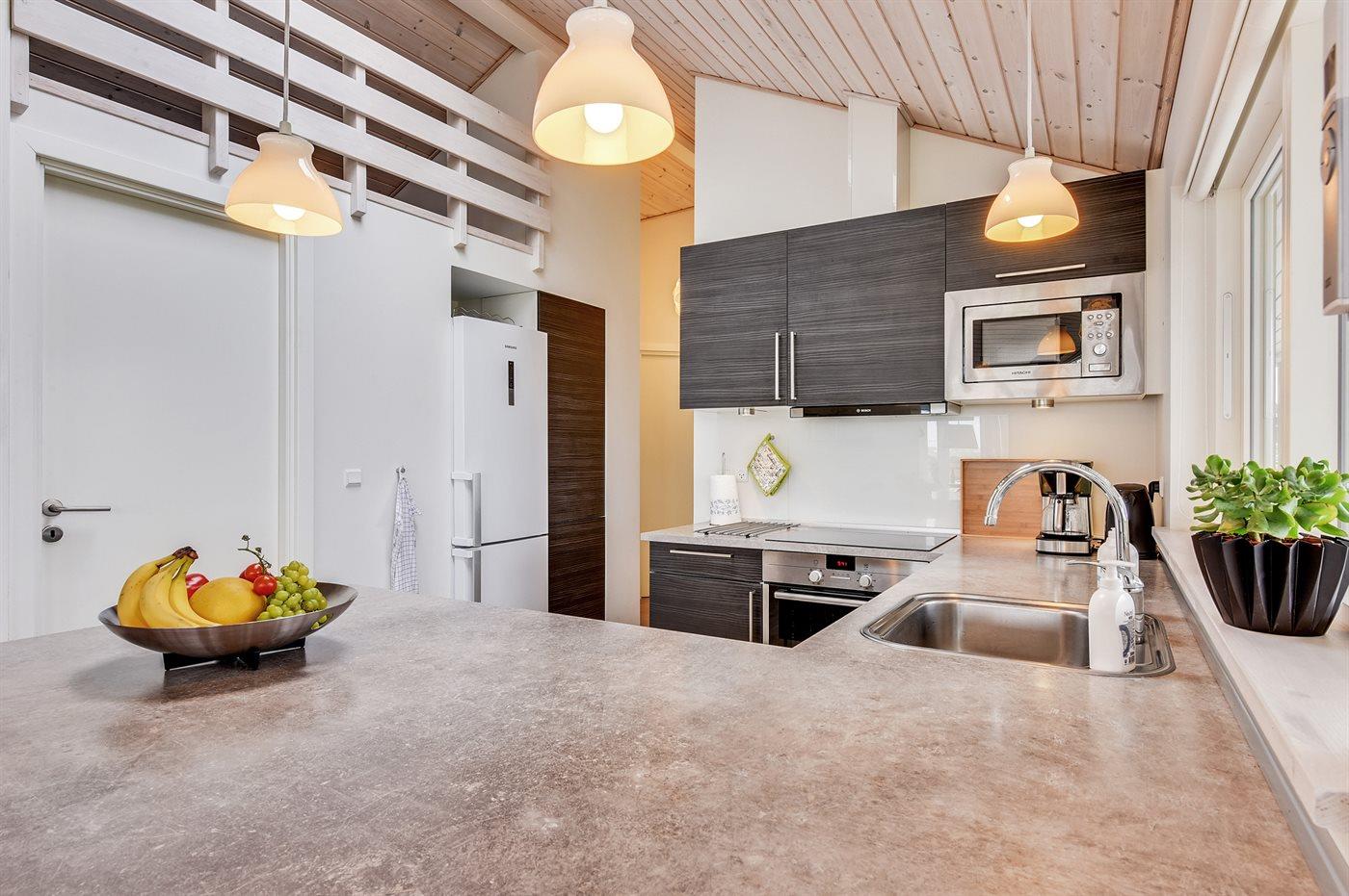 De keuken is uitgerust met koelkast Er zijn 4 keramische kookplaten, heteluchtoven, magnetron en vaatwasser.