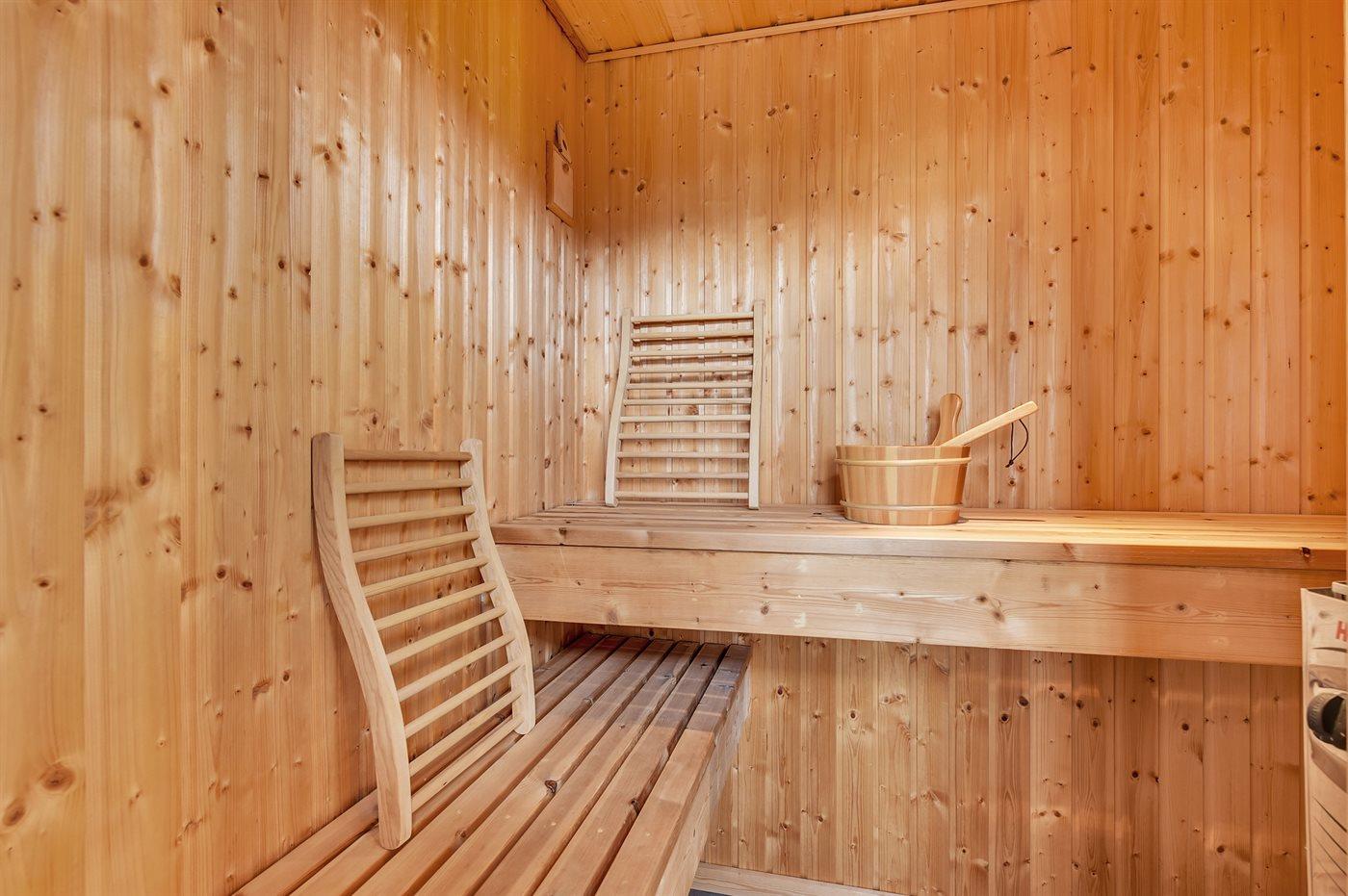 Er is 2 badkamers met douchehok en 2 toiletten. Er is vloerverwarming in 1 badkamer. De sauna biedt de gelegenheid tot ontspanning.