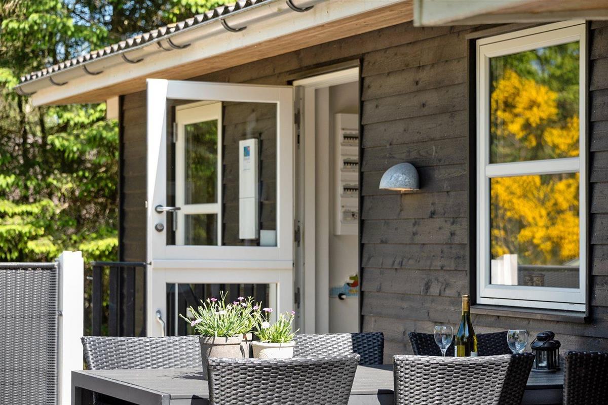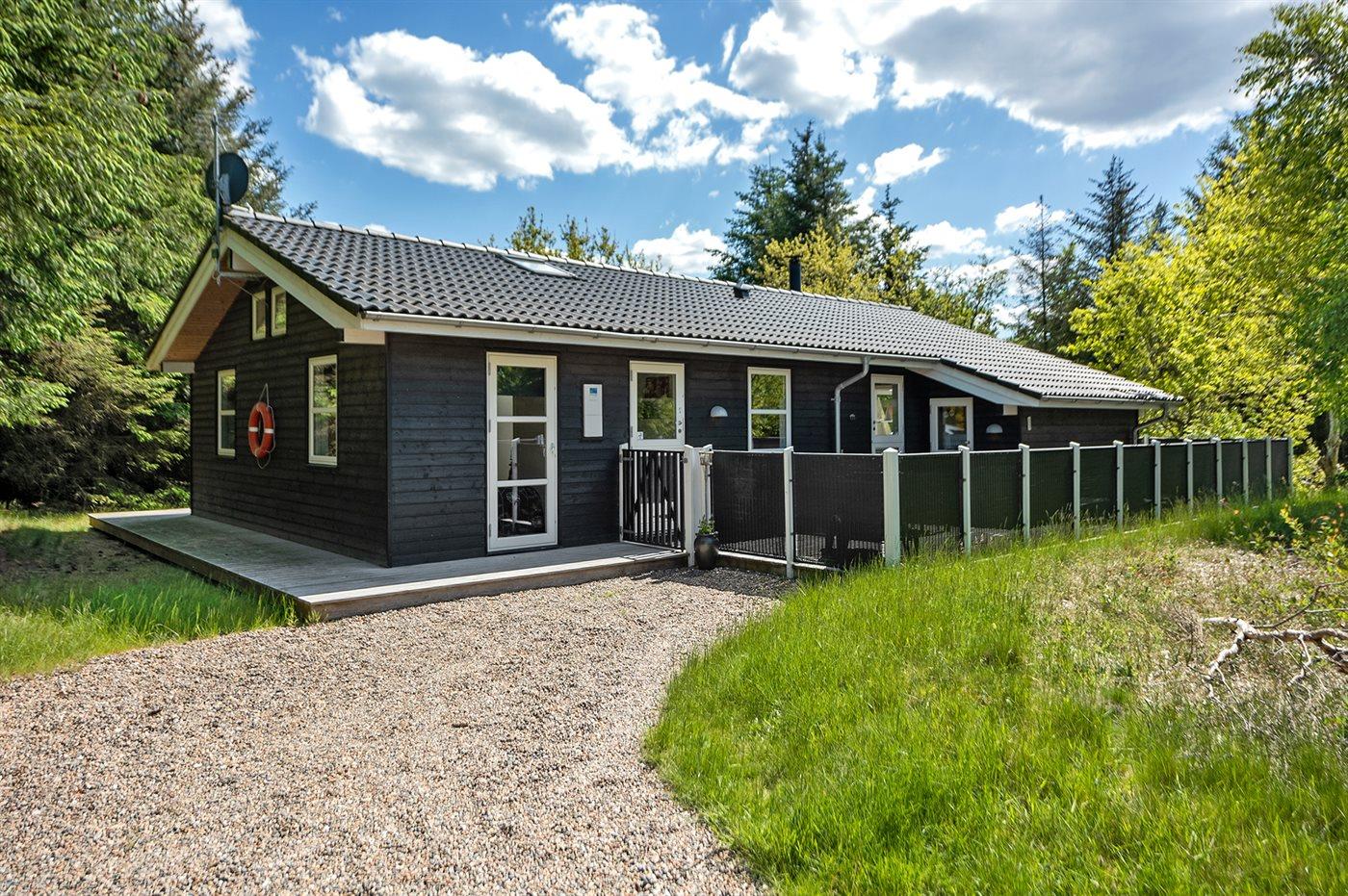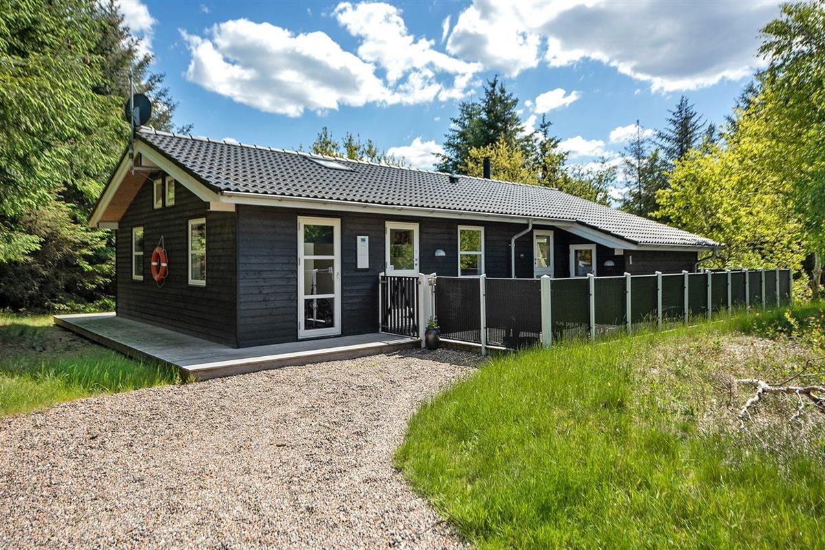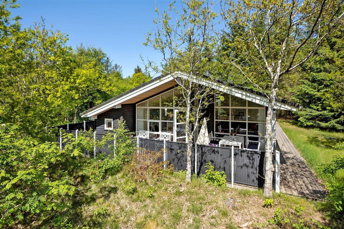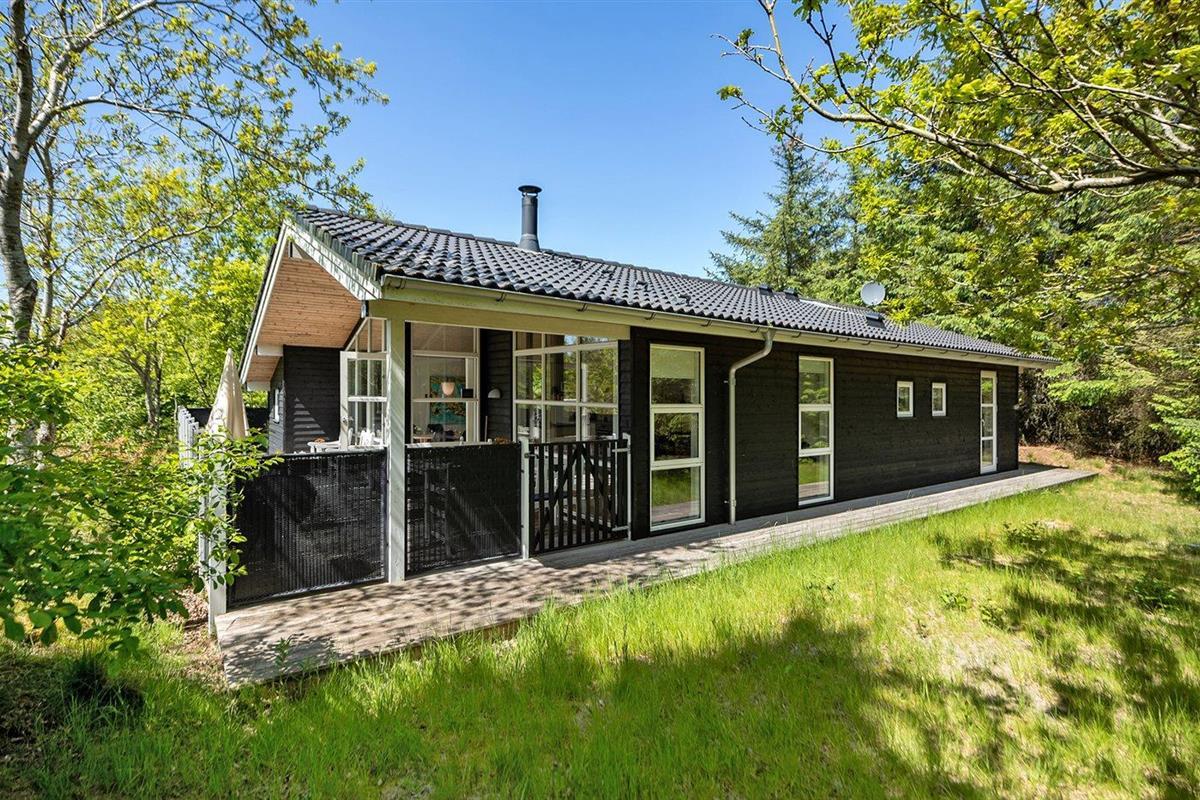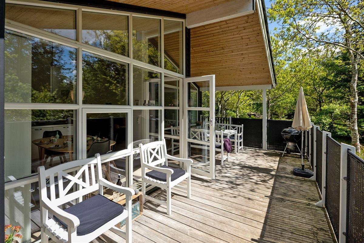 De vakantiewoning is gelegen op een 2600 m² groot natuural grond. Afstand tot de zee 1700 m. Afstand tot de fjord 800 m. Dichtstbijzijnde winkel 1500 m. Er is een golfbaan op een afstand van 600 m. Bij de vakantiewoning hoort 63 m² terras. Daarnaast is er een 12 m² groot overdekt terras. Waarvan in totaal 75 m² beschut terras. Gereedschapsruimte. Parkeerplaats bij het huis.