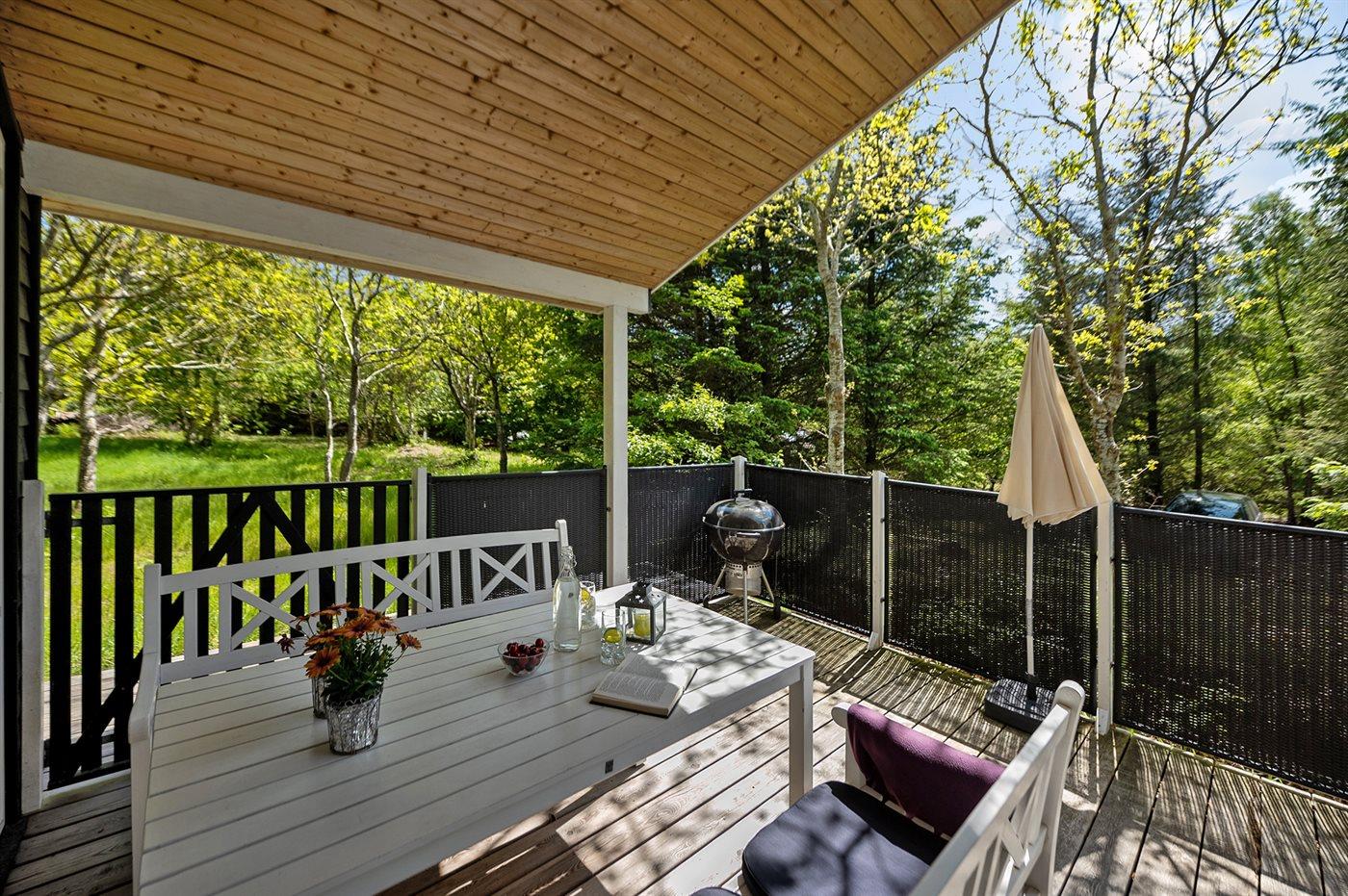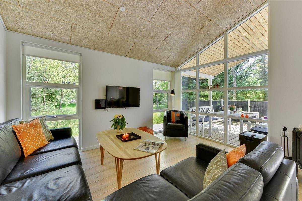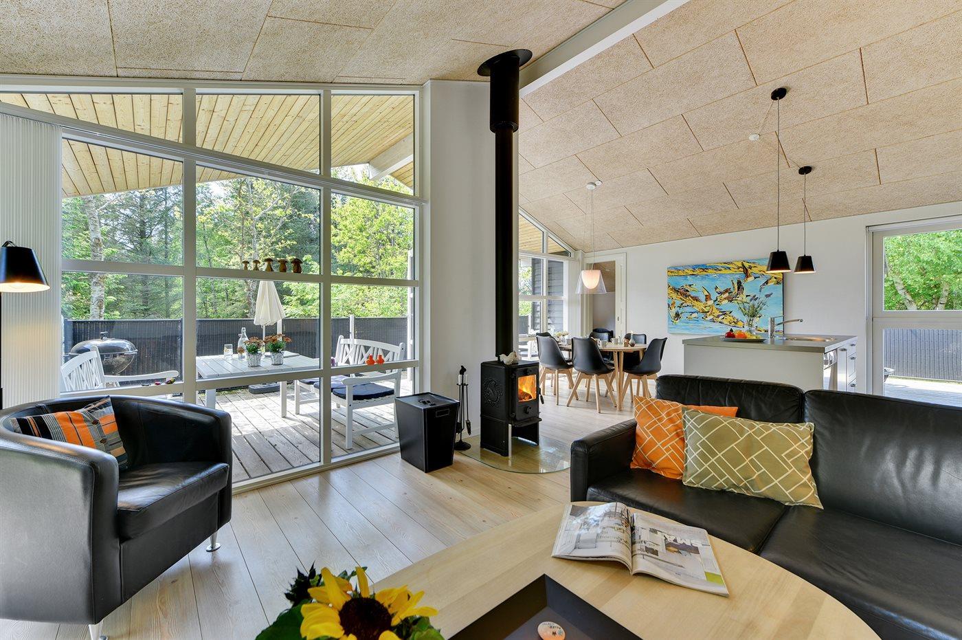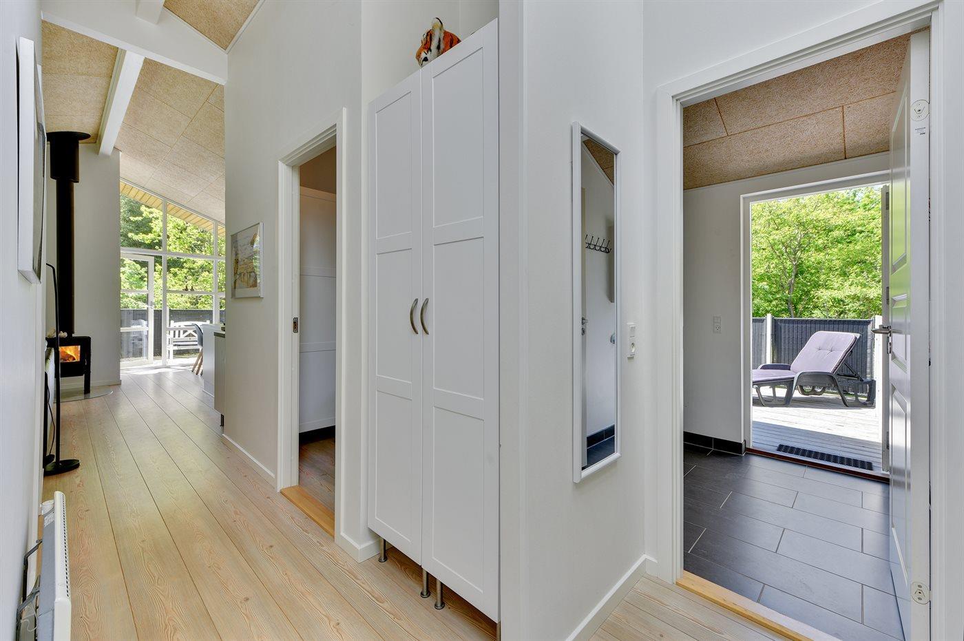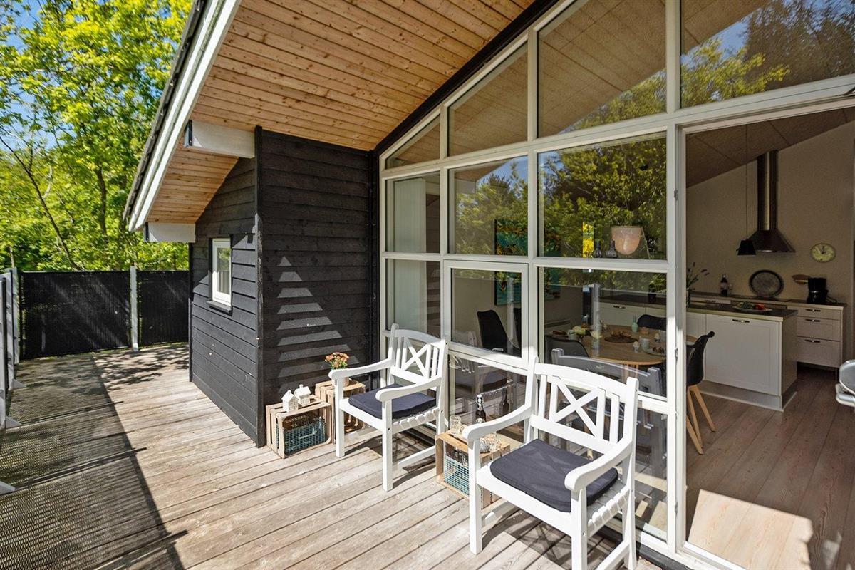 De vakantiewoning is gelegen op een 2600 m² groot natuural grond. Afstand tot de zee 1700 m. Afstand tot de fjord 800 m. Dichtstbijzijnde winkel 1500 m. Er is een golfbaan op een afstand van 600 m. Bij de vakantiewoning hoort 63 m² terras. Daarnaast is er een 12 m² groot overdekt terras. Waarvan in totaal 75 m² beschut terras. Gereedschapsruimte. Parkeerplaats bij het huis.