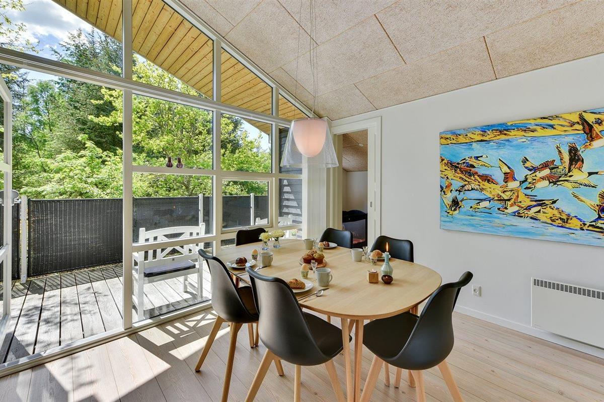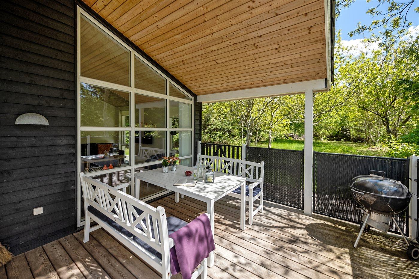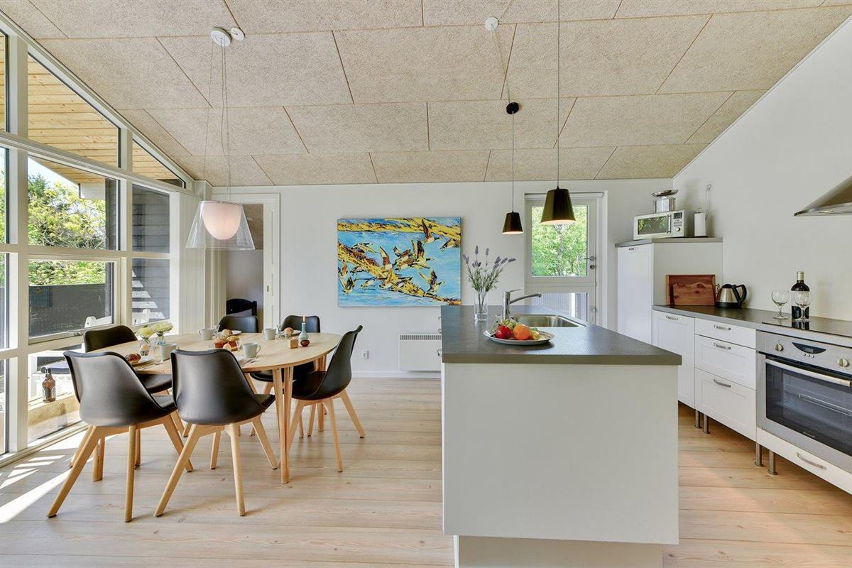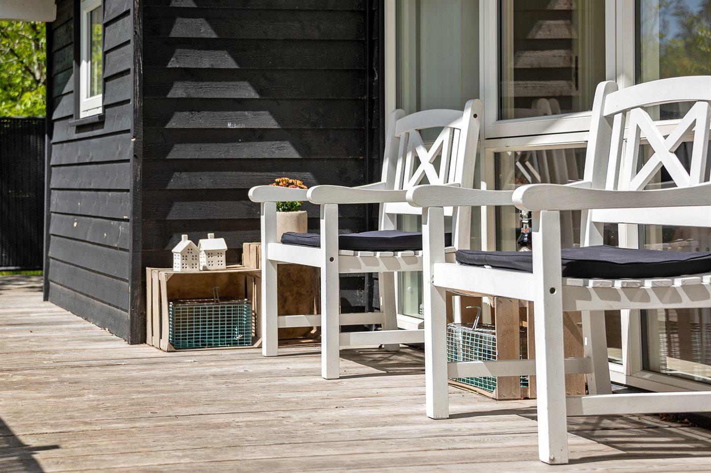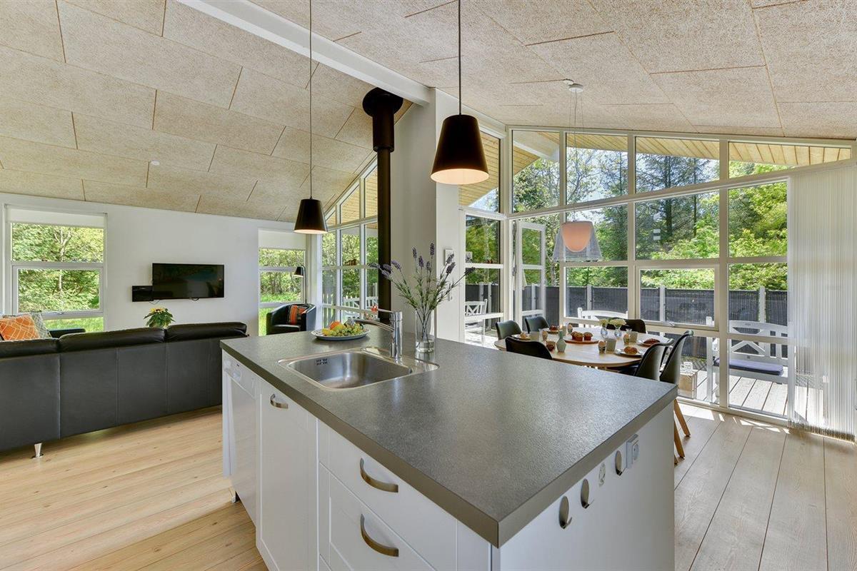 De vakantiewoning is gelegen op een 2600 m² groot natuural grond. Afstand tot de zee 1700 m. Afstand tot de fjord 800 m. Dichtstbijzijnde winkel 1500 m. Er is een golfbaan op een afstand van 600 m. Bij de vakantiewoning hoort 63 m² terras. Daarnaast is er een 12 m² groot overdekt terras. Waarvan in totaal 75 m² beschut terras. Gereedschapsruimte. Parkeerplaats bij het huis.
