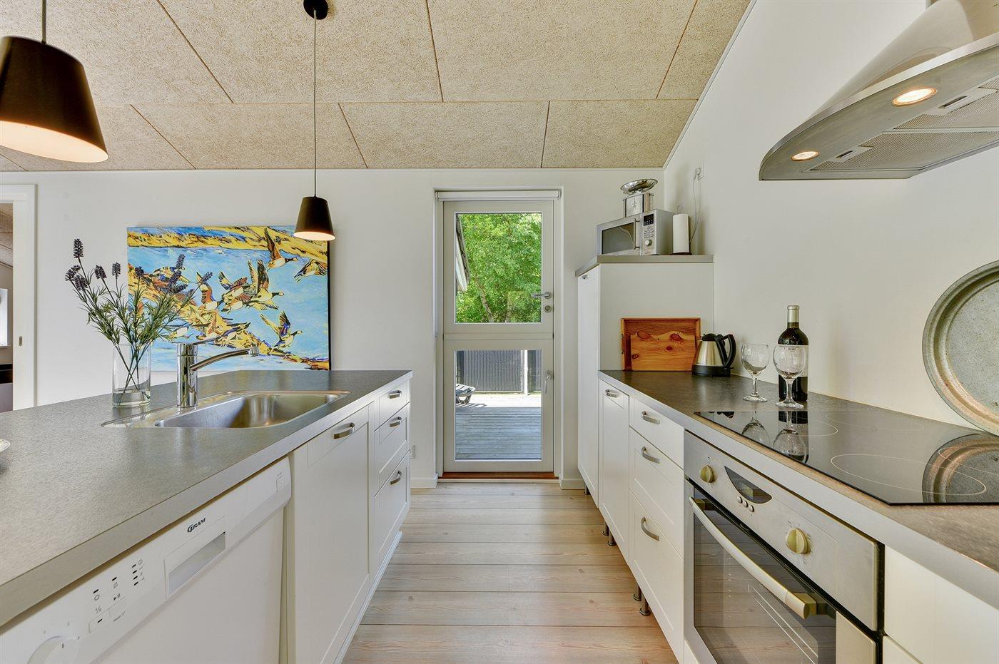 De keuken is uitgerust met koelkast Er zijn 4 keramische kookplaten, heteluchtoven, magnetron en vaatwasser.