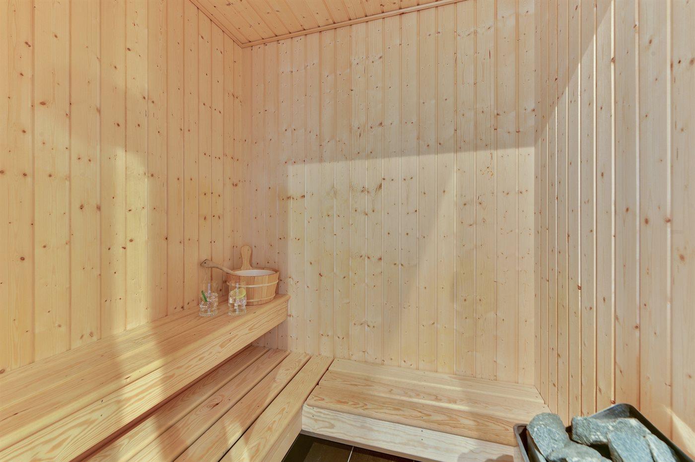 Er is 2 badkamers met douchehok en 2 toiletten. Er is vloerverwarming in 2 van de badkamers. De sauna biedt de gelegenheid tot ontspanning.