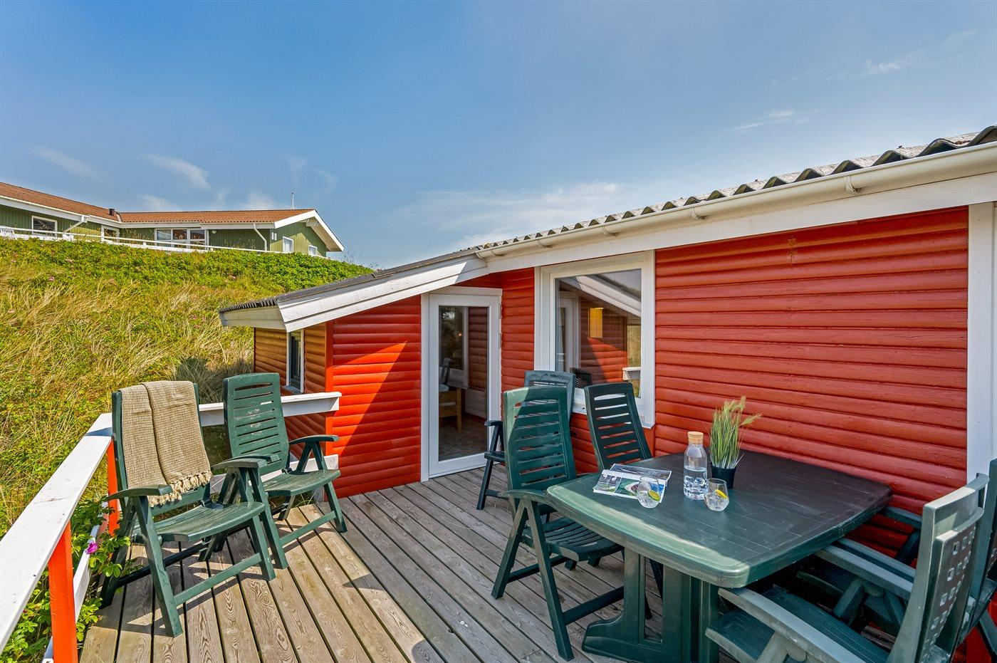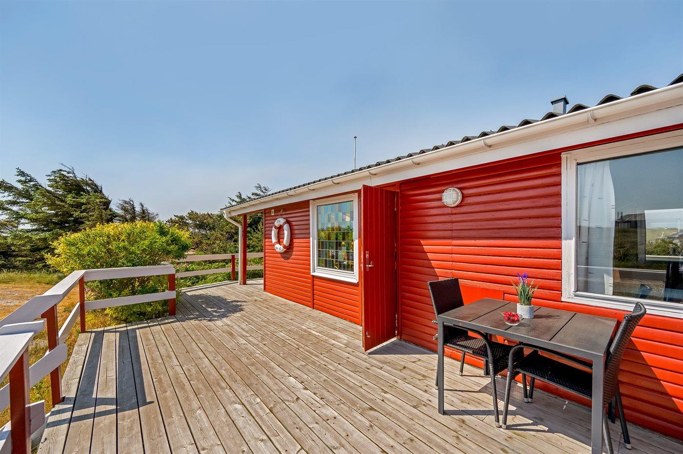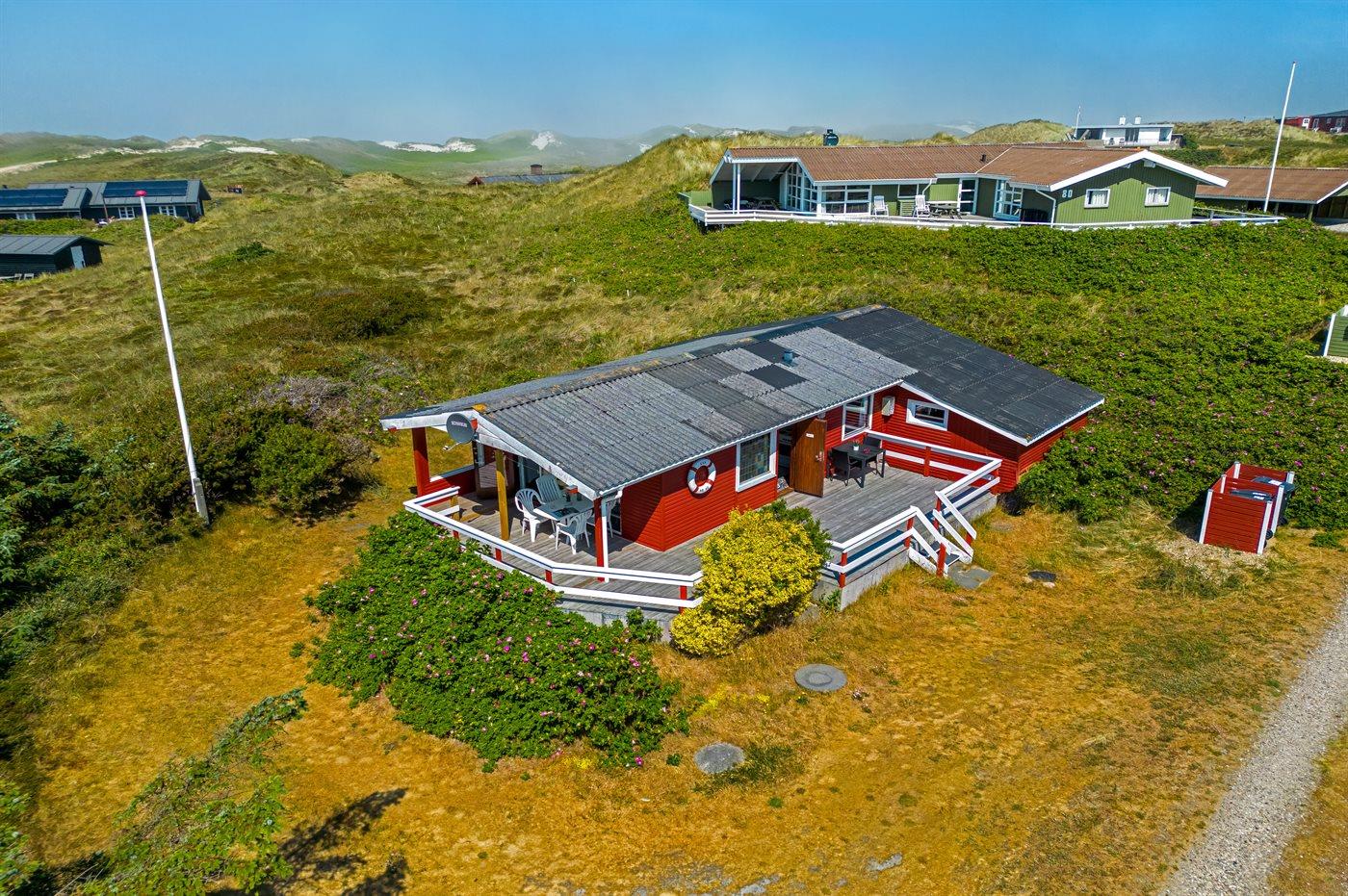 De vakantiewoning is gelegen op een 2300 m² groot natuural grond. Afstand tot de zee 300 m. Afstand tot de fjord 2200 m. Dichtstbijzijnde winkel 2300 m. Er is een golfbaan op een afstand van 3000 m. Bij de vakantiewoning hoort 32 m² terras. Parkeerplaats bij het huis.
