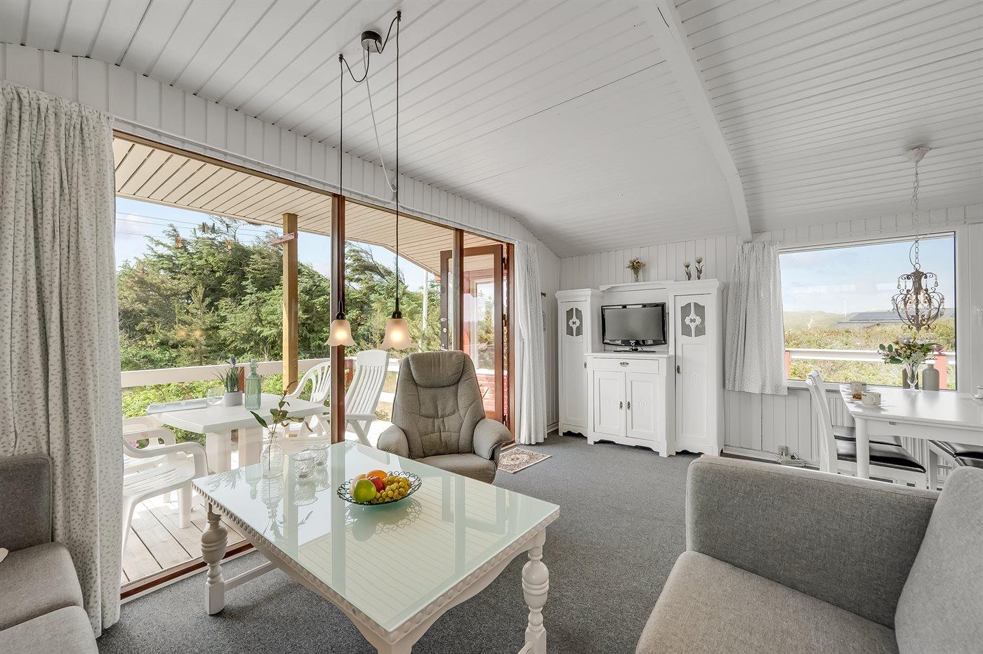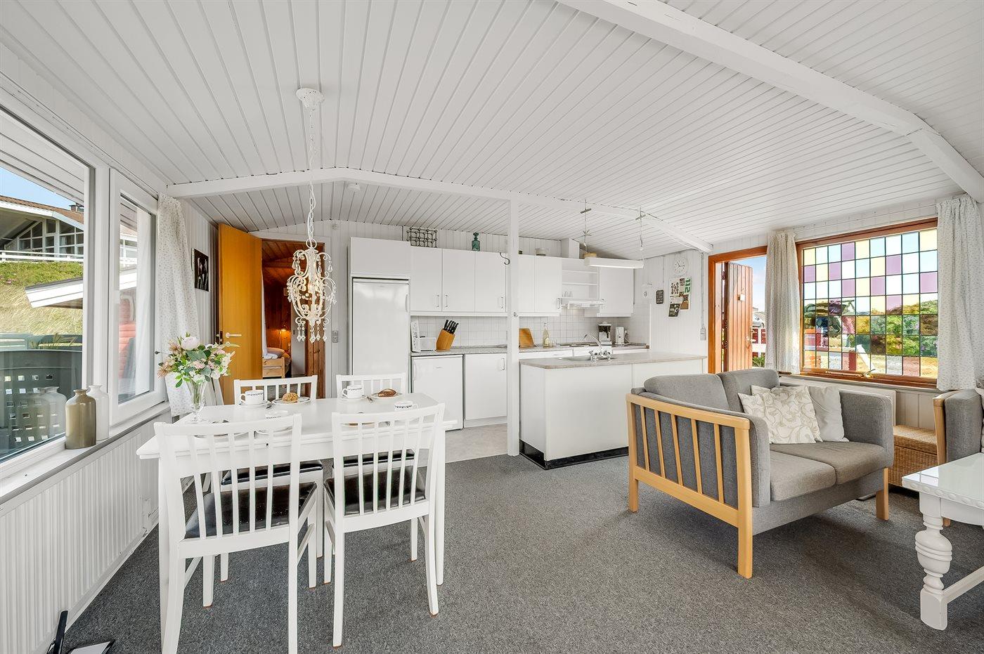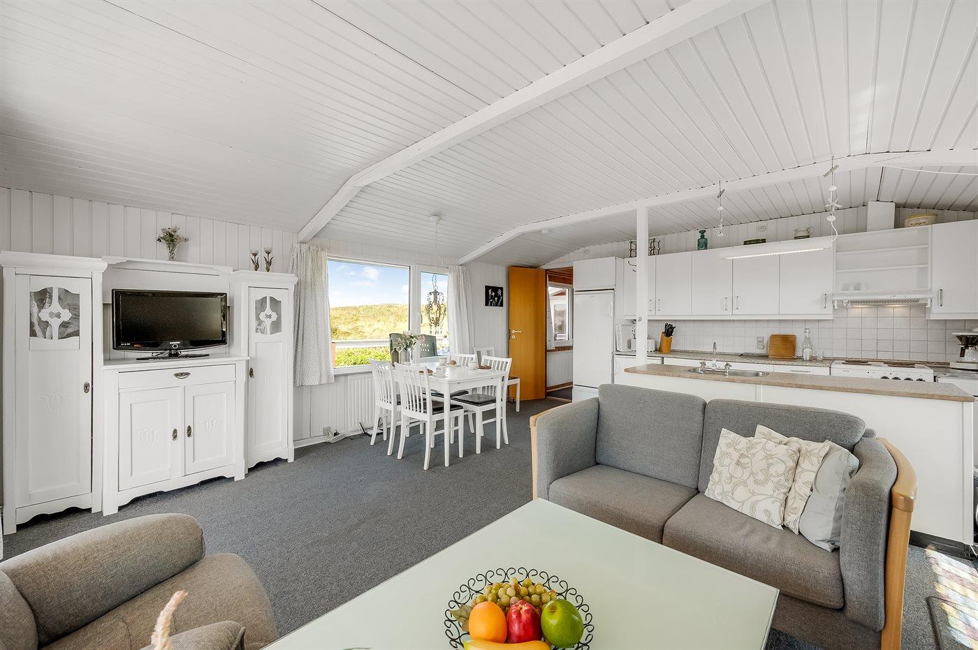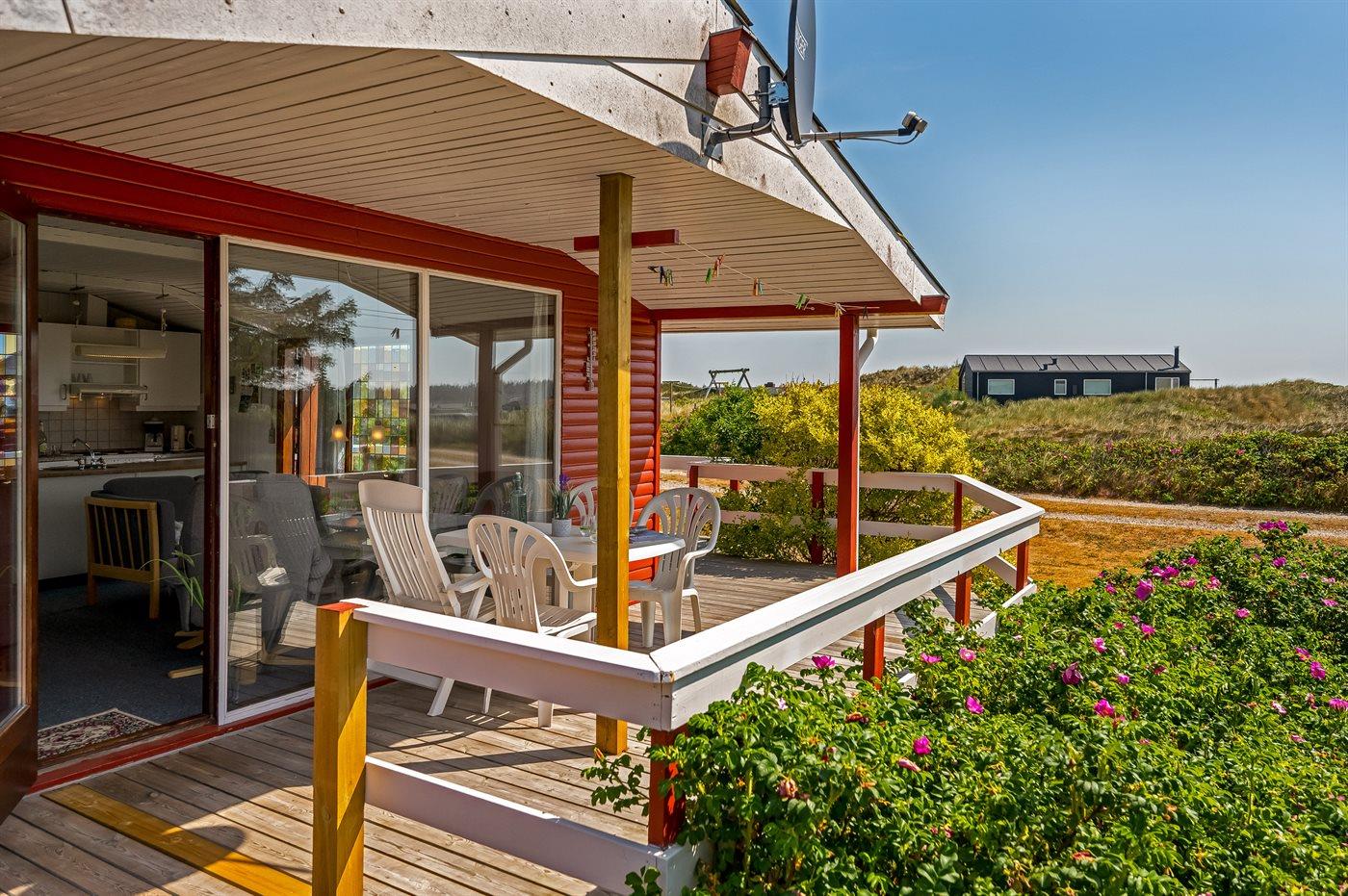 De vakantiewoning is gelegen op een 2300 m² groot natuural grond. Afstand tot de zee 300 m. Afstand tot de fjord 2200 m. Dichtstbijzijnde winkel 2300 m. Er is een golfbaan op een afstand van 3000 m. Bij de vakantiewoning hoort 32 m² terras. Parkeerplaats bij het huis.