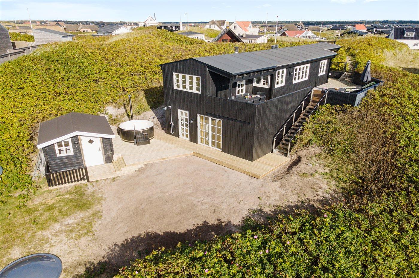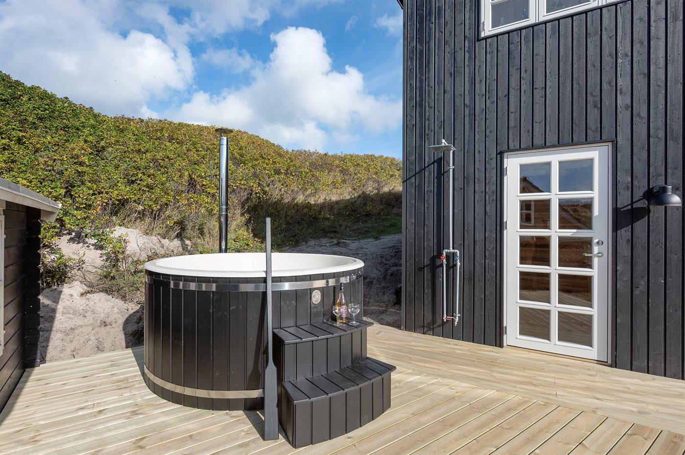 Ruim vakantiehuis nabij zee met hot tub, houtkachel en modern comfort in Søndervig, Denemarken.
