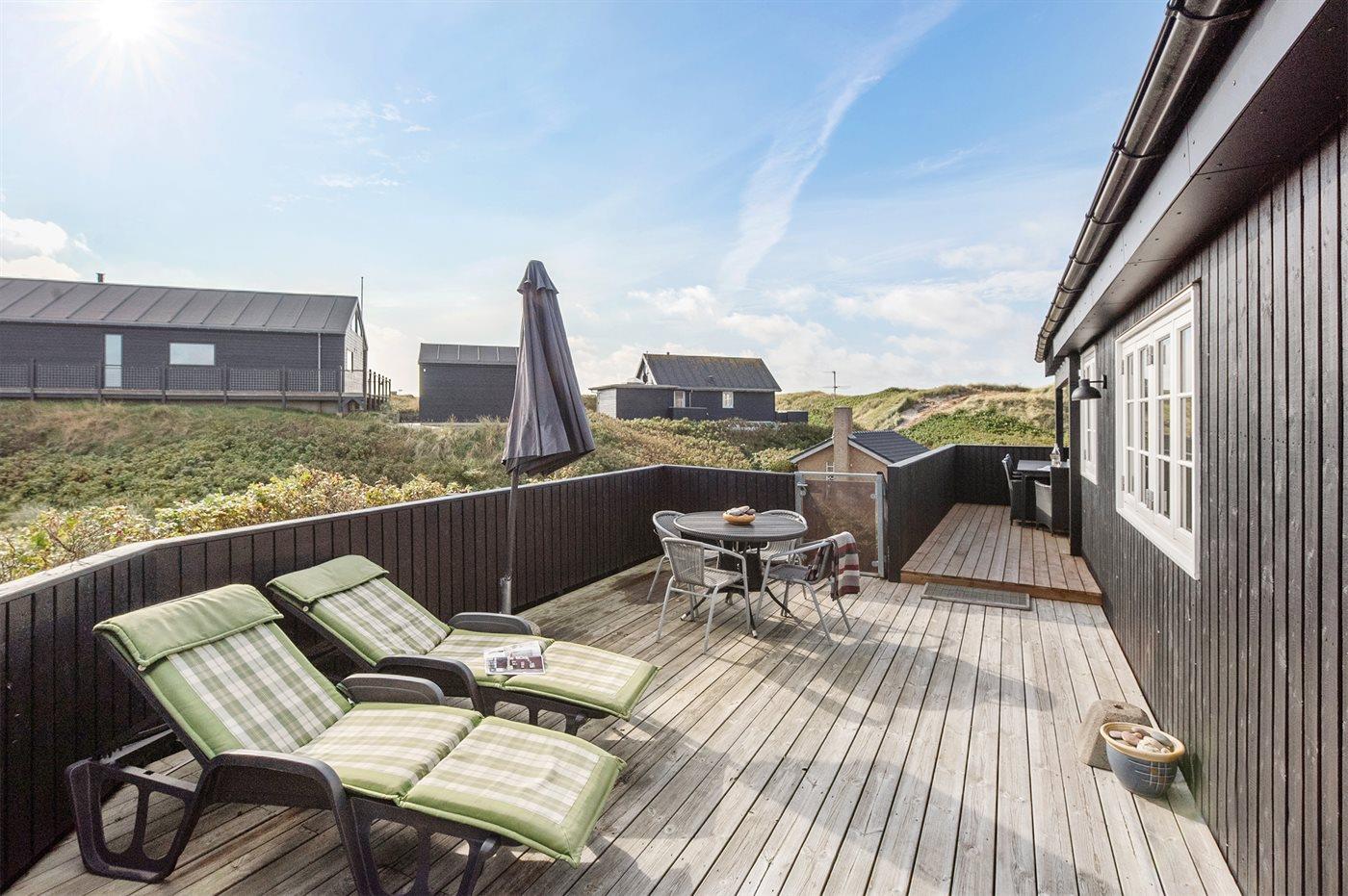 De vakantiewoning is gelegen op een 400 m² groot Duingrond. Afstand tot de zee 100 m. Dichtstbijzijnde winkel 600 m. Er is een golfbaan op een afstand van 1500 m. Bij de vakantiewoning hoort 75 m² beschut terras. Daarnaast is er een 6 m² groot overdekt terras. Buitendouche. Parkeerplaats bij het huis.