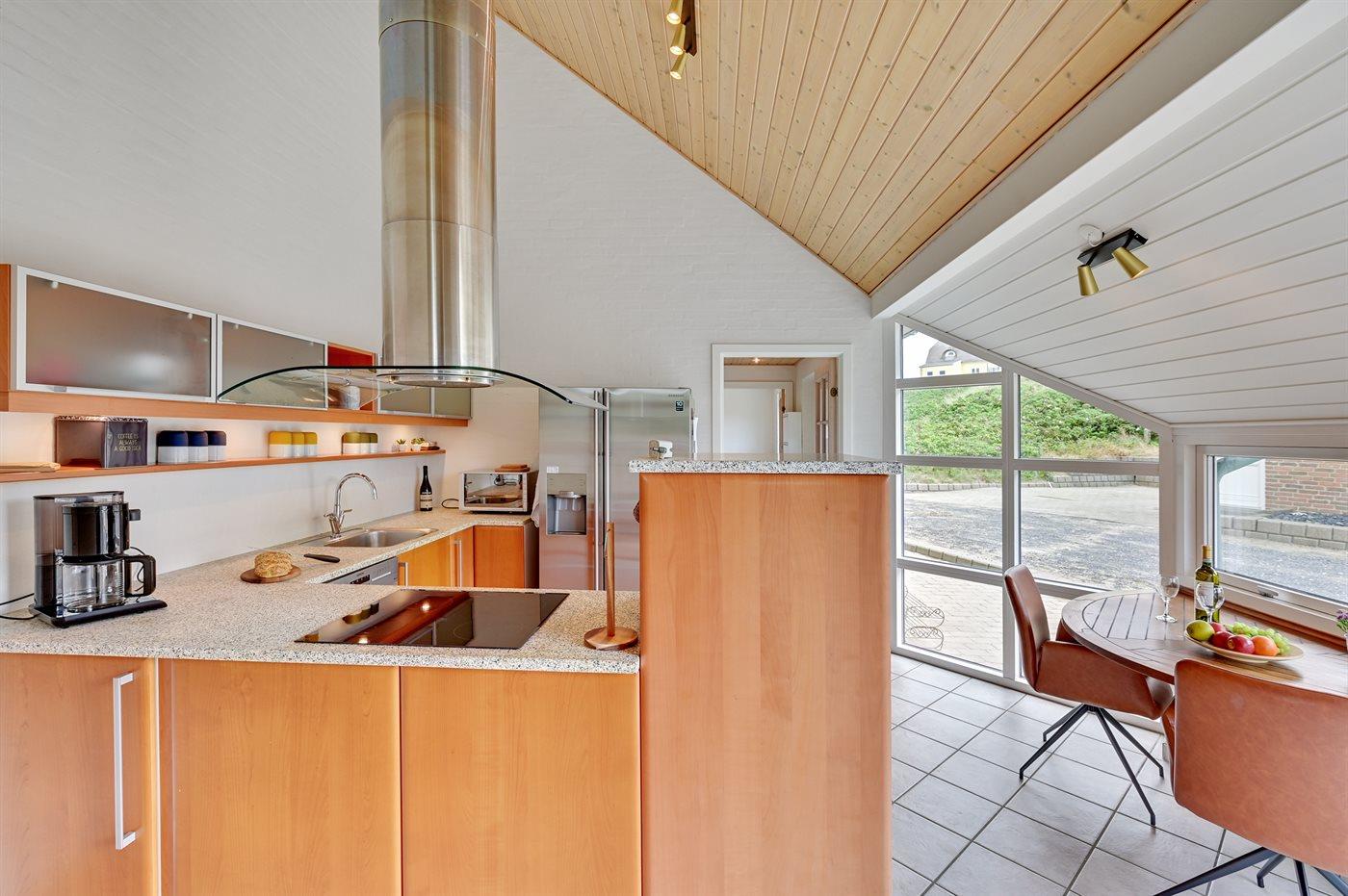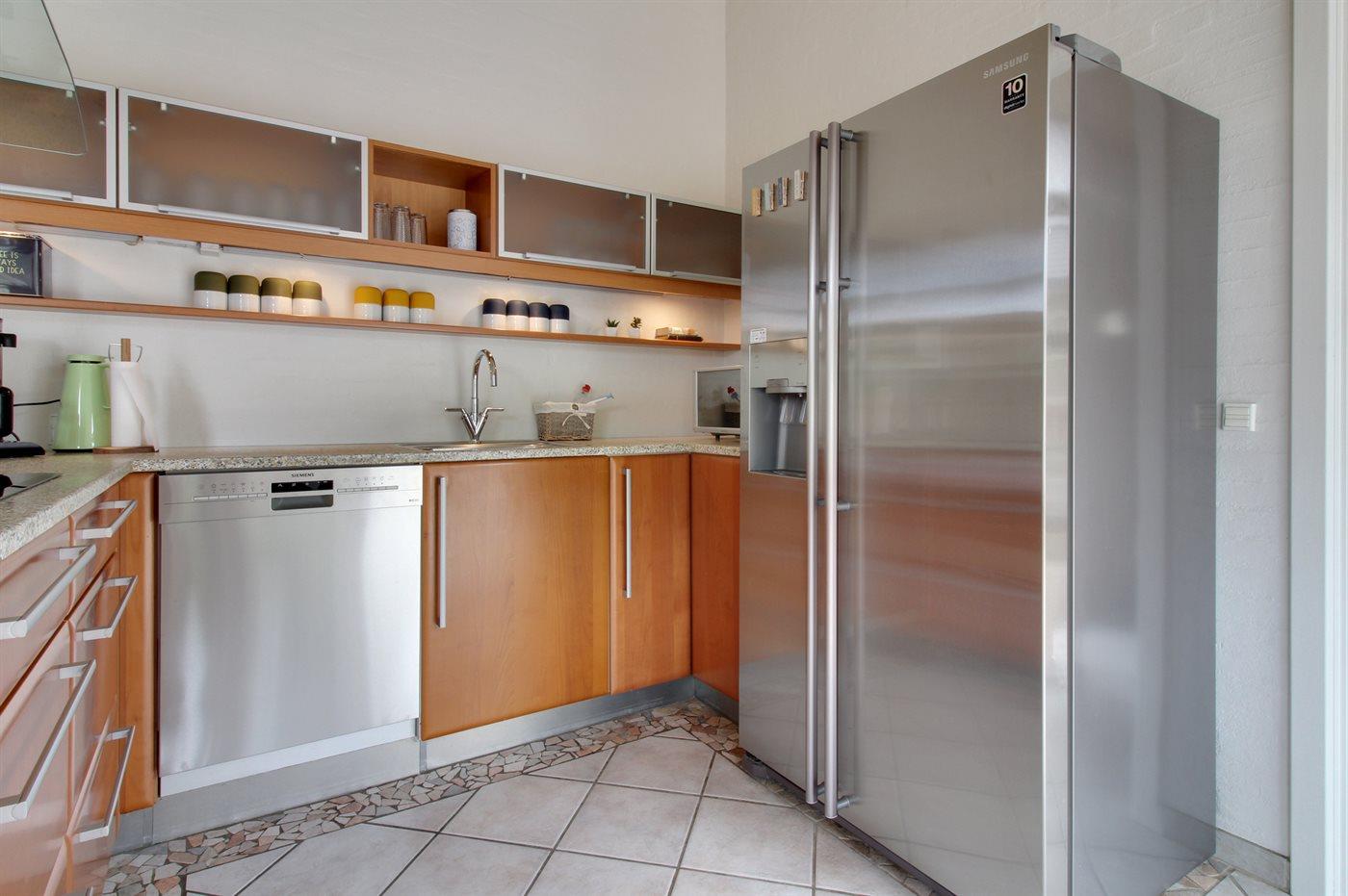 De keuken is uitgerust met amerikaanse koelkast Er is 4 inductiekookplaten, heteluchtoven, magnetron en vaatwasser.