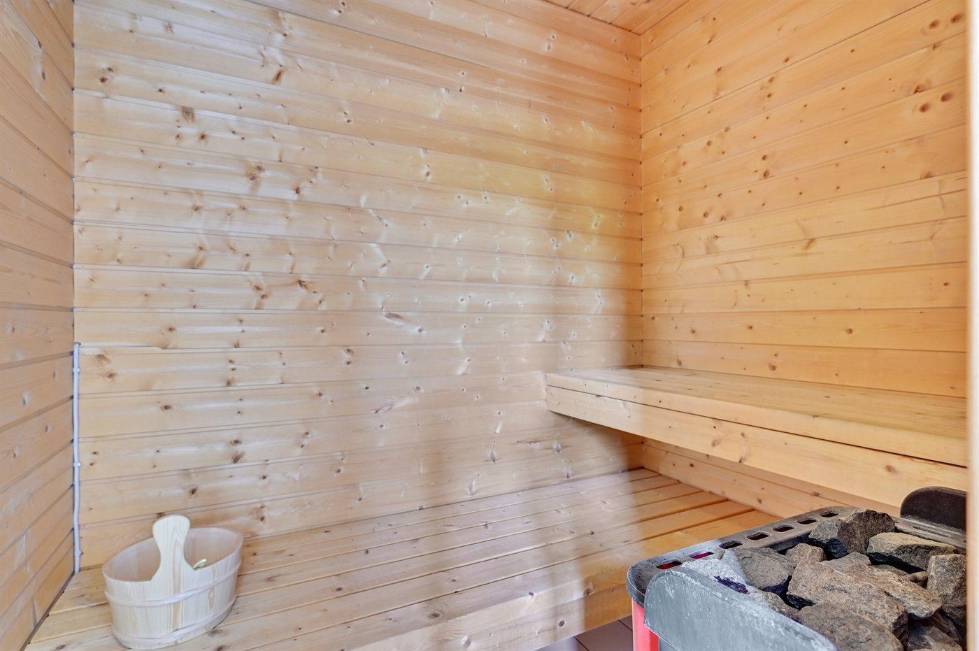 Er is 2 badkamers met douchehok en 2 toiletten. Er is vloerverwarming in 2 van de badkamers. De sauna biedt de gelegenheid tot ontspanning.