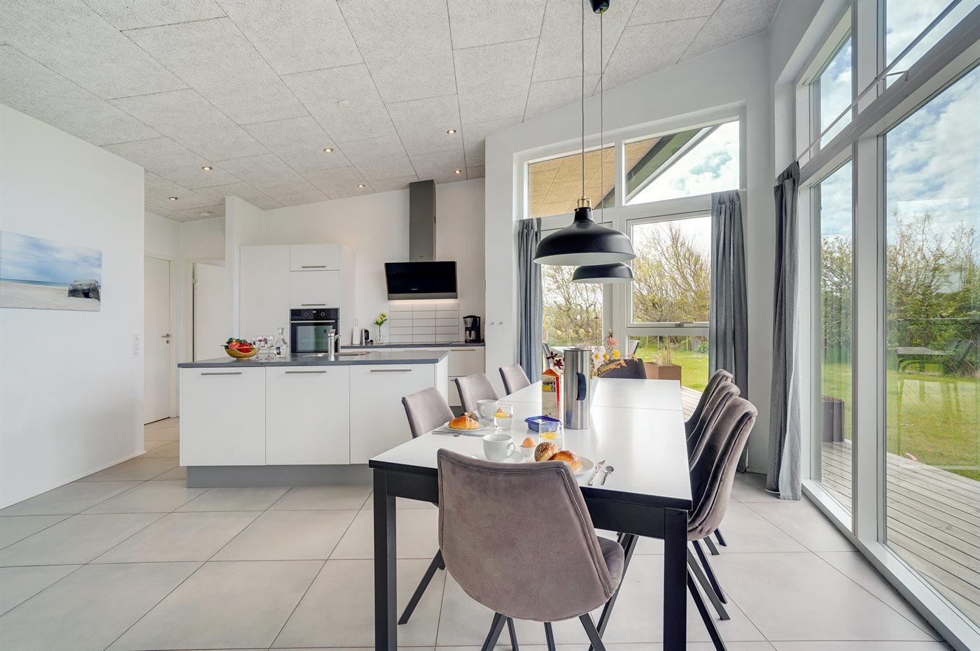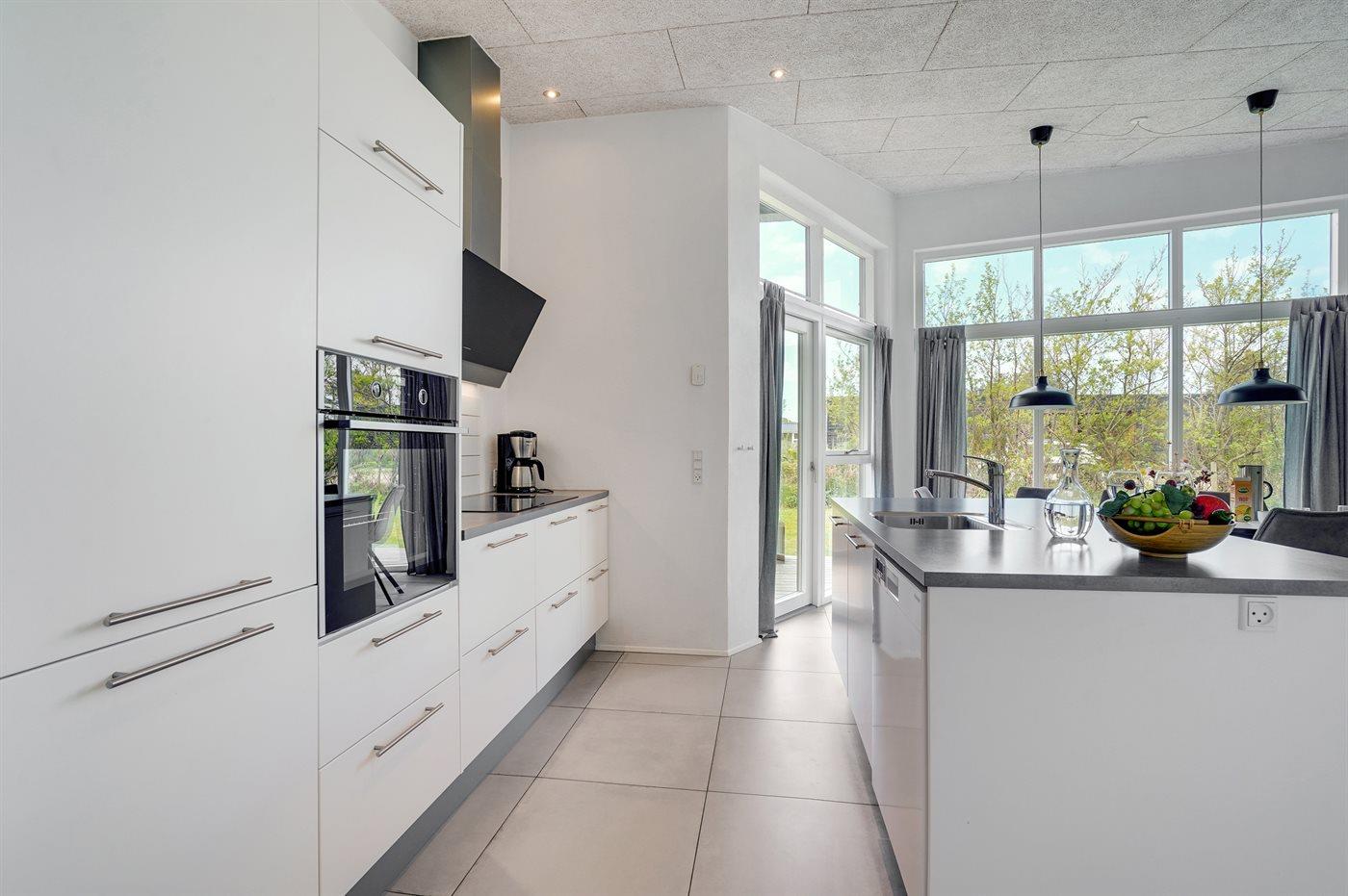 De keuken is uitgerust met koelkast Er is 4 inductiekookplaten, heteluchtoven, magnetron en vaatwasser.