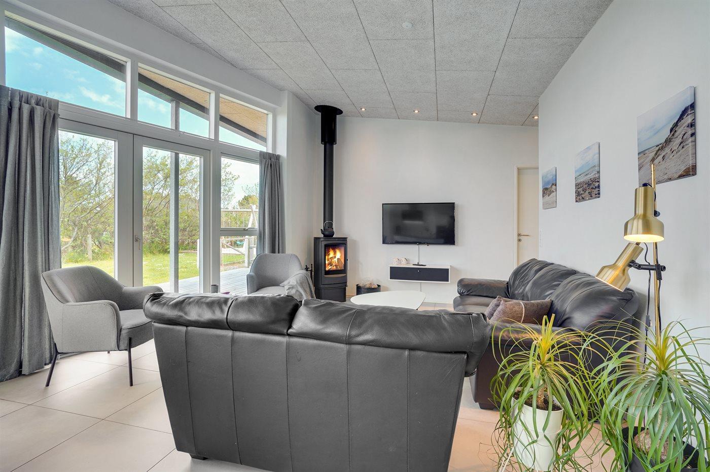 Modern vakantiehuis in Søndervig met sauna, dicht bij zee en winkel, ideaal voor gezinnen met kinderen en huisdieren.