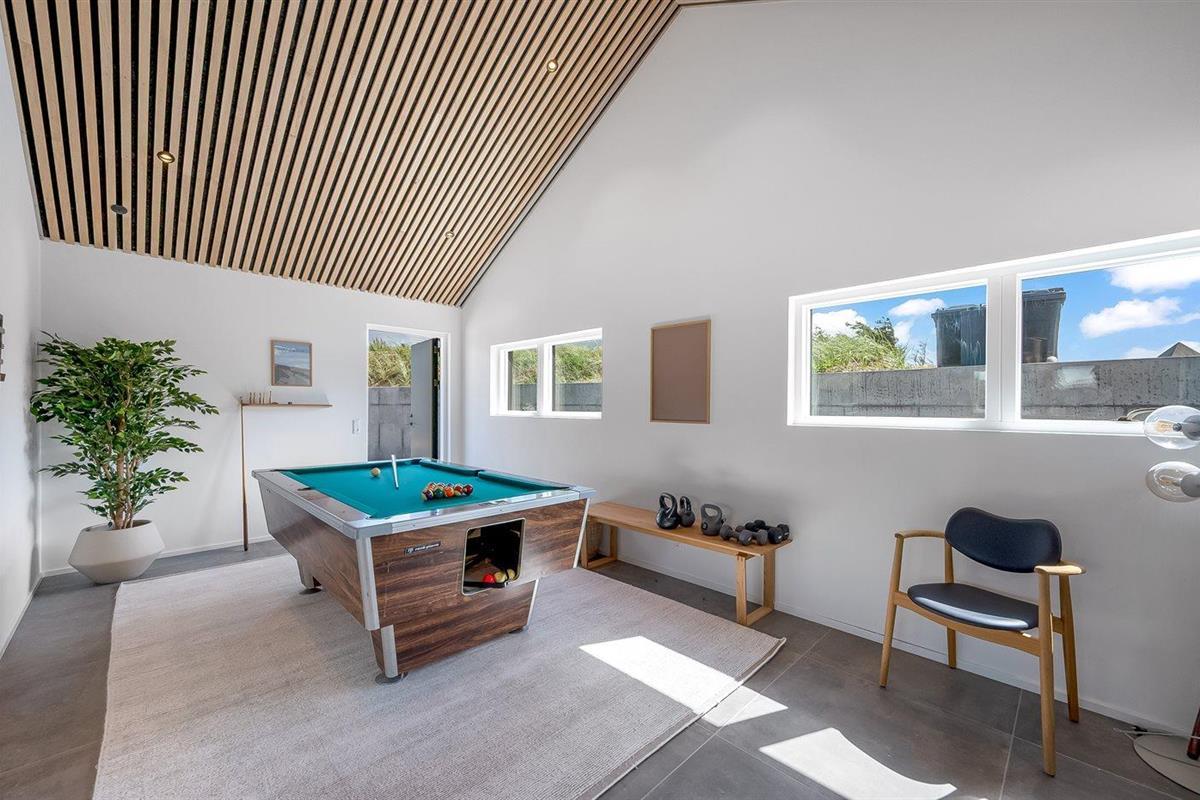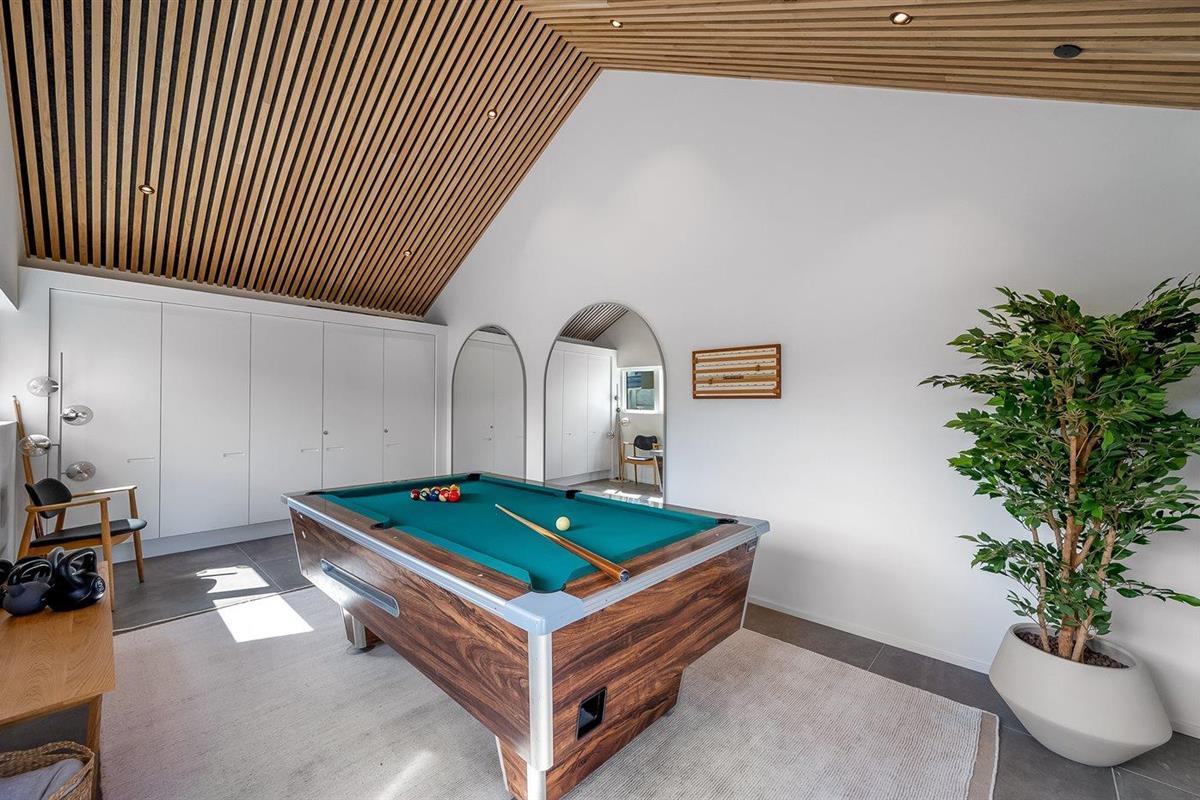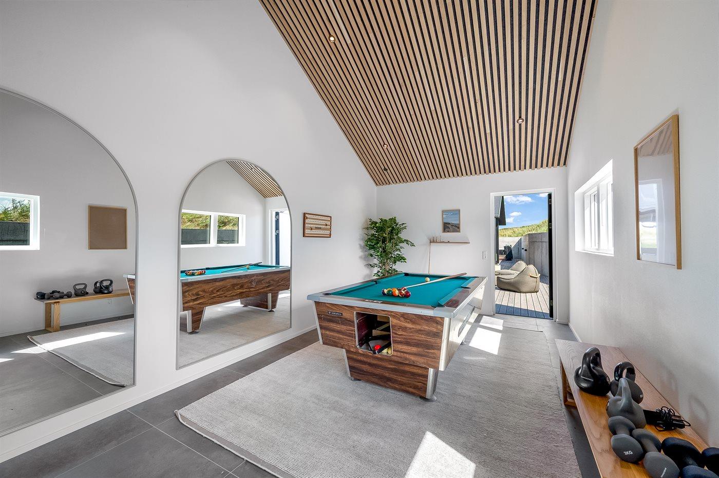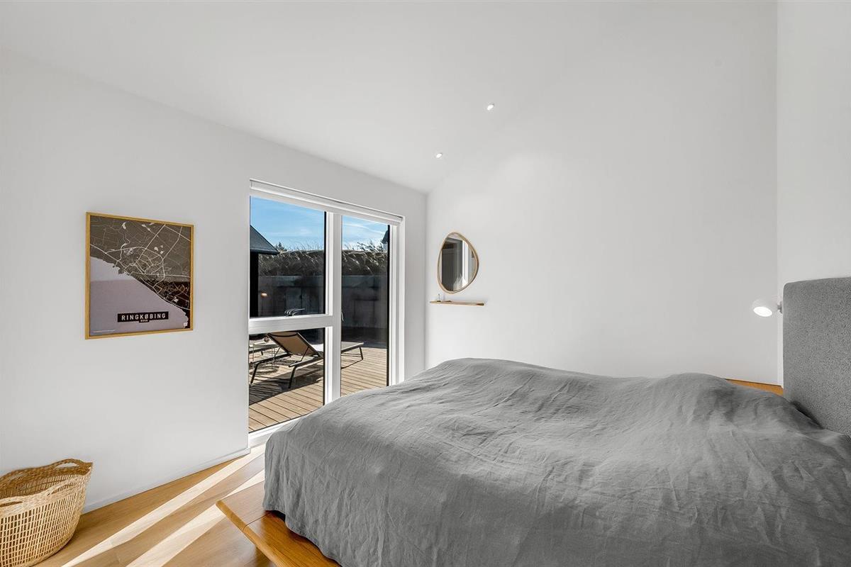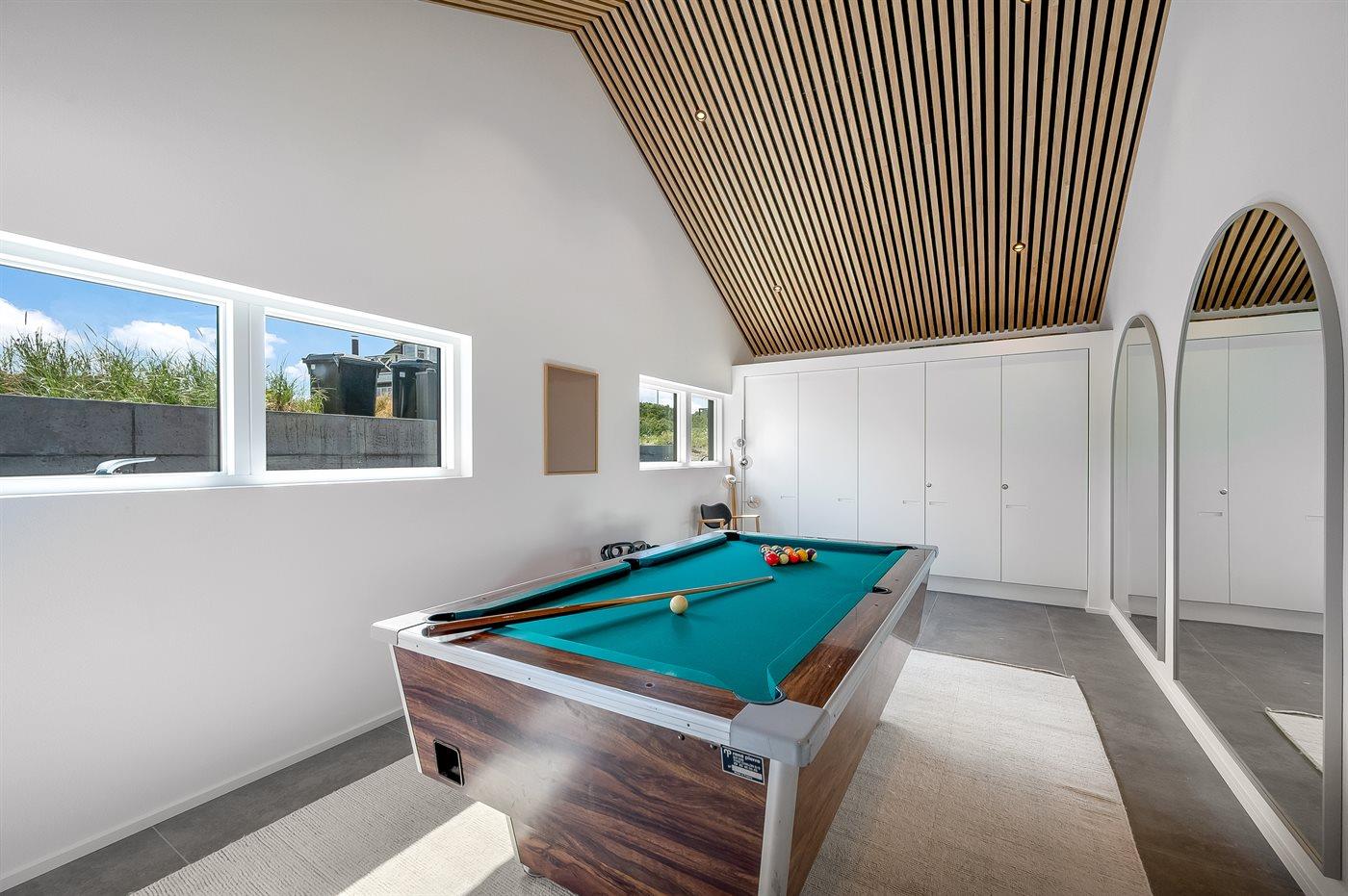 Modern vakantiehuis in Søndervig met binnenzwembad, bubbelbad en grote terrassen, vlak bij zee en fjord.