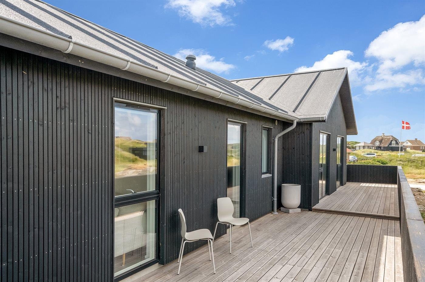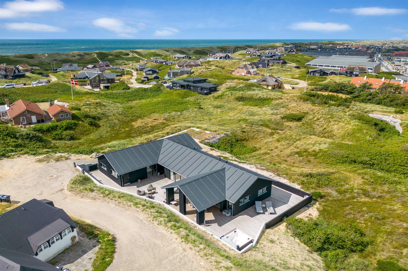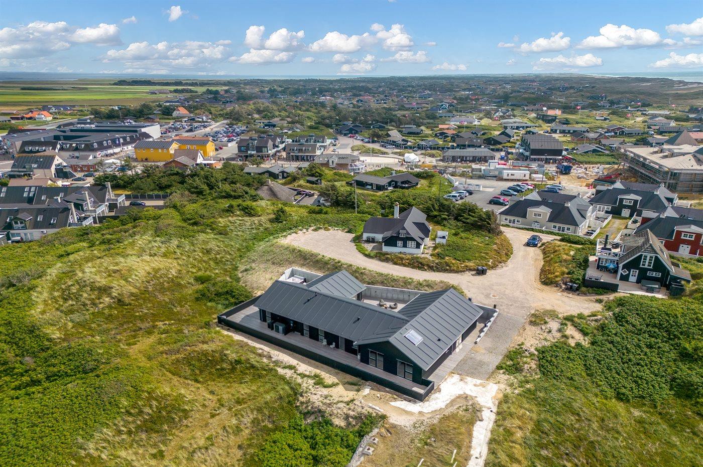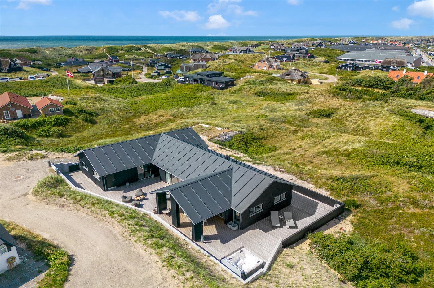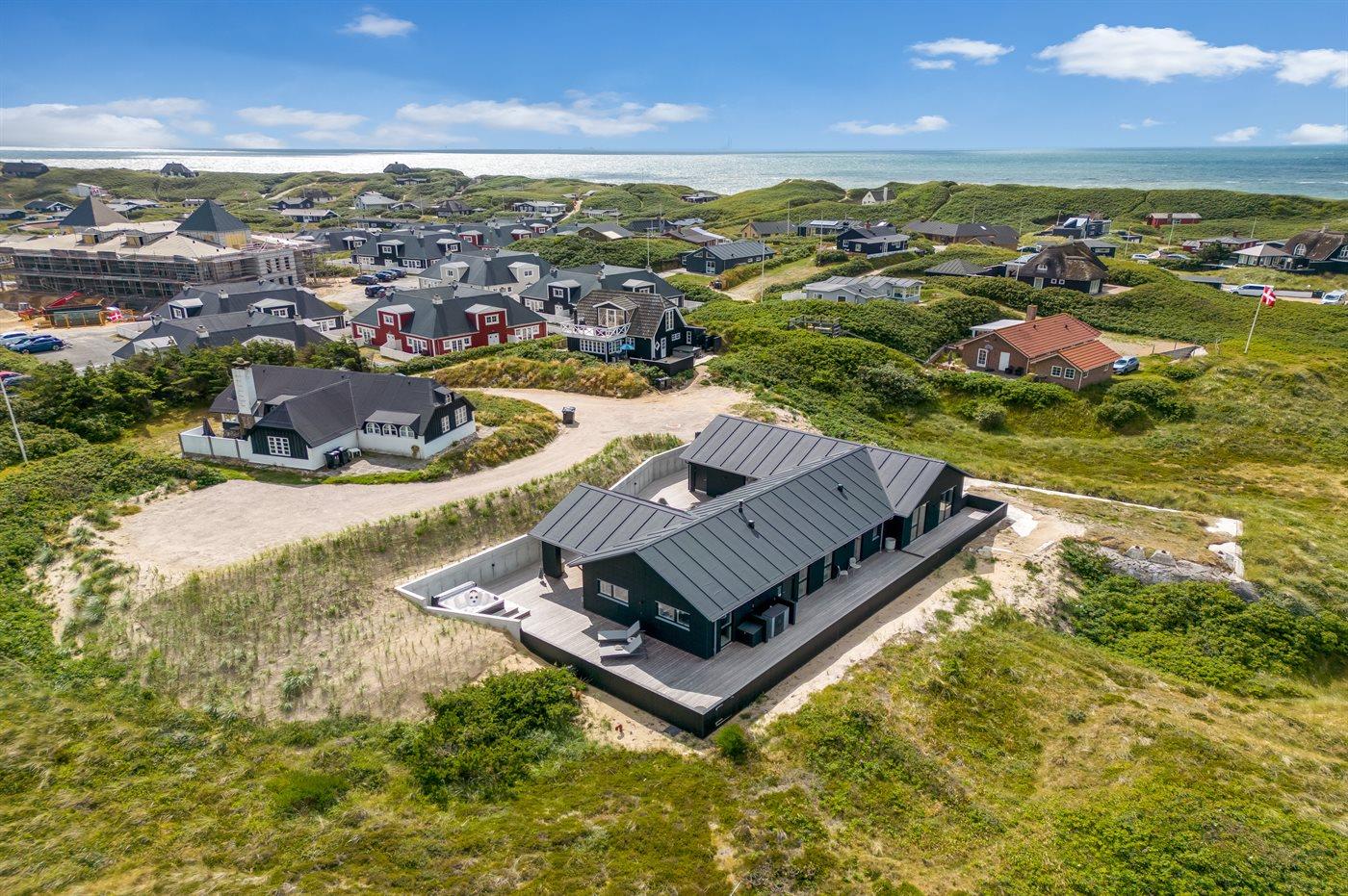 De vakantiewoning is gelegen op een 1200 m² groot natuural grond. Afstand tot de zee 250 m. Afstand tot de fjord 750 m. Dichtstbijzijnde winkel 100 m. Er is een golfbaan op een afstand van 1000 m. Bij de vakantiewoning hoort 135 m² terras en 15 m² groot overdekt terras - waarvan in totaal 150 m² beschut terras. Buitendouche. Het huis heeft een stopcontact voor het opladen van een elektrische auto. Oplaadstekker type 2. Met 11 kW-laadvermogen. Parkeerplaats bij het huis.