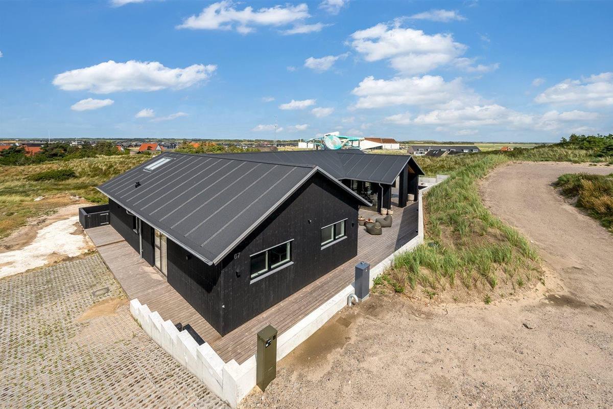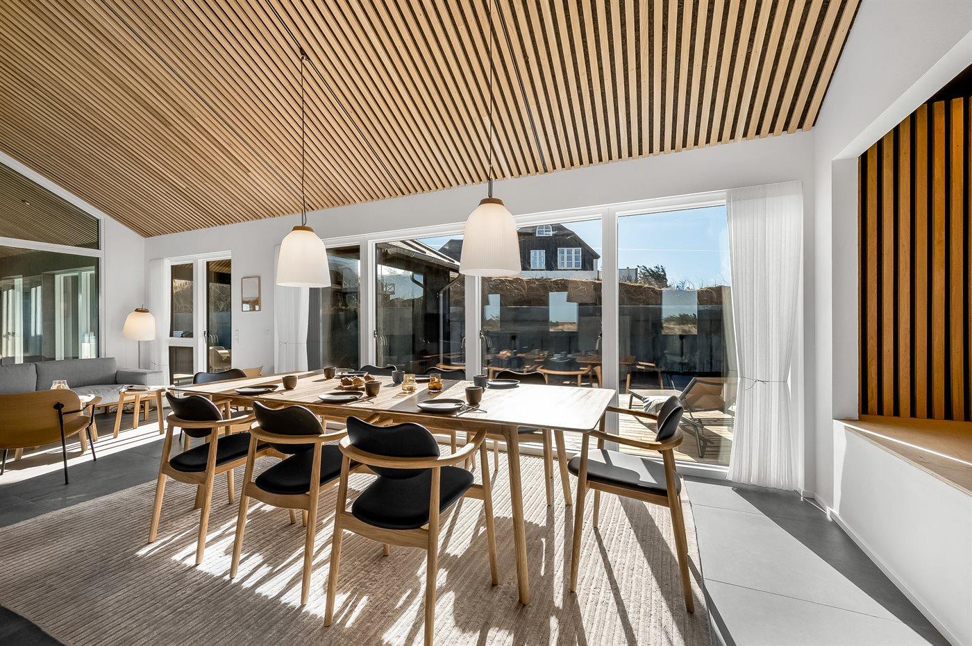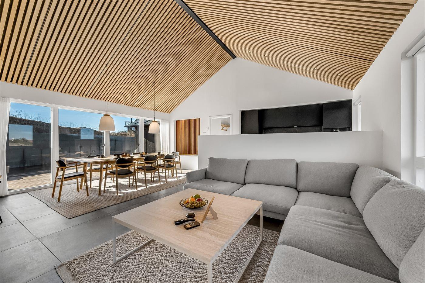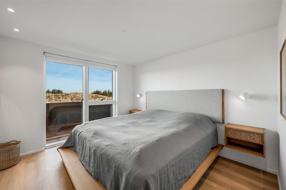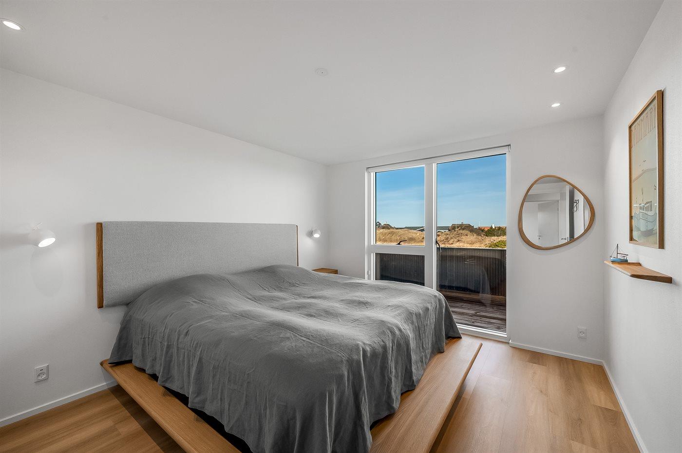 De vakantiewoning is gelegen op een 1200 m² groot natuural grond. Afstand tot de zee 250 m. Afstand tot de fjord 750 m. Dichtstbijzijnde winkel 100 m. Er is een golfbaan op een afstand van 1000 m. Bij de vakantiewoning hoort 135 m² terras en 15 m² groot overdekt terras - waarvan in totaal 150 m² beschut terras. Buitendouche. Het huis heeft een stopcontact voor het opladen van een elektrische auto. Oplaadstekker type 2. Met 11 kW-laadvermogen. Parkeerplaats bij het huis.