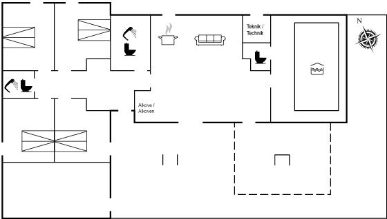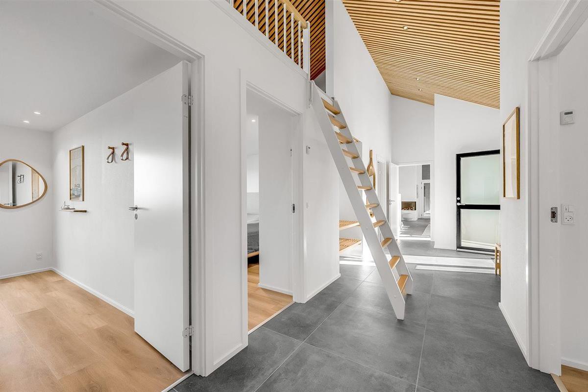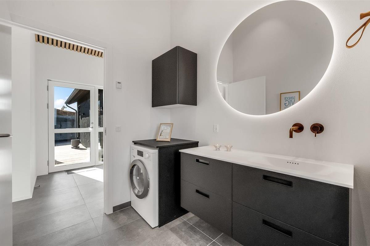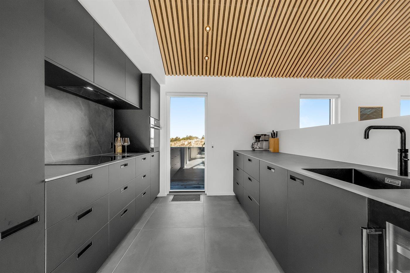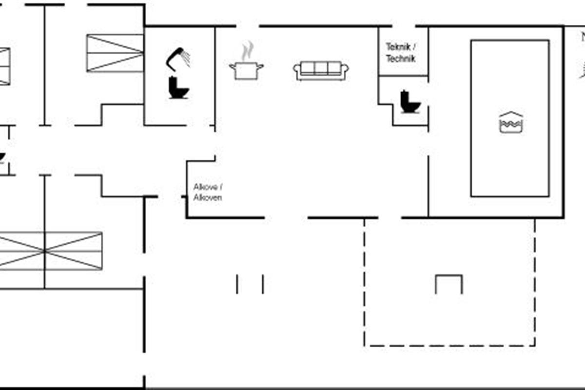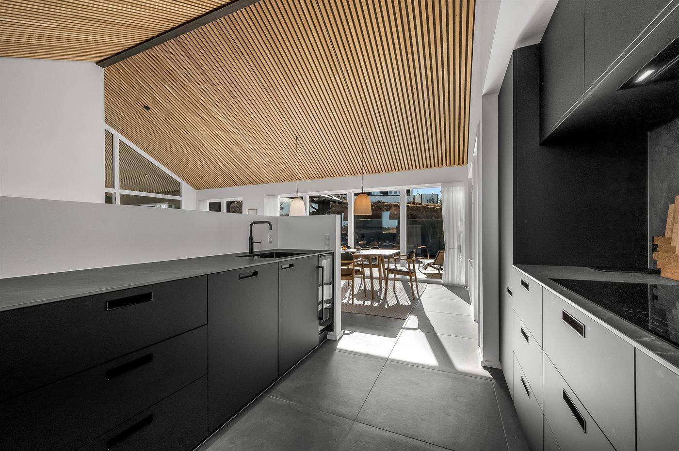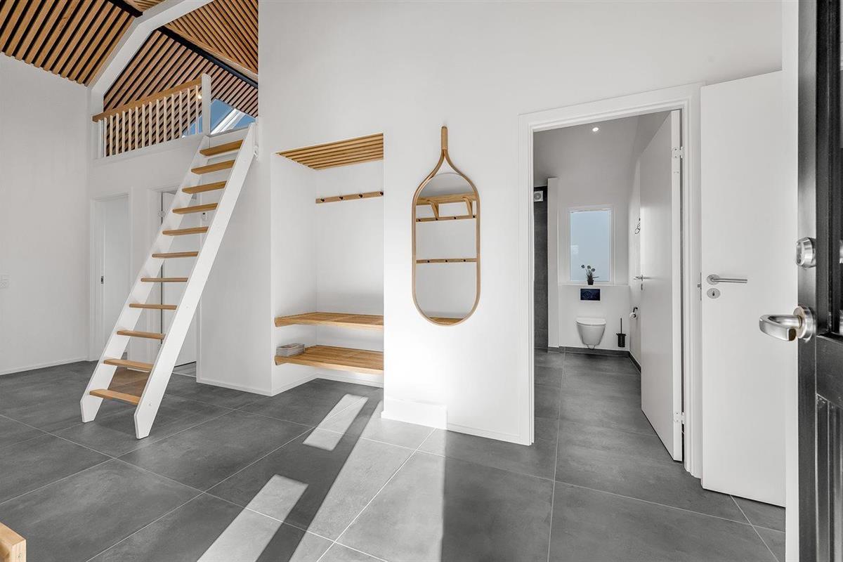 De vakantiewoning is gelegen op een 1200 m² groot natuural grond. Afstand tot de zee 250 m. Afstand tot de fjord 750 m. Dichtstbijzijnde winkel 100 m. Er is een golfbaan op een afstand van 1000 m. Bij de vakantiewoning hoort 135 m² terras en 15 m² groot overdekt terras - waarvan in totaal 150 m² beschut terras. Buitendouche. Het huis heeft een stopcontact voor het opladen van een elektrische auto. Oplaadstekker type 2. Met 11 kW-laadvermogen. Parkeerplaats bij het huis.