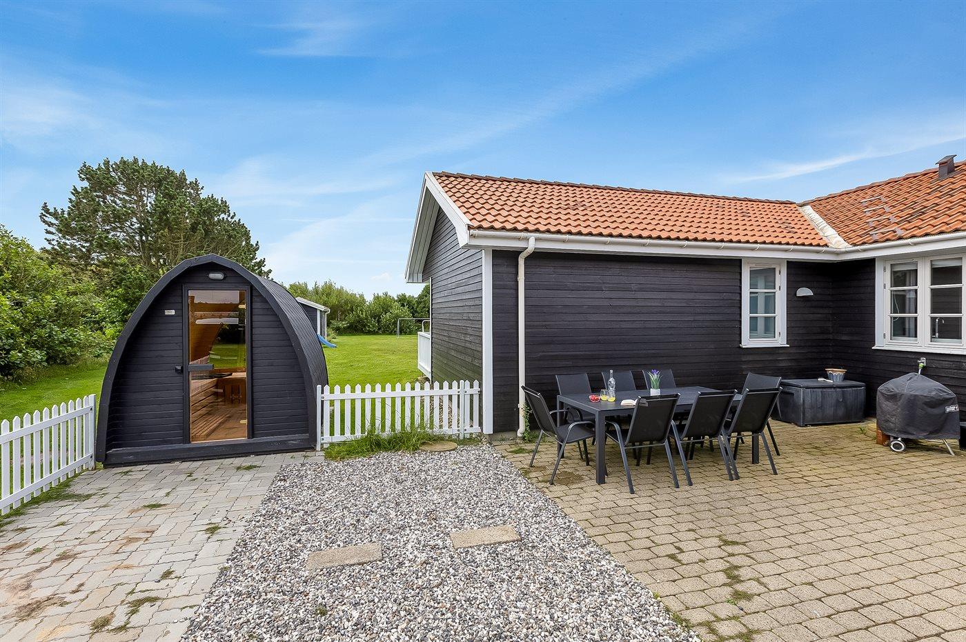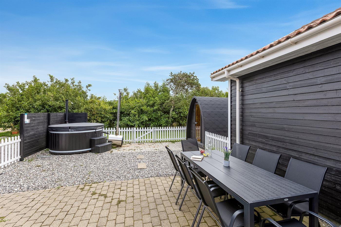 De vakantiewoning is gelegen op een 1200 m² groot natuural grond. Afstand tot de zee 700 m. Dichtstbijzijnde winkel 800 m. Daarnaast is er een 10 m² groot overdekt terras. Bij de vakantiewoning hoort terras. Schommel. Zandbak. Speeltoren. Buitensauna. Buitendouche. Het huis heeft een stopcontact voor het opladen van een elektrische auto. Oplaadstekker type 2. Met 11 kW-laadvermogen. Parkeerplaats bij het huis.