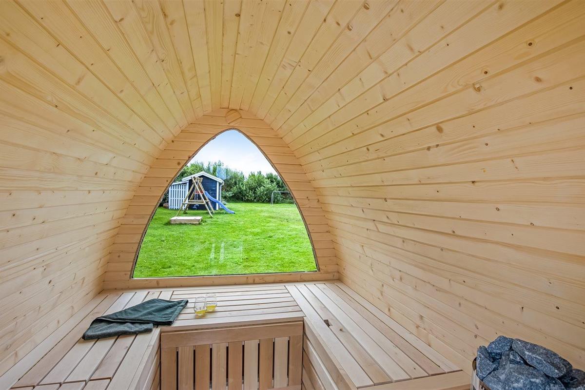 Volledig gerenoveerd vakantiehuis nabij zee met buitensauna, hot tub en activiteitenruimte voor een ontspannen verblijf.