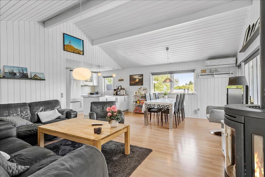 Das 80 m² große Holzferienhaus präsentiert sich seit der letzten Renovierung im Jahr 2021 ausgesprochen hell und einladend. Mit seinen zwei guten Schlafzimmern und den Schlafplätzen im gemütlichen Nebengebäude beherbergt es bis zu 4 Personen.Wenn nicht alle hier schlafen, können Sie den gemütlichen Anbau bewohnen, der mit der Terrasse verbunden ist (wir empfehlen ihn nur in den warmen Sommermonaten). Das Nebengebäude grenzt direkt an die Terrasse. Im modernen Badezimmer sorgt die doppelte Glasduschnische für einen Hauch von Wellnessflair. Zu den praktischen Elementen des Bades zählt eine Waschmaschine. Das Herzstück des Hauses ist der Aufenthaltsbereich, der den Wohnraum und die Küche offen in sich vereint. In diesem Raum genießen Sie gemütliche Momente in der Polstersitzgruppe vor dem Kaminofen und gesellige Runden am Esstisch. Die gut ausgestattete Küche lädt zum gemeinsamen Zubereiten der Mahlzeiten ein. An kühlen oder windigen Tagen wird es Sie in den schönen, nach Westen ausgerichteten Wintergarten ziehen, in dem Sie Sonne und die Nähe zur Natur genießen.