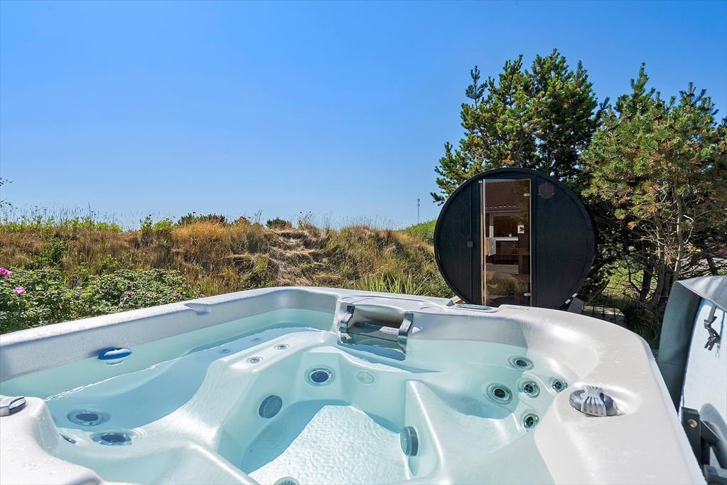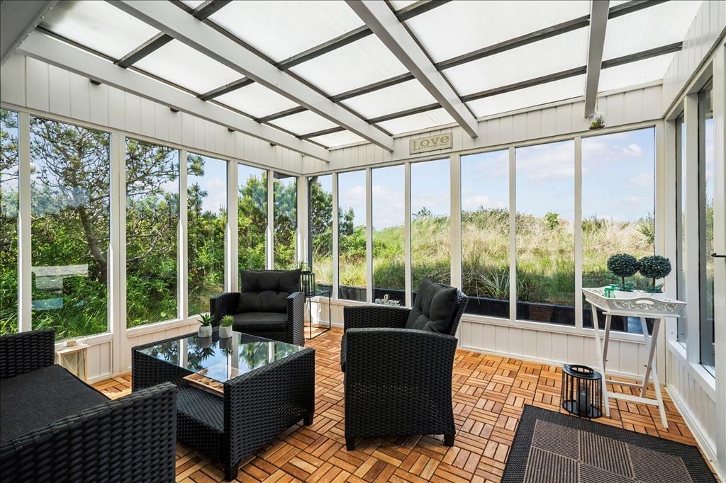 Ein Whirlpool und eine Sauna auf der Terrasse, ein stimmungsvoller Aufenthaltsraum und ein schöner Wintergarten. Dies ist nur eine kleine Auswahl von all den schönen Dingen, mit denen Ihnen dieses Haus Ihre Urlaubstage in Søndervig versüßt.