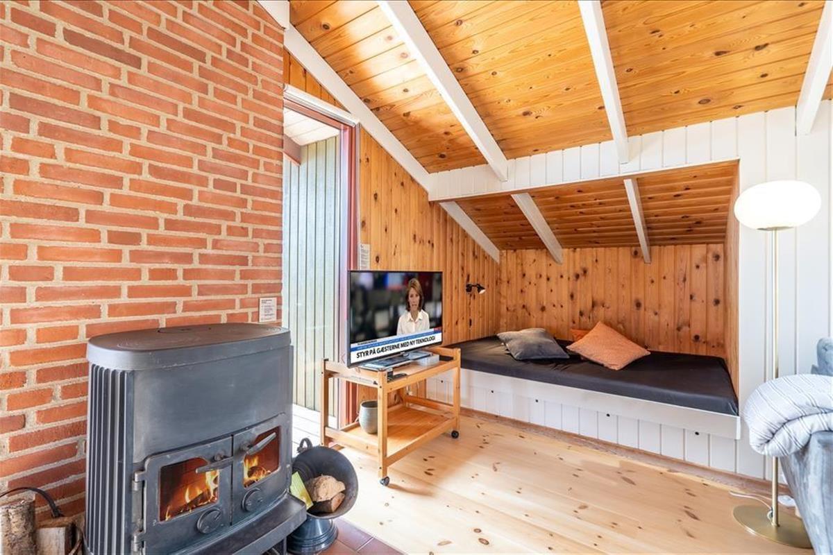 Die zauberhafte Ferienhausatmosphäre spüren Sie insbesondere im Wohnraum mit hohen Decken, Kaminofen und einer gemütlichen Schafnische. Letztere bietet sich für eine ruhige Lesestunde und für ein Nickerchen nach einem gemeinsamen Essen an. Nahe der Polstergarnitur sorgt ein Flachbild-TV mit Parabolempfang und Chromecast für Unterhaltung und Abwechslung. Im Schuppen steht Ihnen eine 80 Liter fassende Gefriermöglichkeit zur Verfügung - perfekt für Angler.